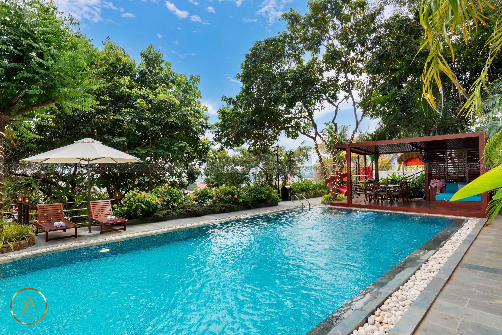 🏊 Hồ bơi điện phân muối rộng 100m²: Full option, lý tưởng để thư giãn giữa thiên nhiên.