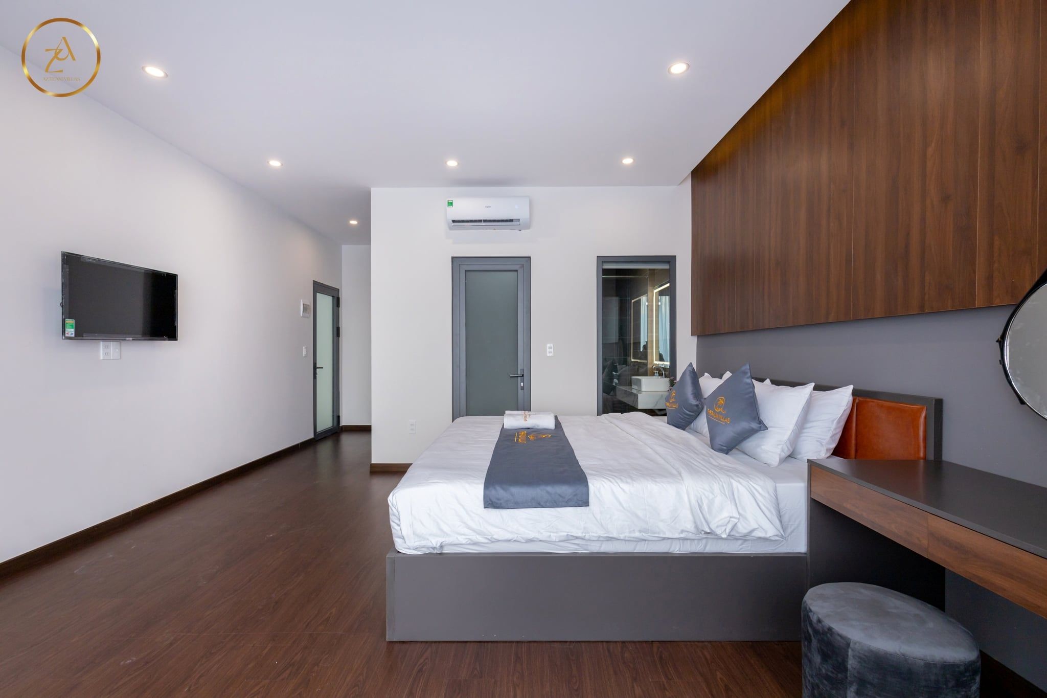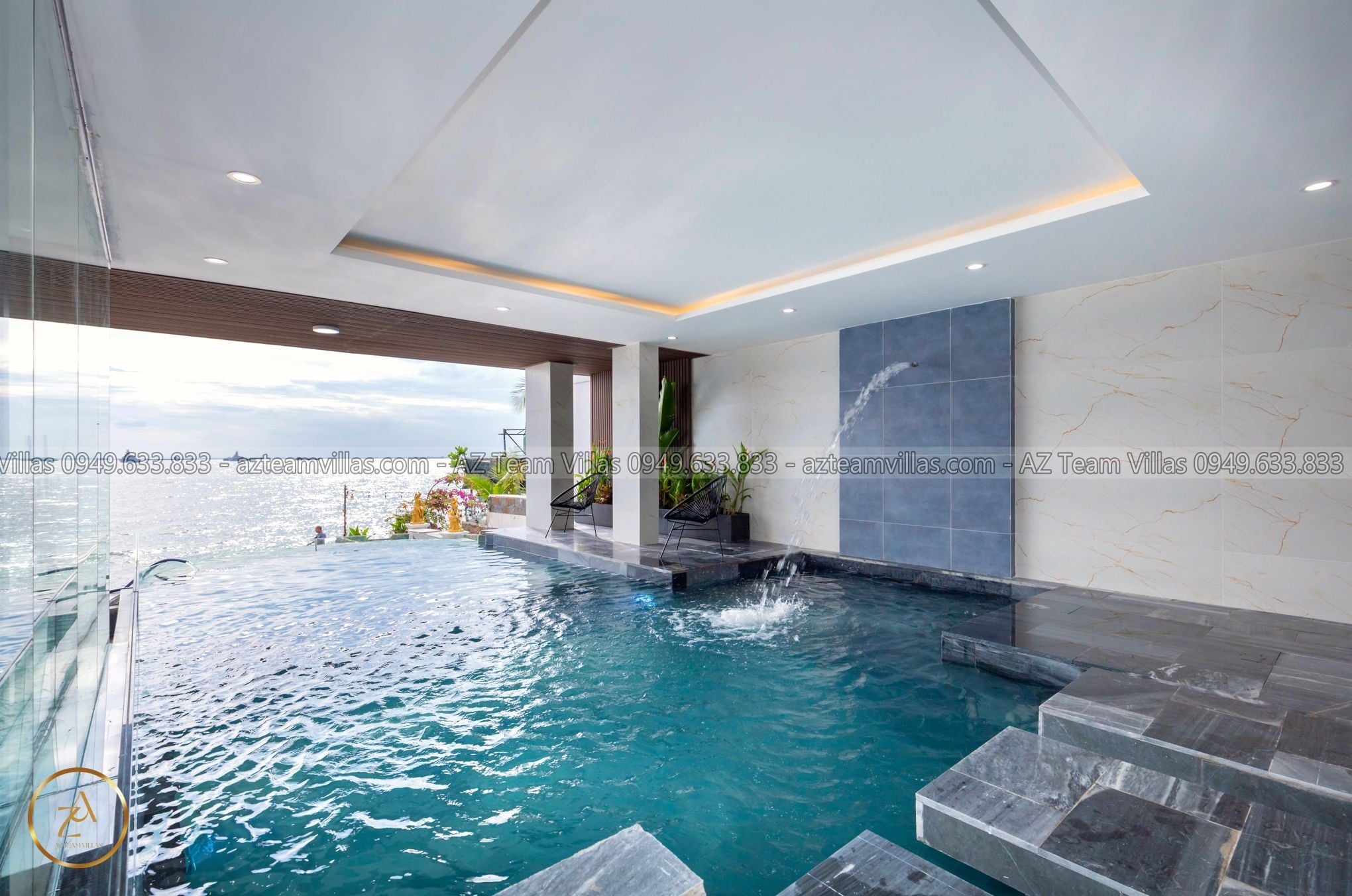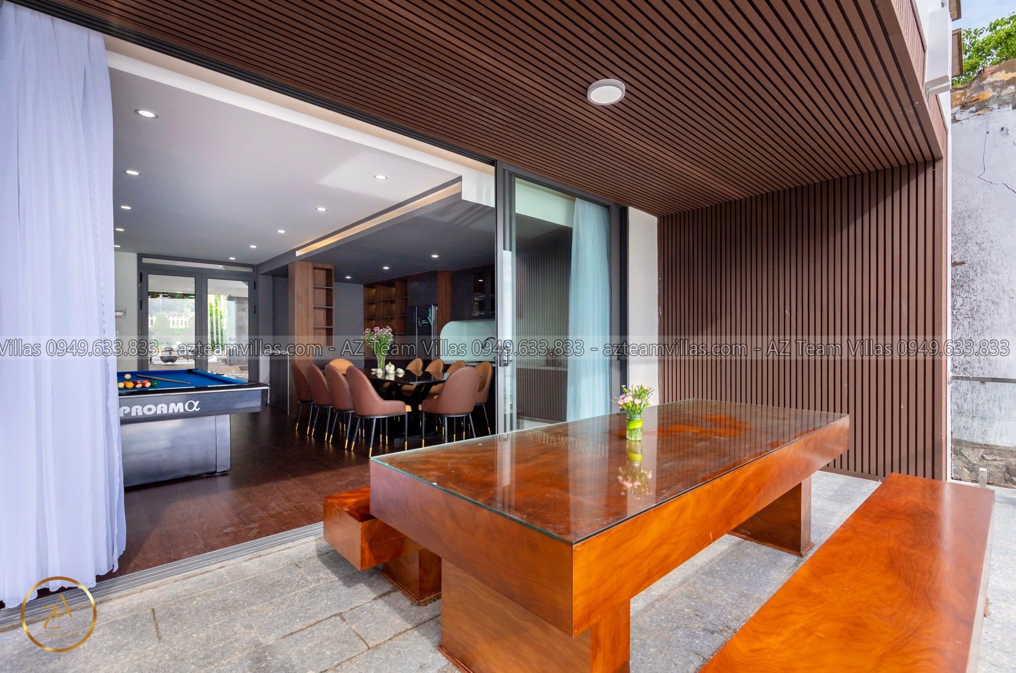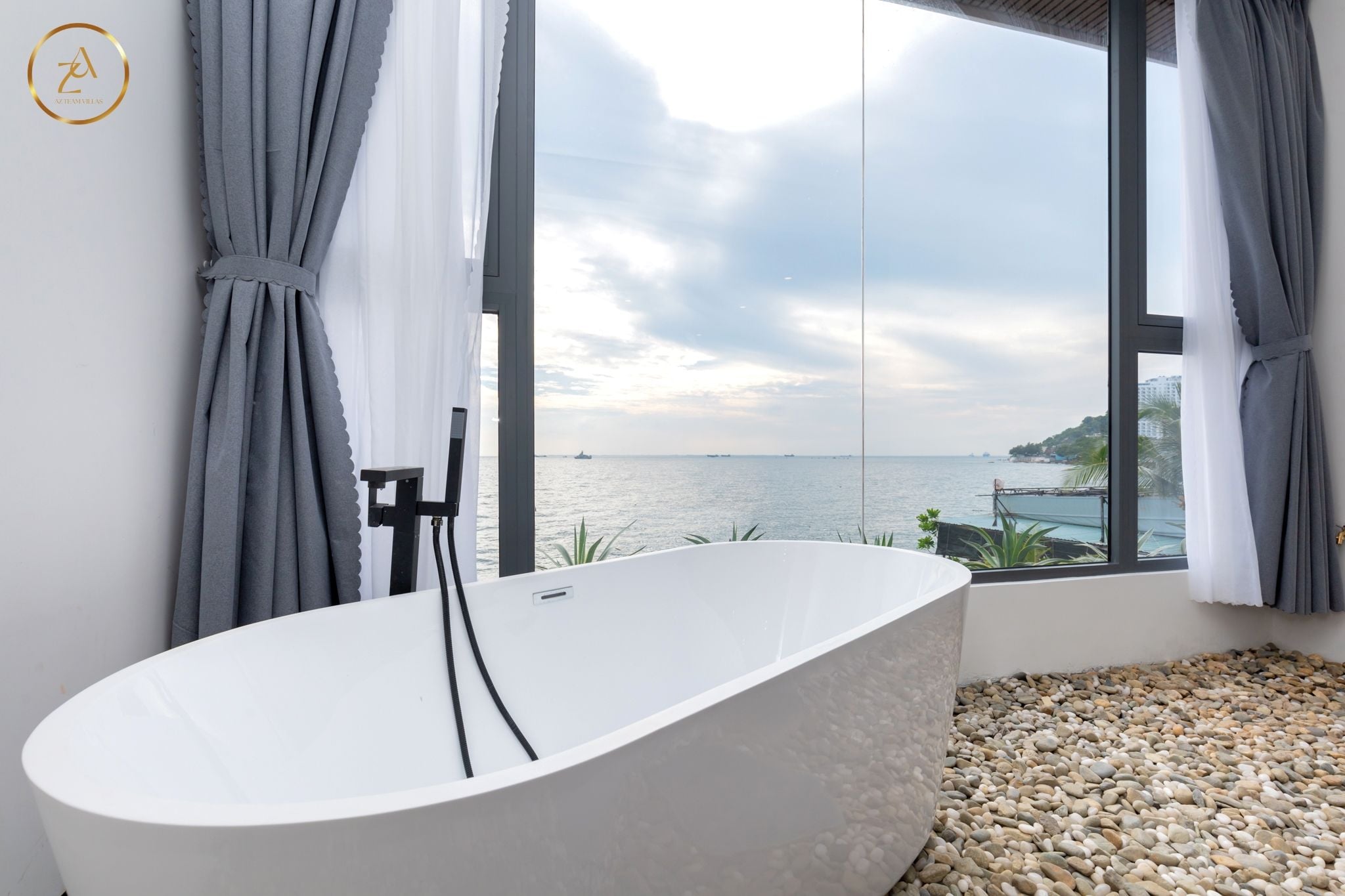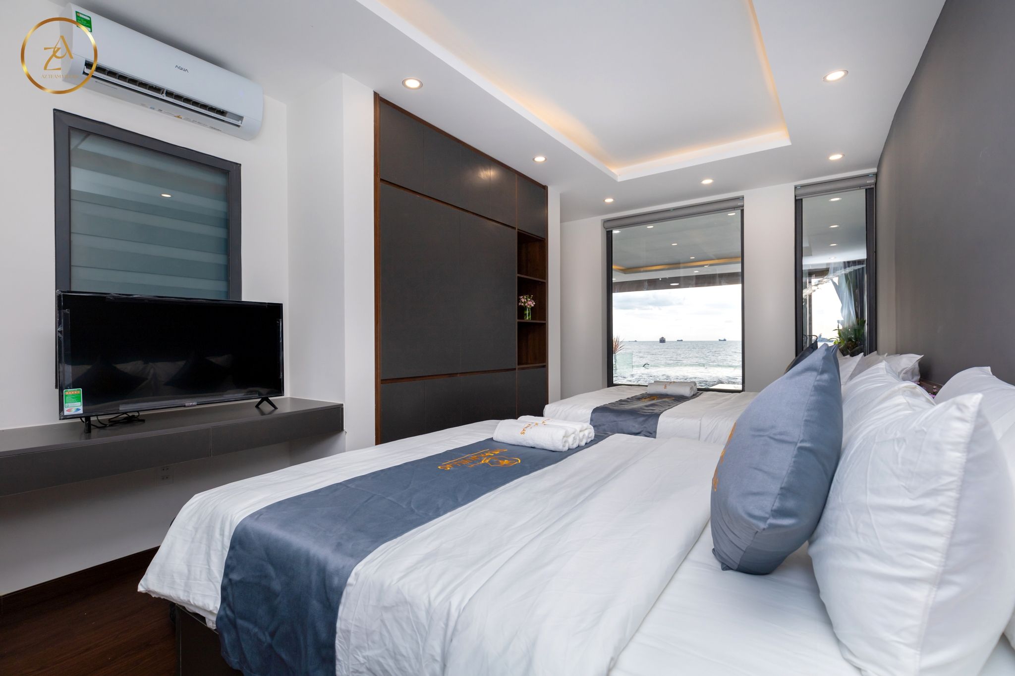 Villa AZ 24 là một biệt thự sang trọng và hiện đại, nằm ngay sát bãi biển Bãi Dâu, Vũng Tàu. Biệt thự có diện tích 600 m2, gồm 6 phòng ngủ, 7 nhà vệ sinh, phòng khách, nhà bếp và sân hiên. Mỗi phòng ngủ đều có giường đôi cực lớn, máy lạnh, tivi và phòng tắm riêng. Phòng khách rộng rãi và thoáng mát, có sofa, bàn ăn và cửa sổ lớn nhìn ra hồ bơi và biển. Nhà bếp được trang bị đầy đủ tiện nghi như tủ lạnh, bếp điện, lò vi sóng và máy pha cà phê. Sân hiên là nơi lý tưởng để thư giãn và thưởng thức không khí biển, có ghế đẩu, bàn ghế và máy nướng BBQ. Biệt thự còn có hồ bơi riêng rộng 50 m2, nằm trong khuôn viên xanh mát và yên tĩnh. Từ biệt thự, chỉ cần đi bộ vài bước là đến được bãi biển Bãi Dâu, nơi có cát trắng mịn và nước trong xanh. Biệt thự 45 trần phú là sự lựa chọn hoàn hảo cho những ai muốn tận hưởng kỳ nghỉ sang trọng và thoải mái tại Vũng Tàu