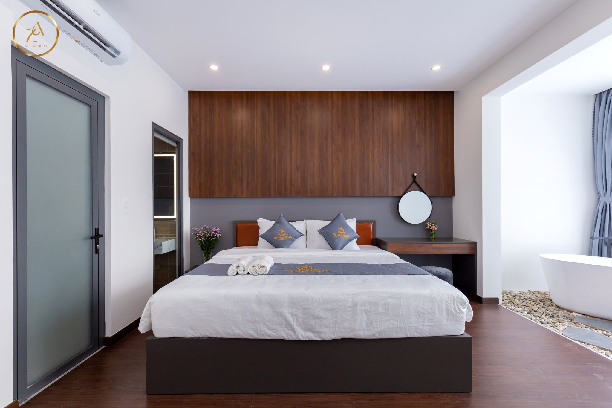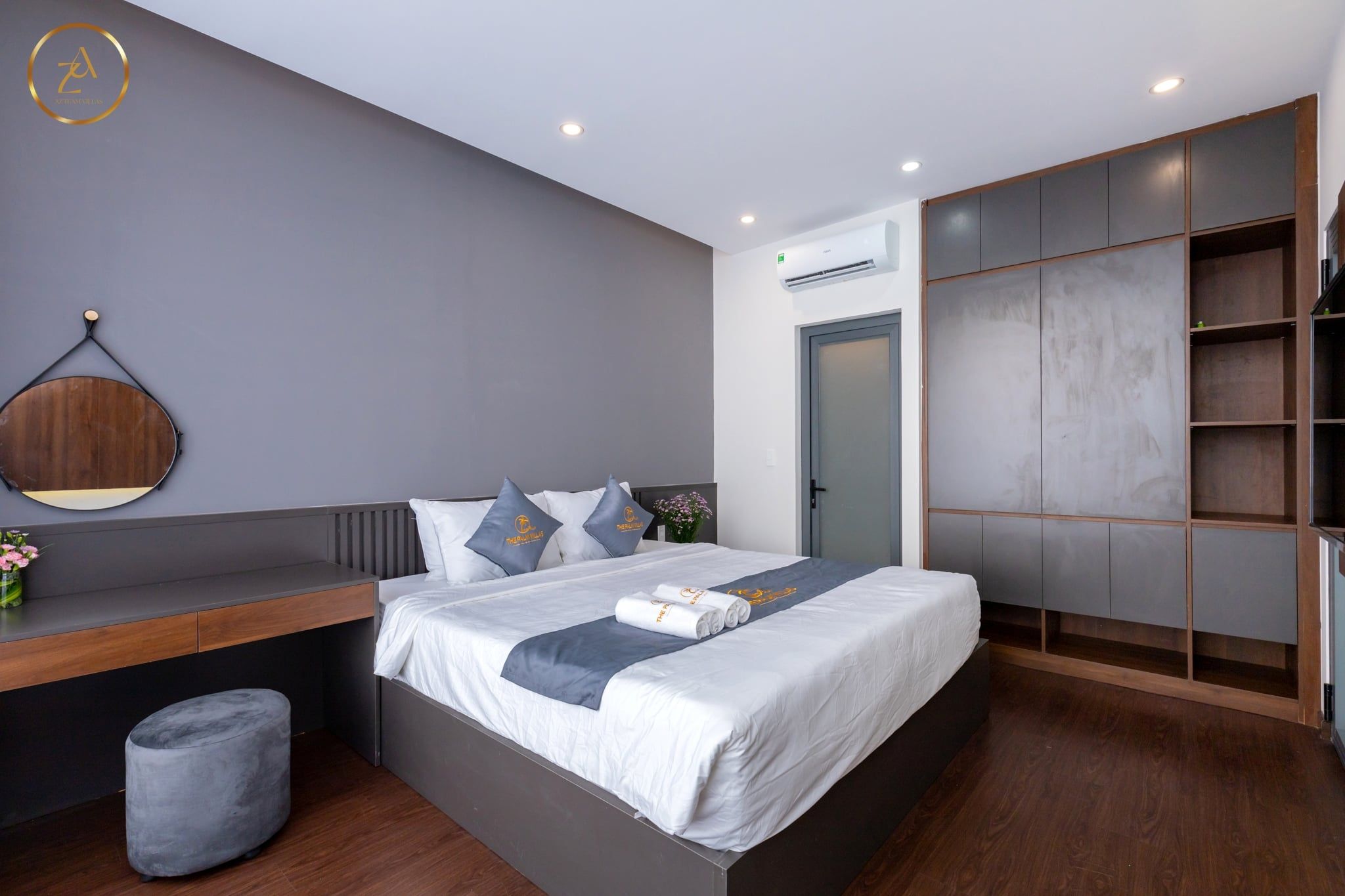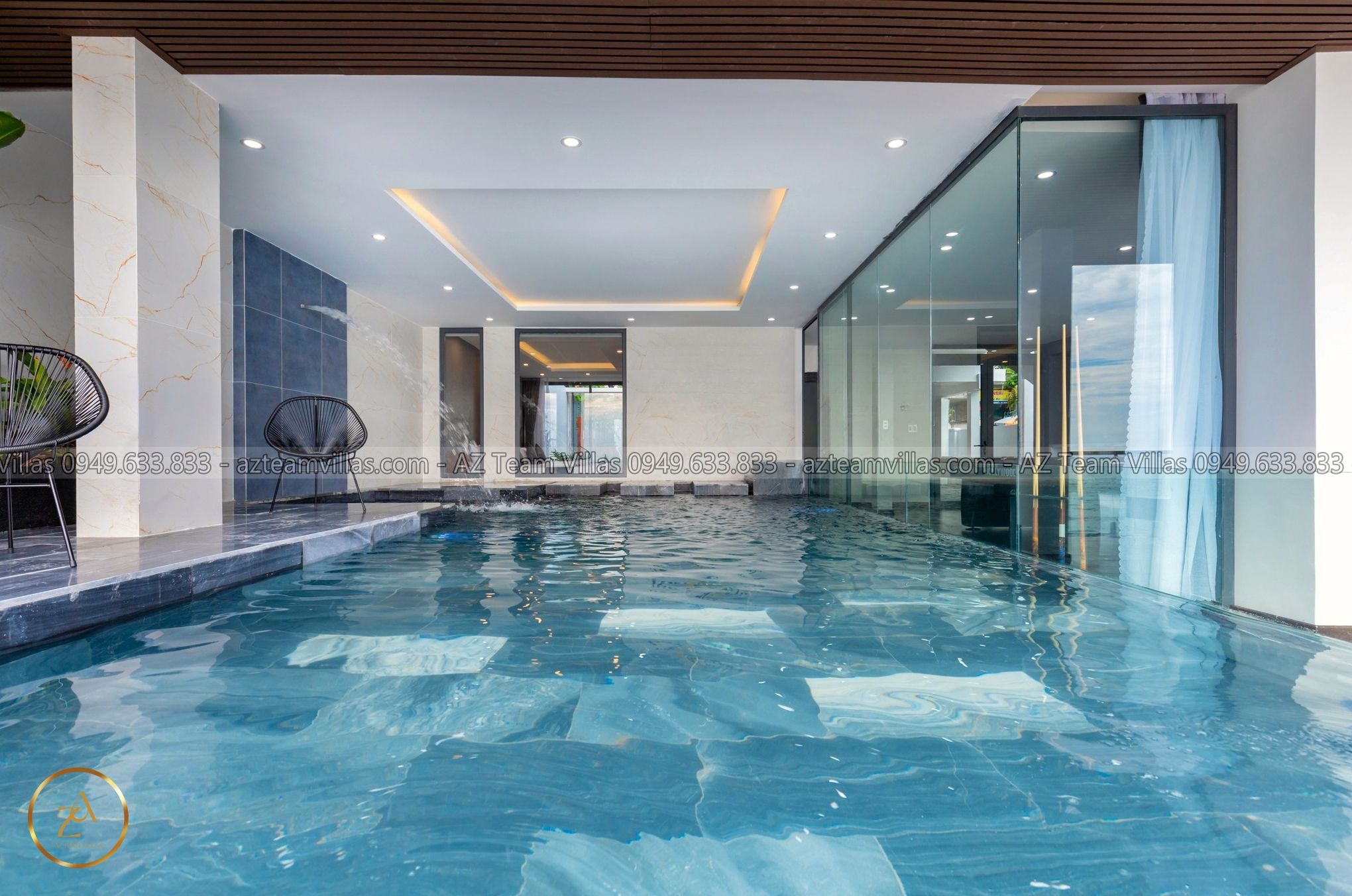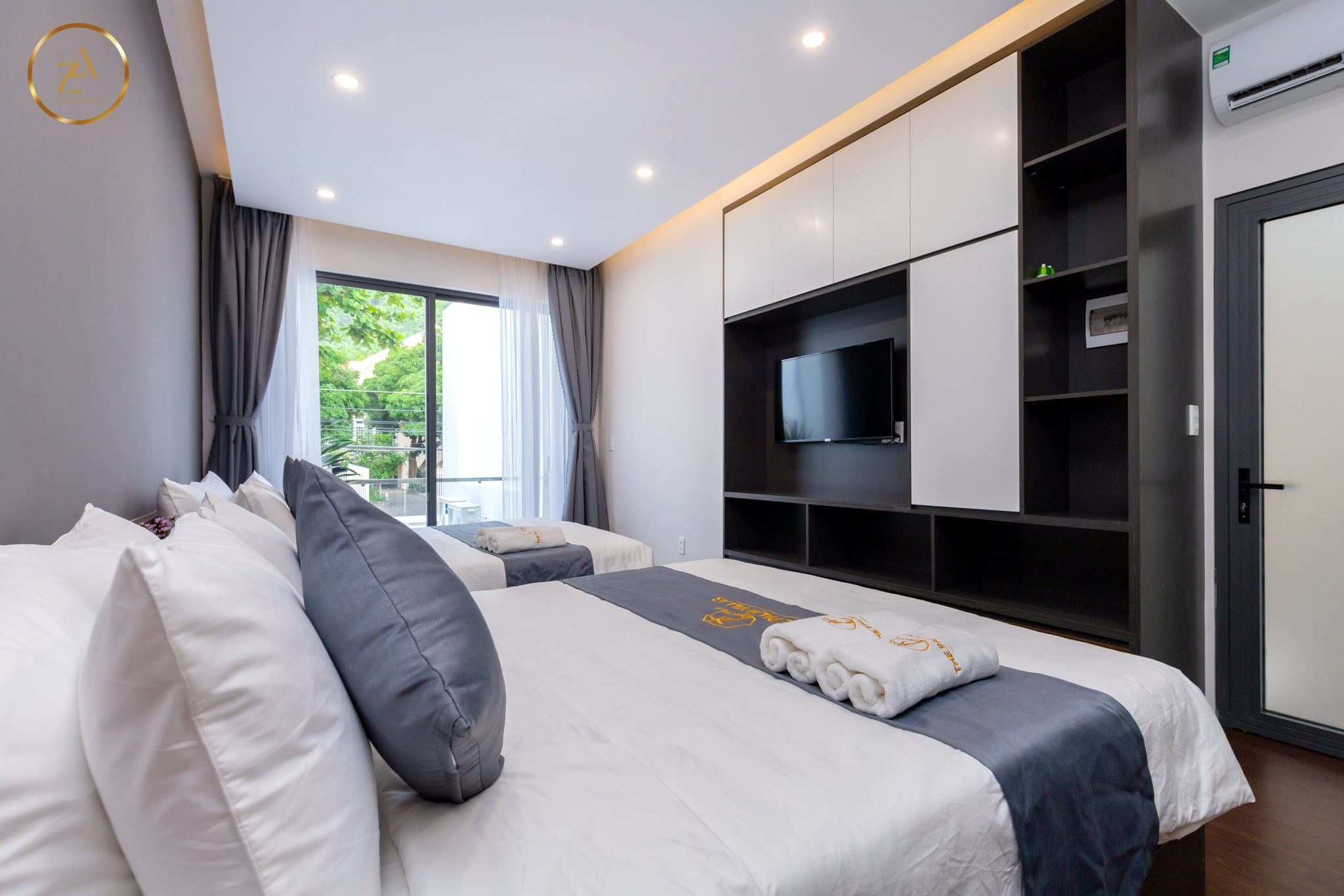 Villa AZ 24 là một biệt thự sang trọng và hiện đại, nằm ngay sát bãi biển Bãi Dâu, Vũng Tàu. Biệt thự có diện tích 600 m2, gồm 6 phòng ngủ, 7 nhà vệ sinh, phòng khách, nhà bếp và sân hiên. Mỗi phòng ngủ đều có giường đôi cực lớn, máy lạnh, tivi và phòng tắm riêng. Phòng khách rộng rãi và thoáng mát, có sofa, bàn ăn và cửa sổ lớn nhìn ra hồ bơi và biển. Nhà bếp được trang bị đầy đủ tiện nghi như tủ lạnh, bếp điện, lò vi sóng và máy pha cà phê. Sân hiên là nơi lý tưởng để thư giãn và thưởng thức không khí biển, có ghế đẩu, bàn ghế và máy nướng BBQ. Biệt thự còn có hồ bơi riêng rộng 50 m2, nằm trong khuôn viên xanh mát và yên tĩnh. Từ biệt thự, chỉ cần đi bộ vài bước là đến được bãi biển Bãi Dâu, nơi có cát trắng mịn và nước trong xanh. Biệt thự 45 trần phú là sự lựa chọn hoàn hảo cho những ai muốn tận hưởng kỳ nghỉ sang trọng và thoải mái tại Vũng Tàu