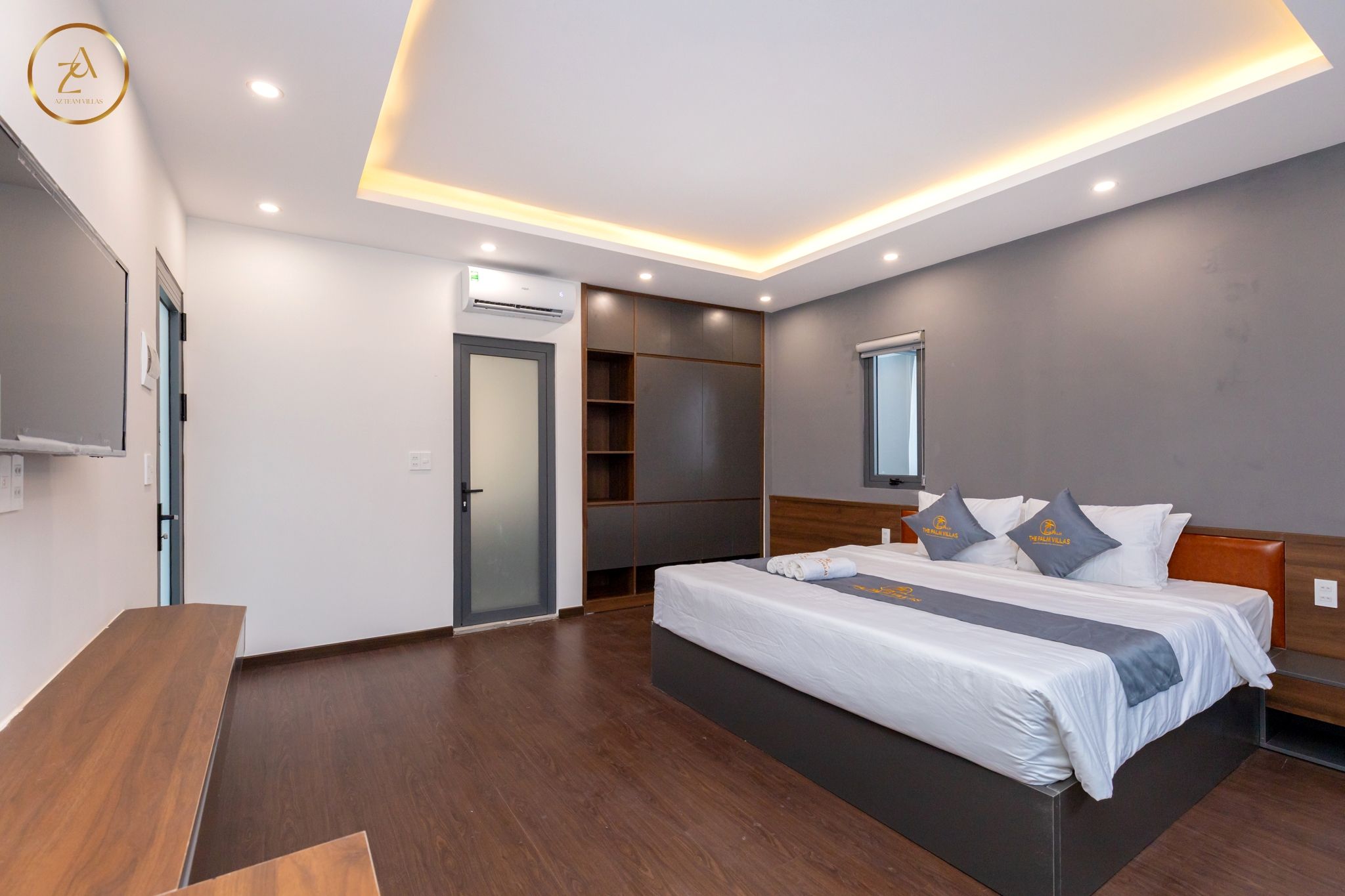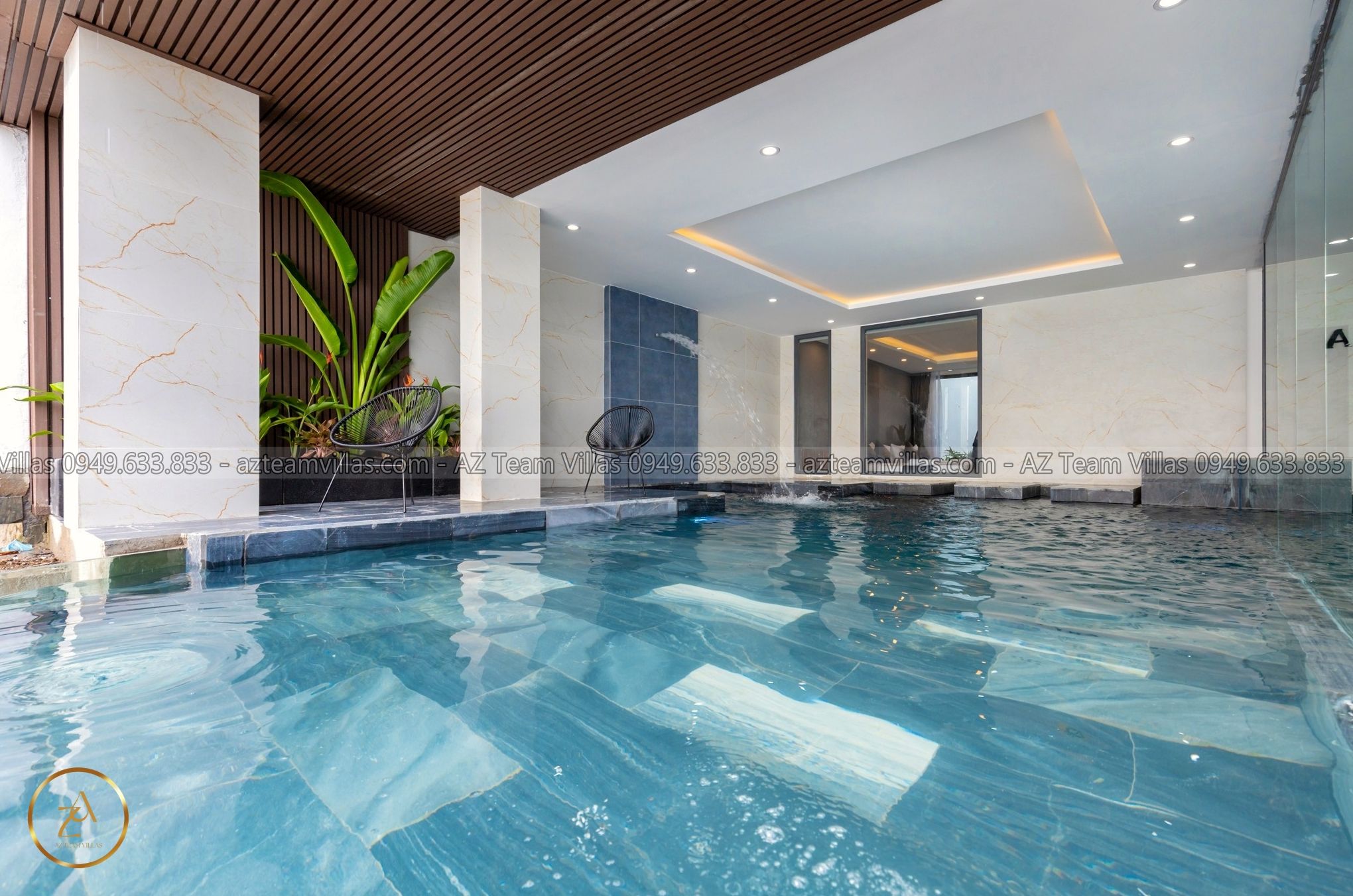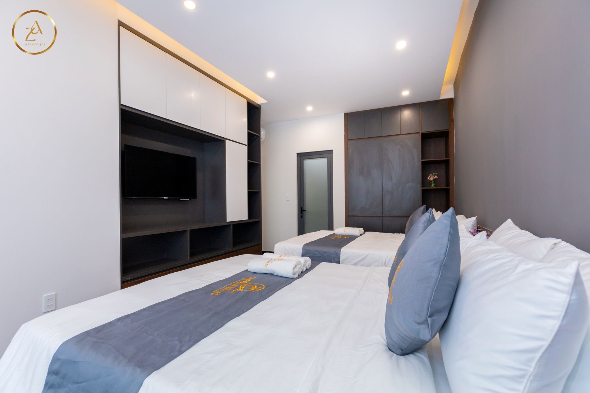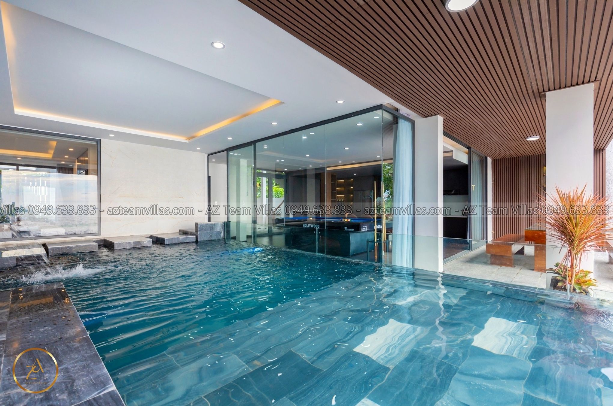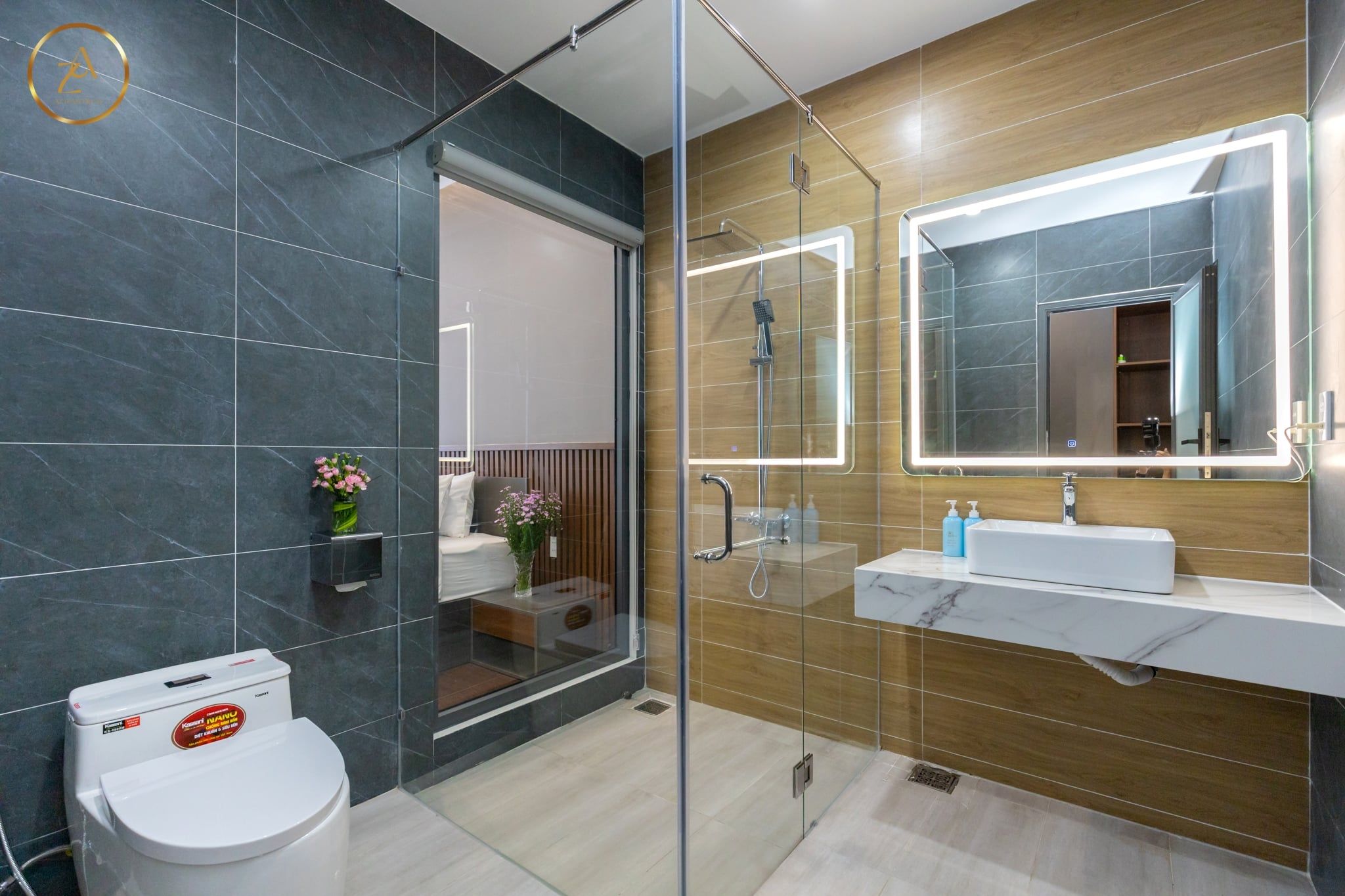 Villa AZ 24 là một biệt thự sang trọng và hiện đại, nằm ngay sát bãi biển Bãi Dâu, Vũng Tàu. Biệt thự có diện tích 600 m2, gồm 6 phòng ngủ, 7 nhà vệ sinh, phòng khách, nhà bếp và sân hiên. Mỗi phòng ngủ đều có giường đôi cực lớn, máy lạnh, tivi và phòng tắm riêng. Phòng khách rộng rãi và thoáng mát, có sofa, bàn ăn và cửa sổ lớn nhìn ra hồ bơi và biển. Nhà bếp được trang bị đầy đủ tiện nghi như tủ lạnh, bếp điện, lò vi sóng và máy pha cà phê. Sân hiên là nơi lý tưởng để thư giãn và thưởng thức không khí biển, có ghế đẩu, bàn ghế và máy nướng BBQ. Biệt thự còn có hồ bơi riêng rộng 50 m2, nằm trong khuôn viên xanh mát và yên tĩnh. Từ biệt thự, chỉ cần đi bộ vài bước là đến được bãi biển Bãi Dâu, nơi có cát trắng mịn và nước trong xanh. Biệt thự 45 trần phú là sự lựa chọn hoàn hảo cho những ai muốn tận hưởng kỳ nghỉ sang trọng và thoải mái tại Vũng Tàu