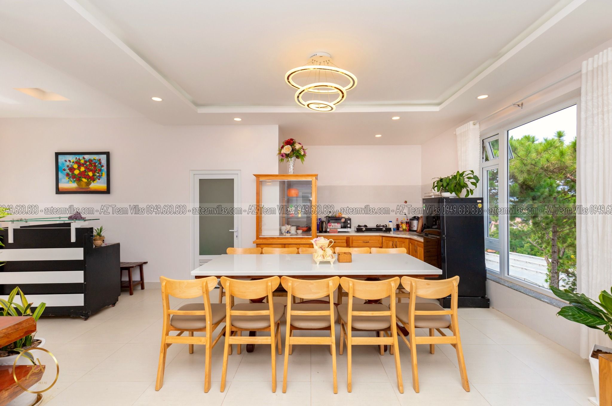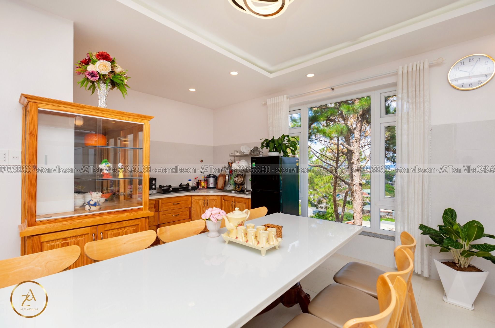 Nhà bếp tại Villa AZ 1 được trang bị đầy đủ tiện nghi, giúp bạn dễ dàng chuẩn bị các bữa ăn ngon miệng. Villa nằm cách hồ 4km, thuận tiện cho việc di chuyển và tham quan các điểm du lịch nổi tiếng tại Đà Lạt. Biệt thự còn có ga ra, giúp bạn an tâm về chỗ đậu xe khi lưu trú tại đây.