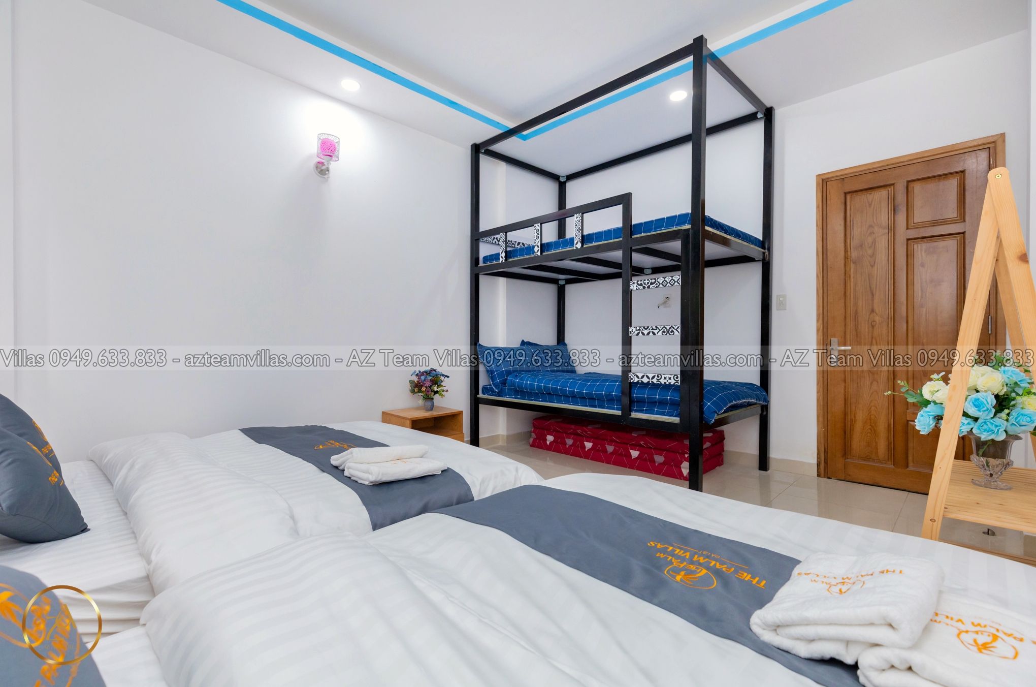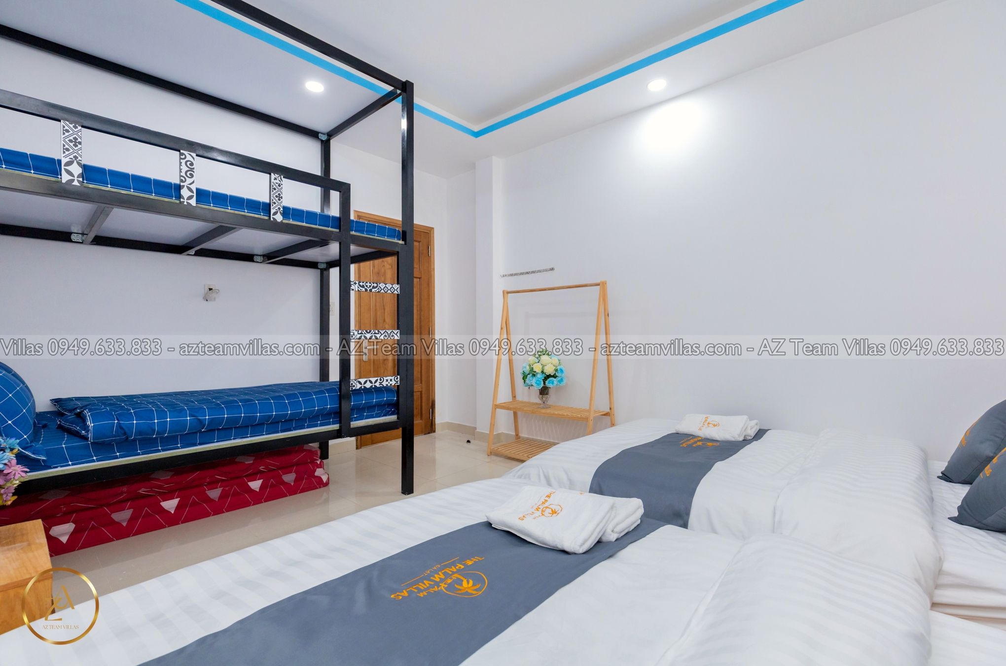 - Phòng Ngủ: Villa AZ 14 có tổng cộng 3 phòng ngủ. Trong đó, có 2 phòng đơn với nhà vệ sinh riêng và 1 phòng đôi có 2 giường cùng với giường tầng, đủ sức chứa cho 6 người. Thiết kế này đảm bảo sự thoải mái và tiện lợi cho tất cả thành viên.
