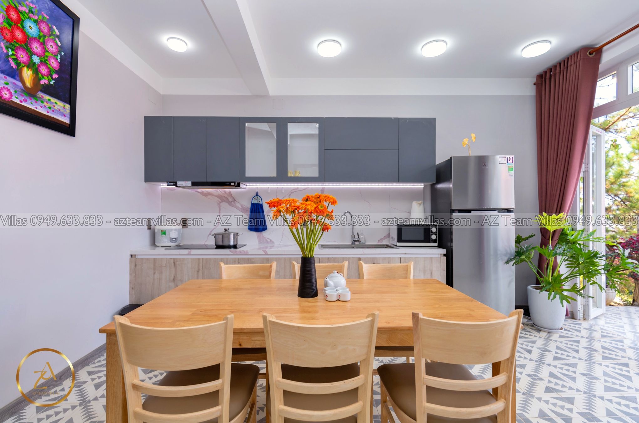 Nhà bếp tại Villa AZ 3 được trang bị đầy đủ tiện nghi, giúp bạn dễ dàng chuẩn bị các bữa ăn ngon miệng. Villa nằm cách hồ 4km, thuận tiện cho việc di chuyển và tham quan các điểm du lịch nổi tiếng tại Đà Lạt. Biệt thự còn có ga ra, giúp bạn an tâm về chỗ đậu xe khi lưu trú tại đây.