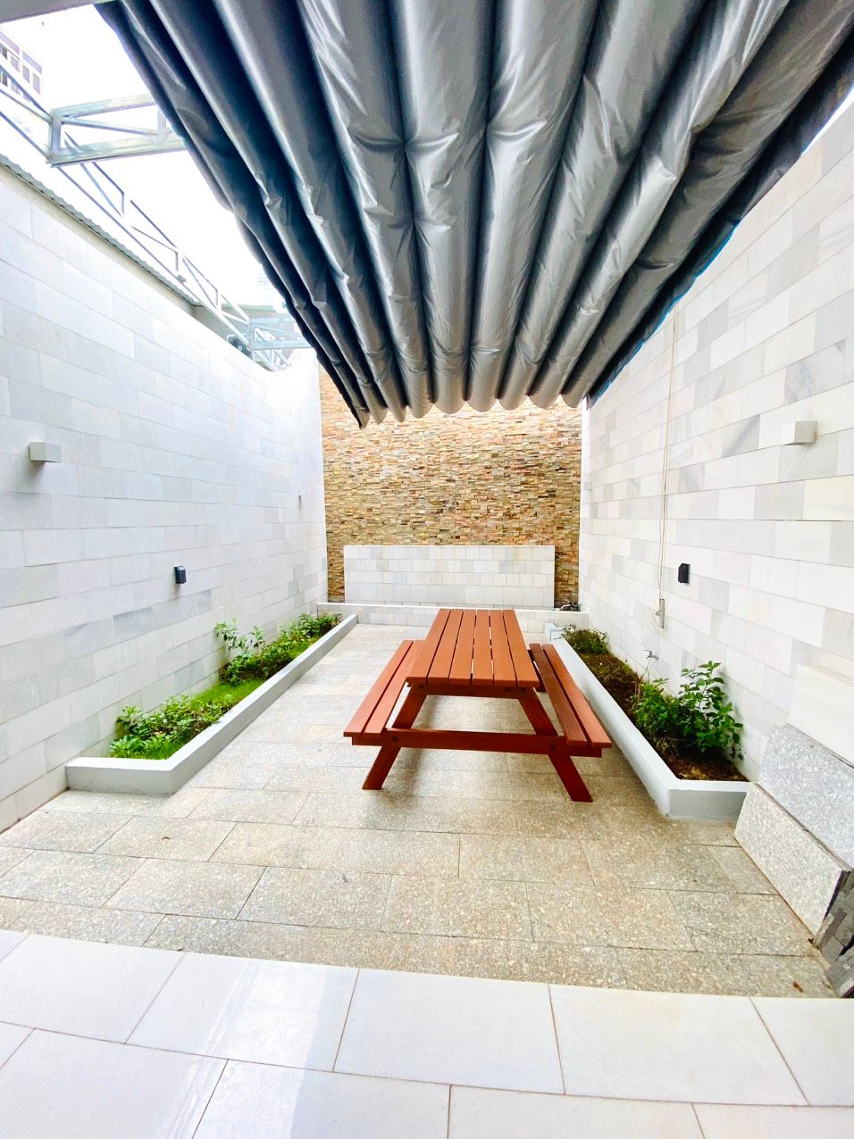 - Sân vườn BBQ: lò nướng BBQ, bộ bàn ghế gỗ BBQ ngồi ngoài trời thoáng mát chill chill