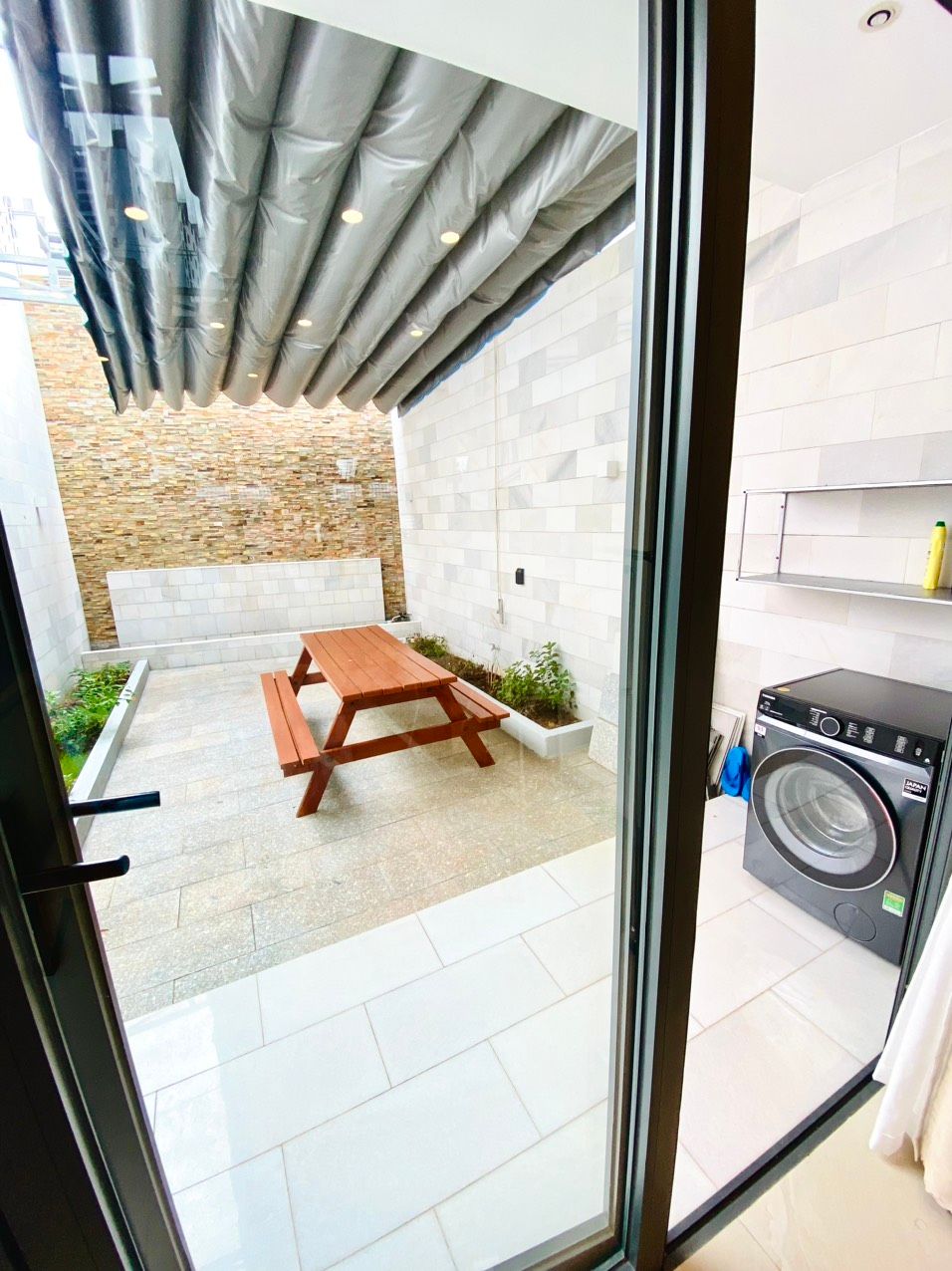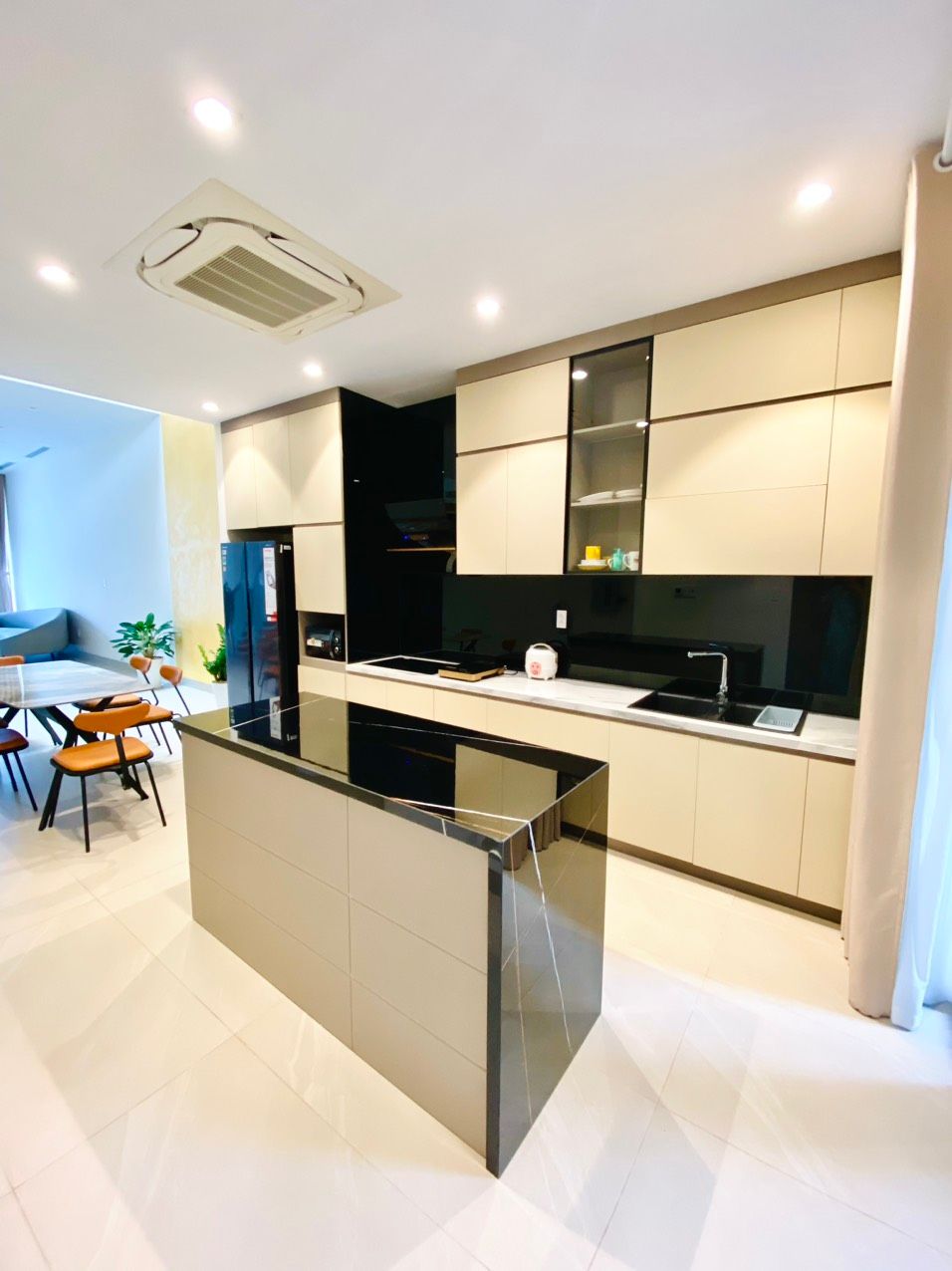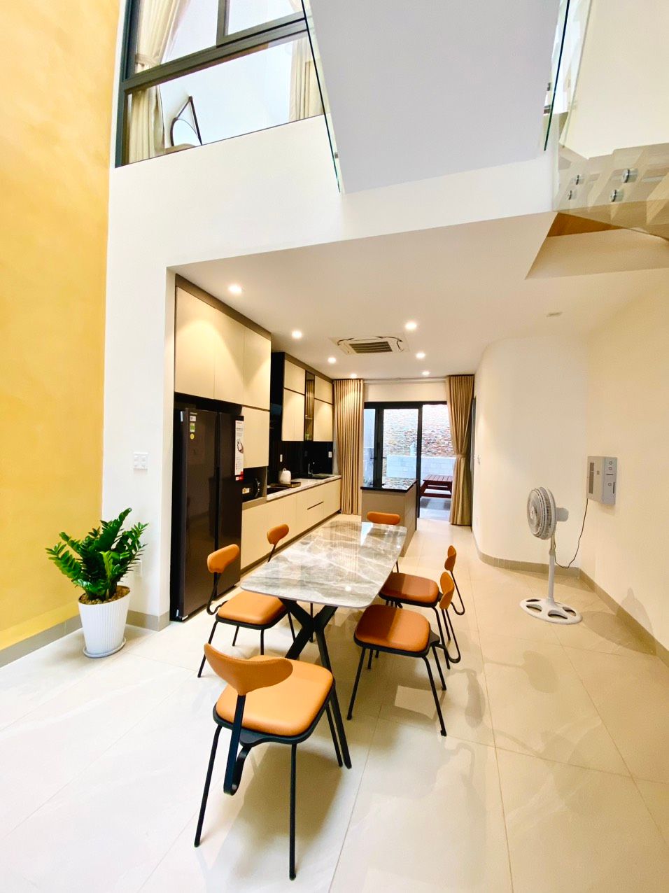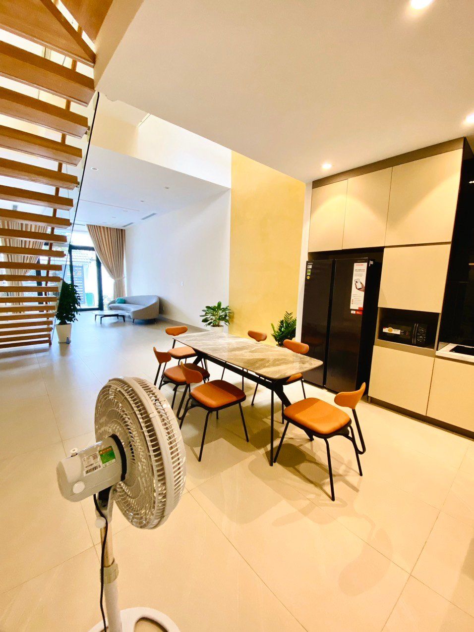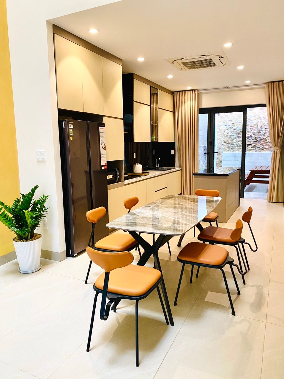 - Dụng cụ nhà bếp hiện đại: bếp điện từ, tủ lạnh, lò vi sóng, nồi cơm điện, bàn ghế ăn trong nhà, đầy đủ dụng cụ nấu ăn (nồi, chảo, ly, chén bát,...), sử dụng miễn phí
