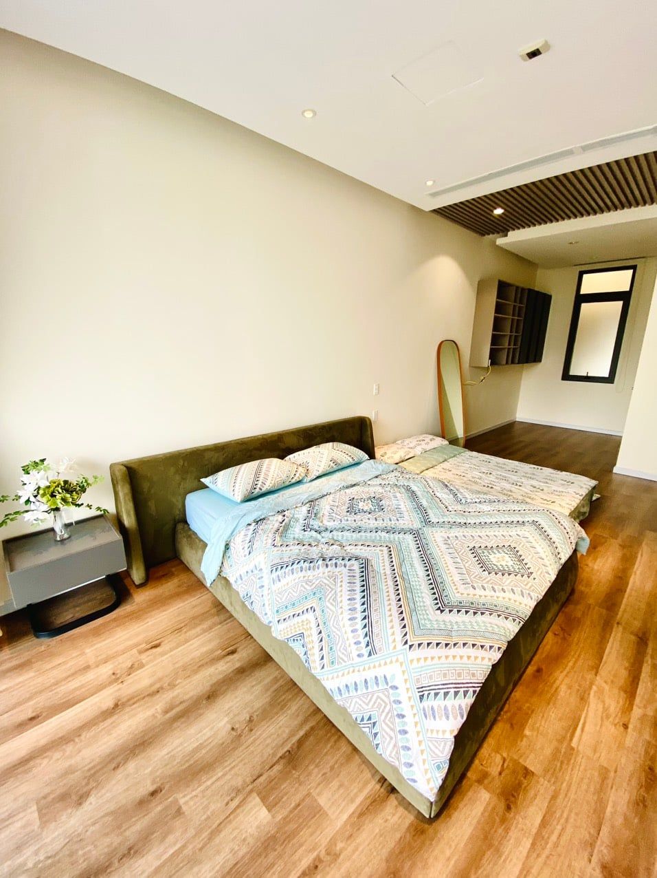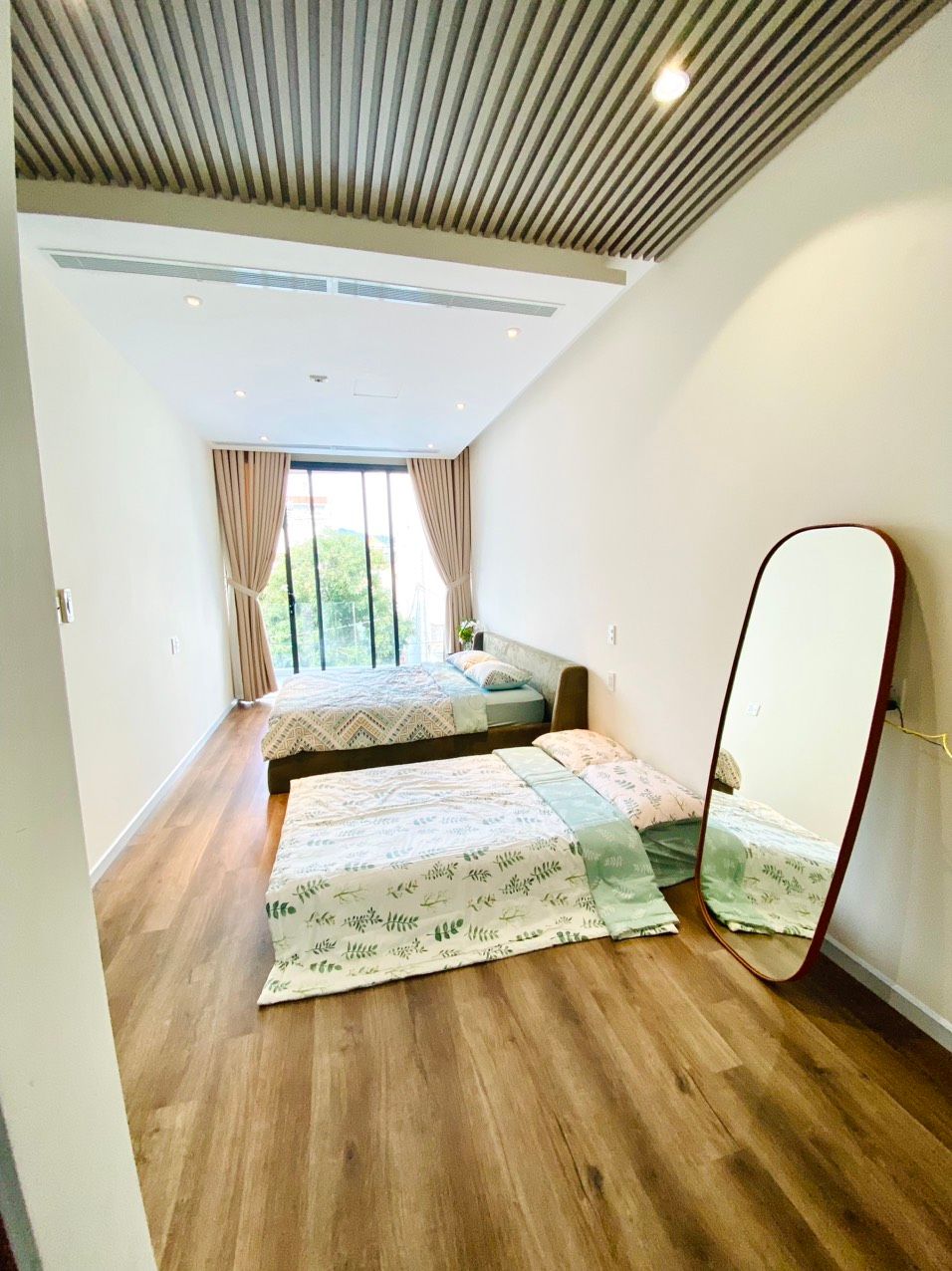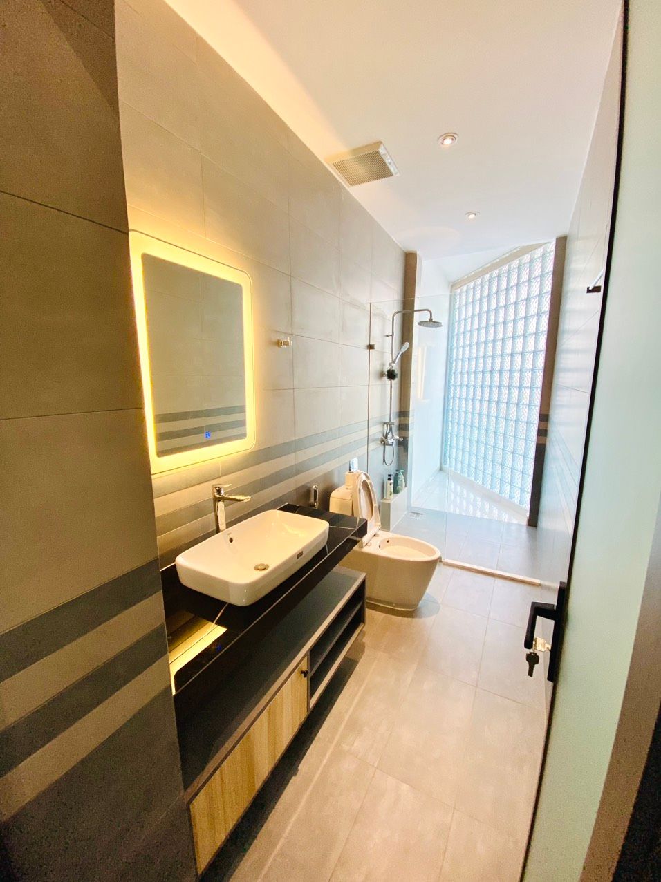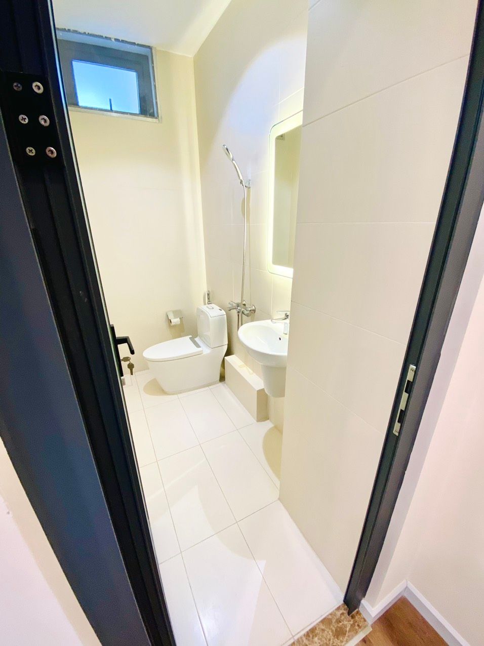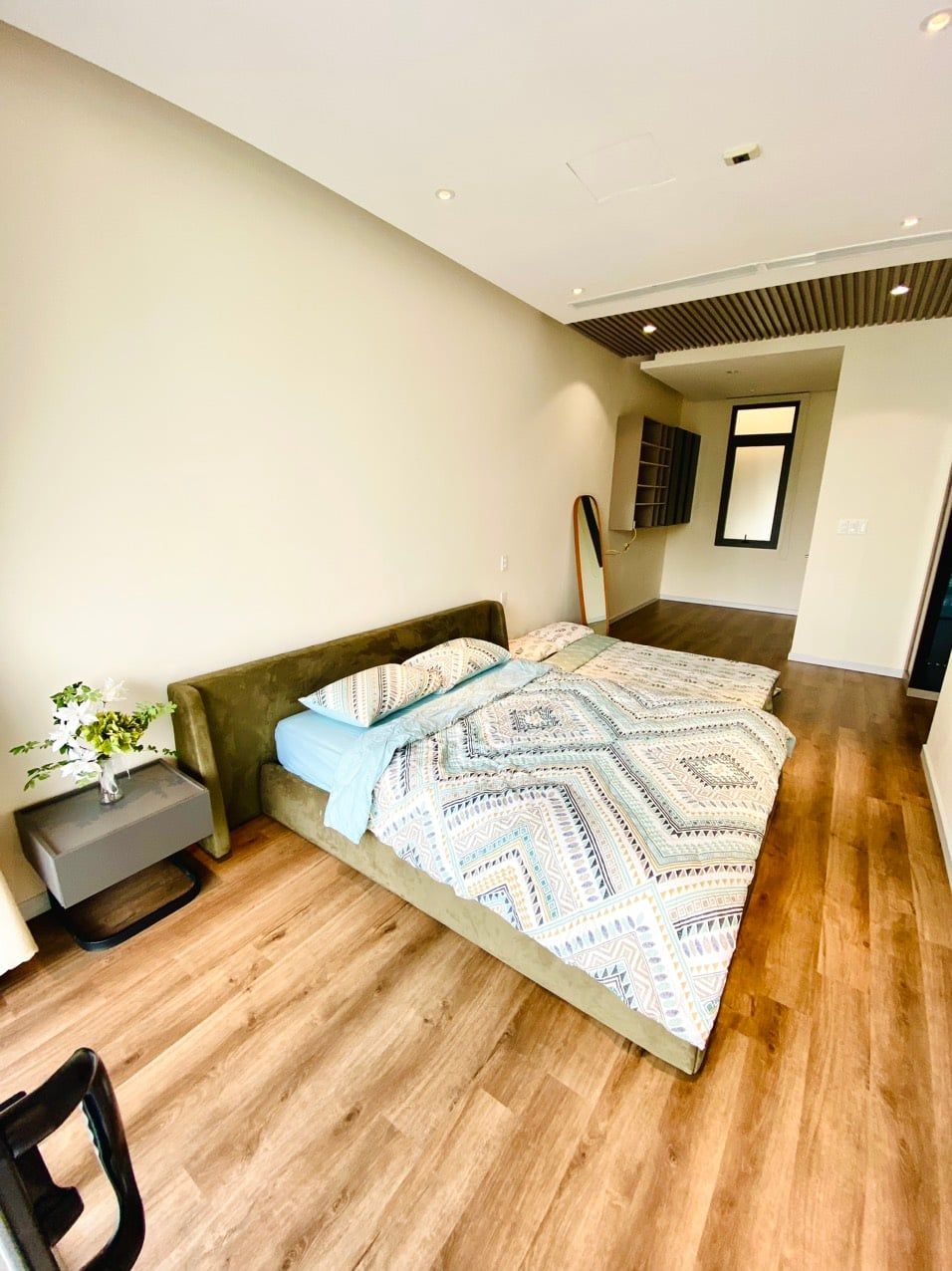 Phòng ngủ thiết kế thoải mái với đèn trang trí mềm mại, tạo không khí thư giãn và ấm áp. Phòng tắm được trang bị tiện nghi hiện đại, tạo điểm nhấn với thiết kế tinh tế.