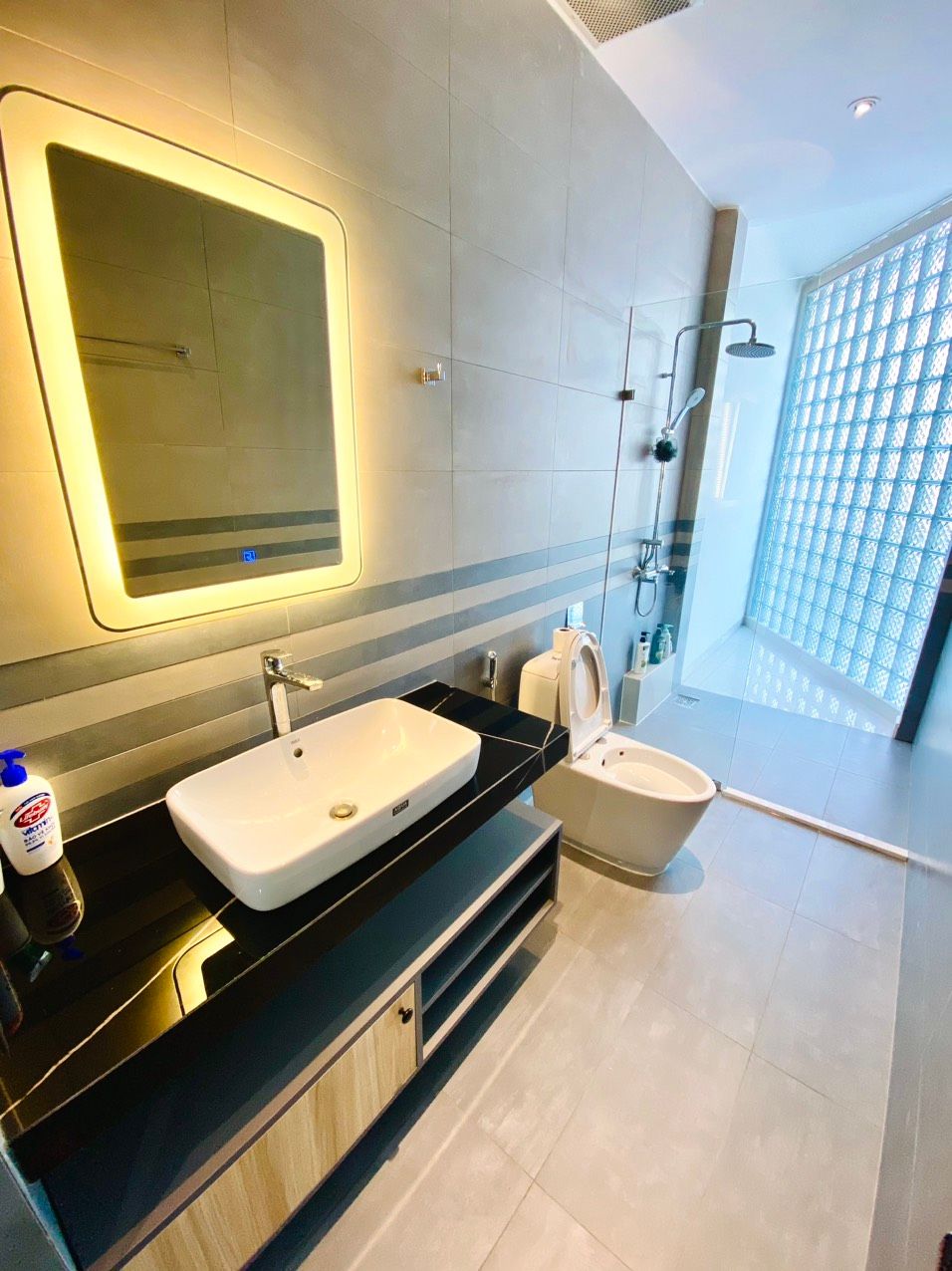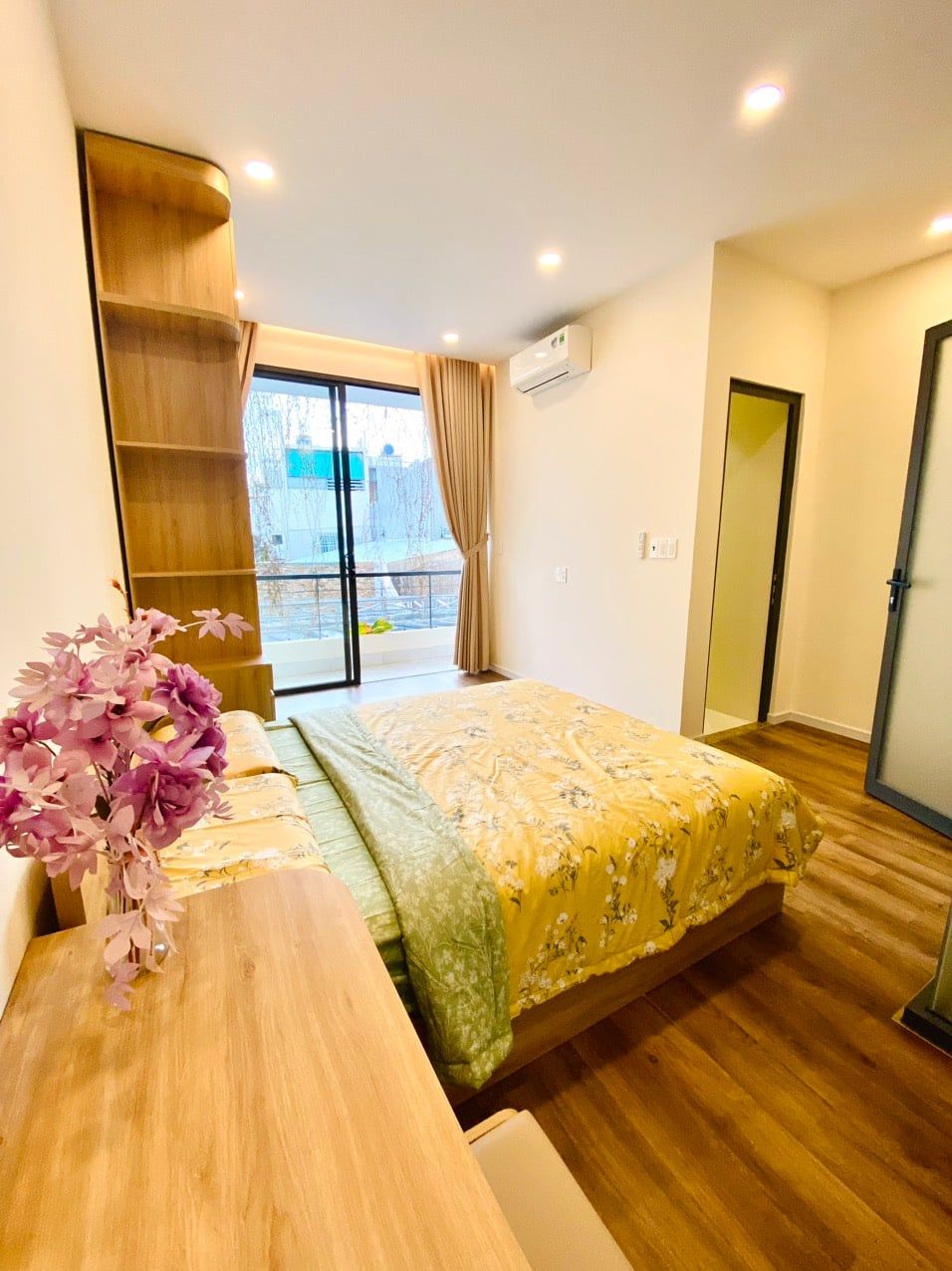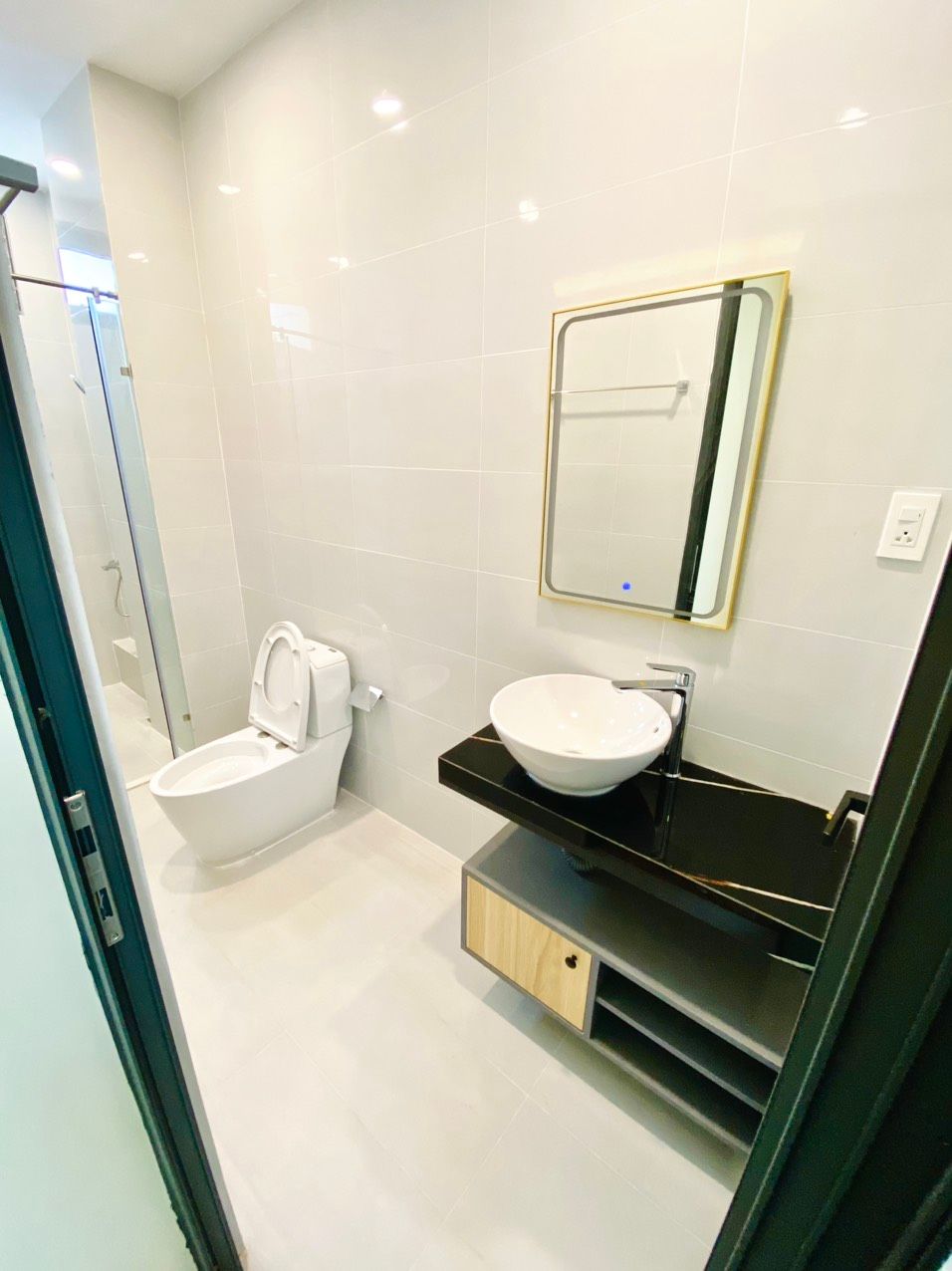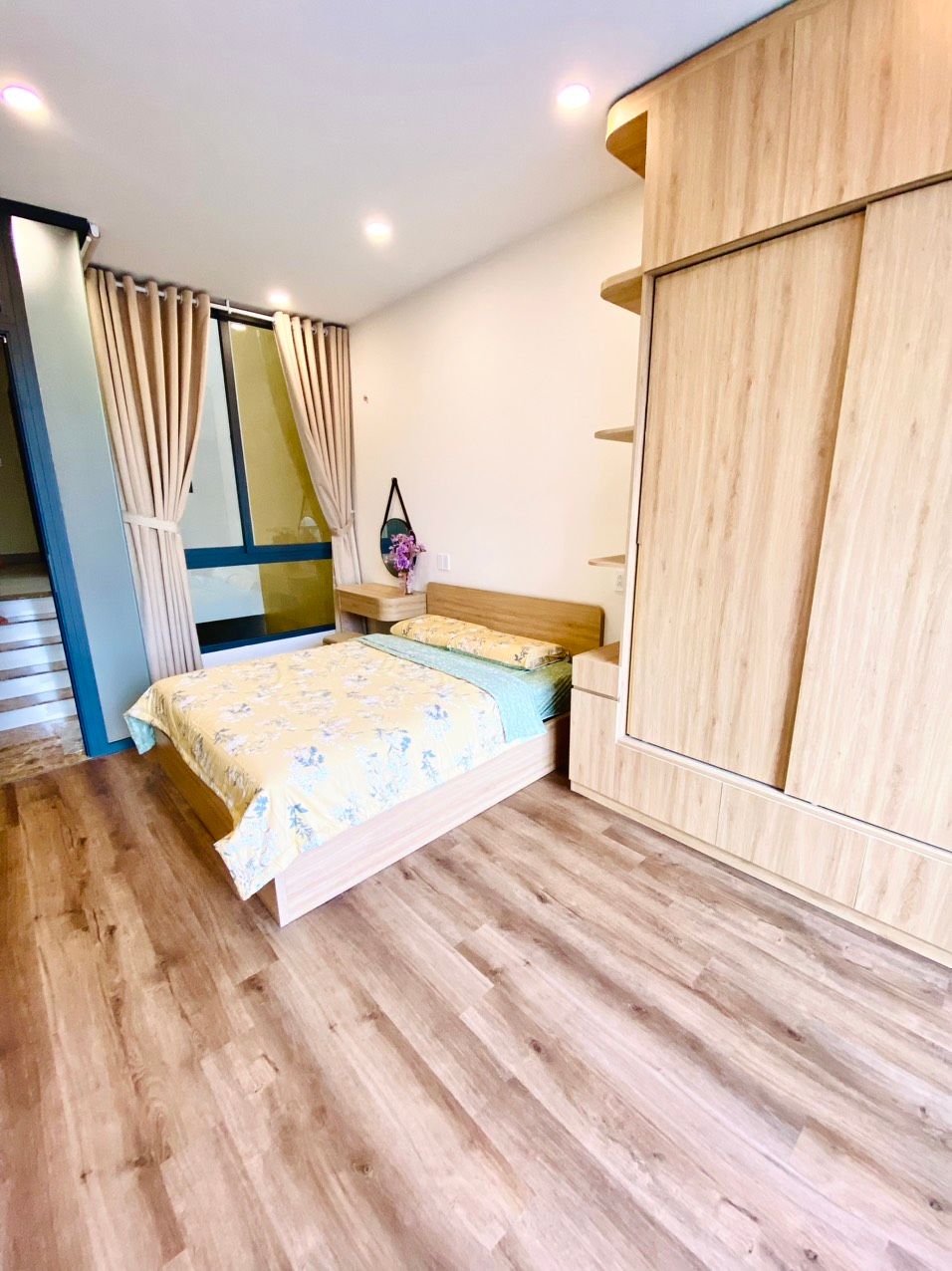 Phòng ngủ thiết kế thoải mái với đèn trang trí mềm mại, tạo không khí thư giãn và ấm áp. Phòng tắm được trang bị tiện nghi hiện đại, tạo điểm nhấn với thiết kế tinh tế.