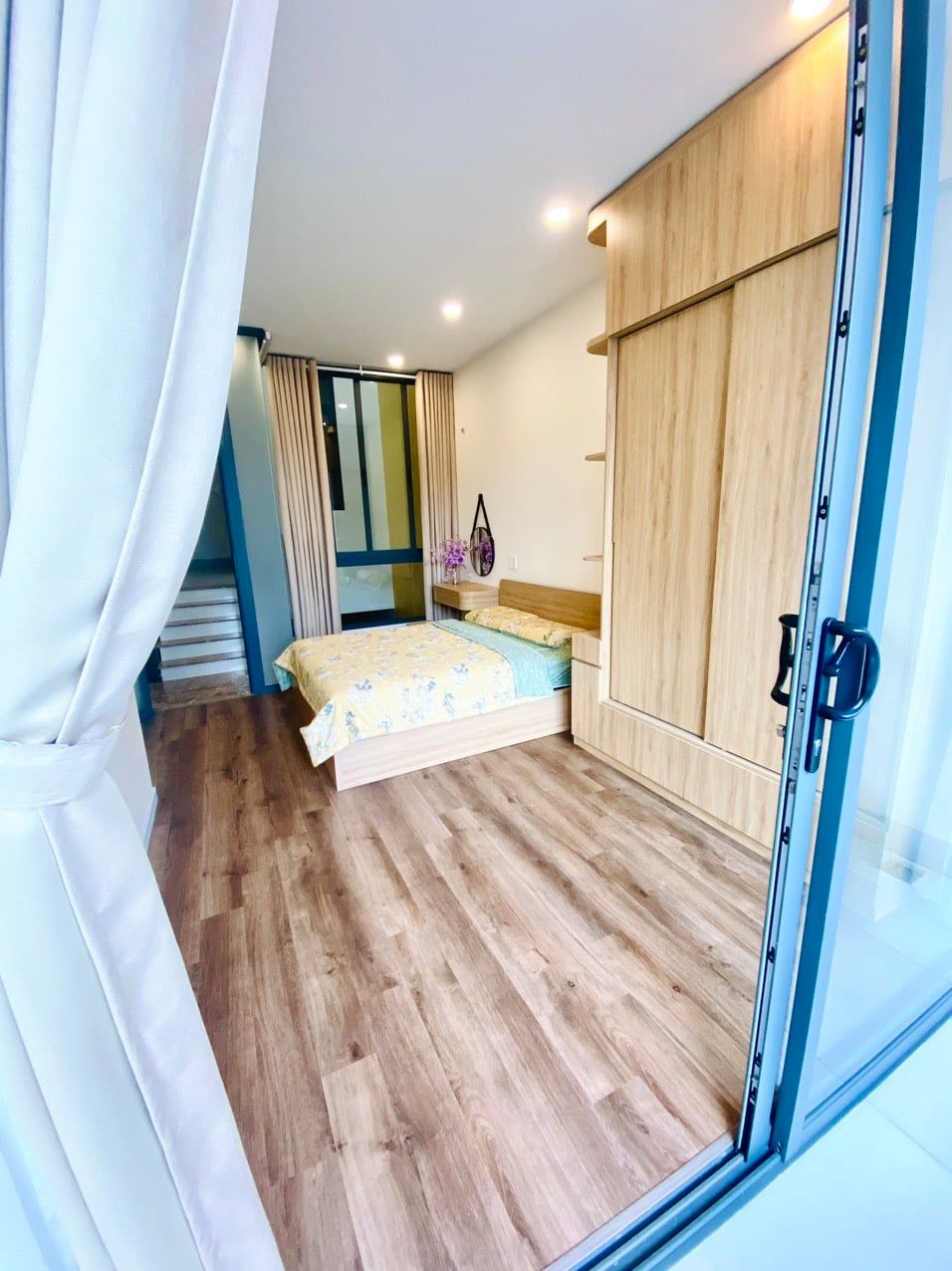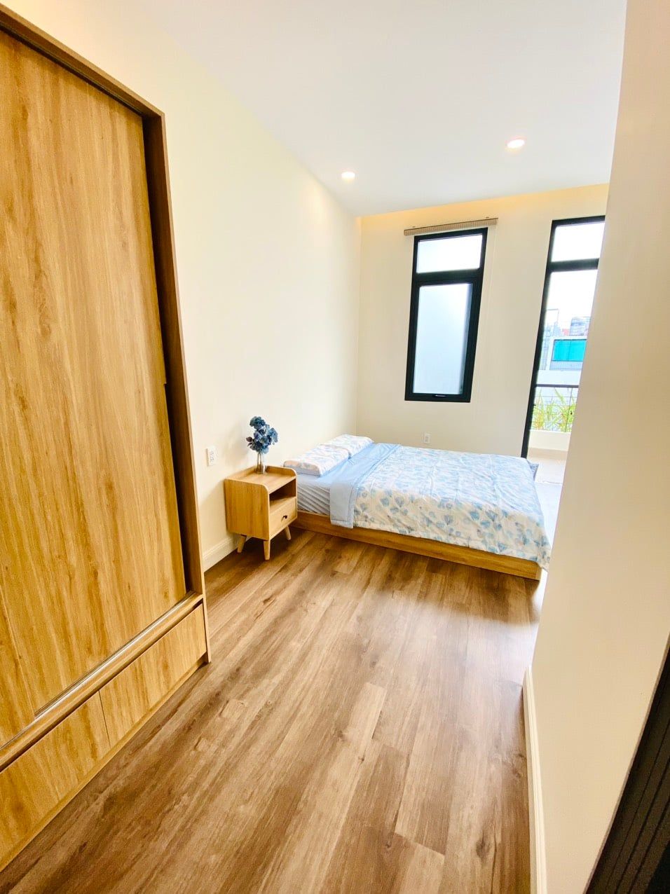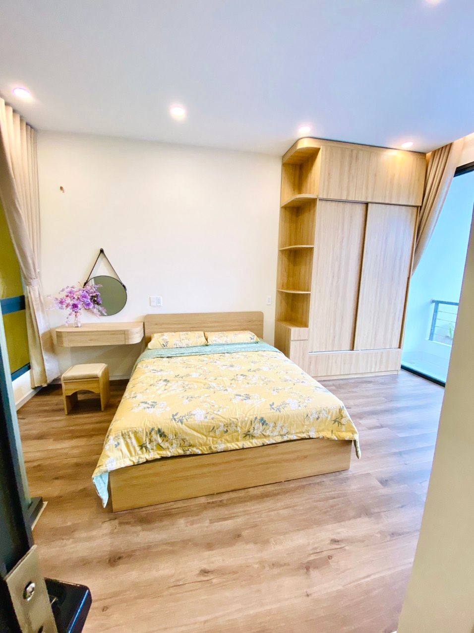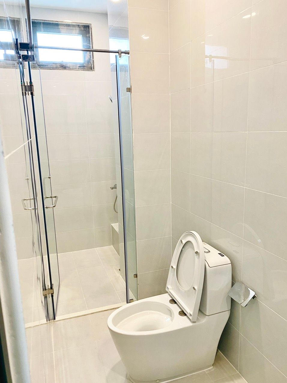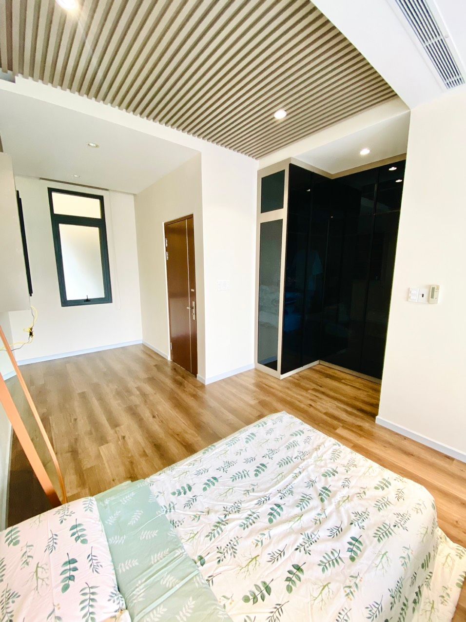 Phòng ngủ thiết kế thoải mái với đèn trang trí mềm mại, tạo không khí thư giãn và ấm áp. Phòng tắm được trang bị tiện nghi hiện đại, tạo điểm nhấn với thiết kế tinh tế.