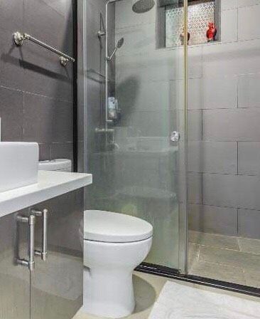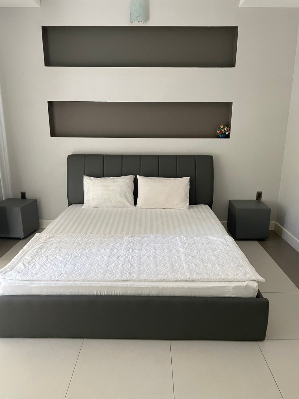 Phòng ngủ thiết kế thoải mái với đèn trang trí mềm mại, tạo không khí thư giãn và ấm áp. Phòng tắm được trang bị tiện nghi hiện đại, tạo điểm nhấn với thiết kế tinh tế.