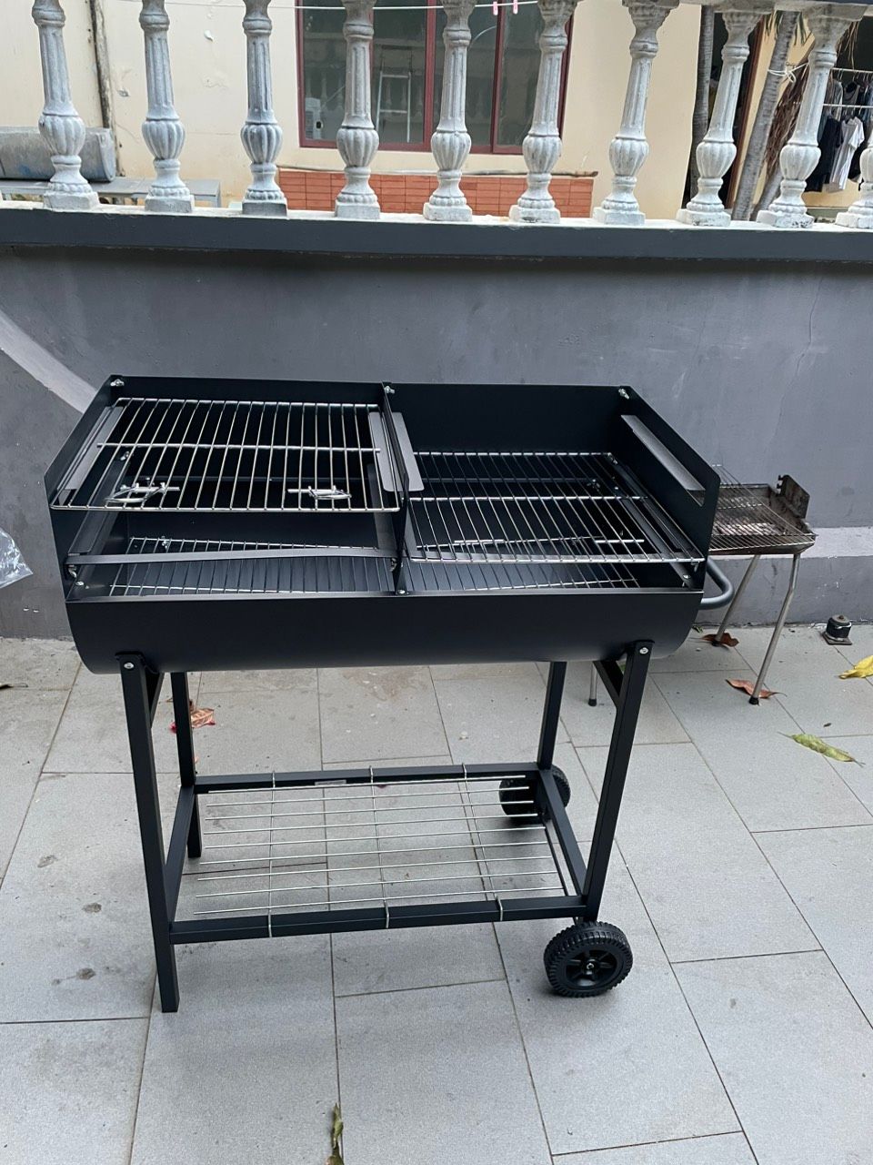 - Sân vườn BBQ: lò nướng BBQ, bộ bàn ghế gỗ BBQ ngồi ngoài trời thoáng mát chill chill