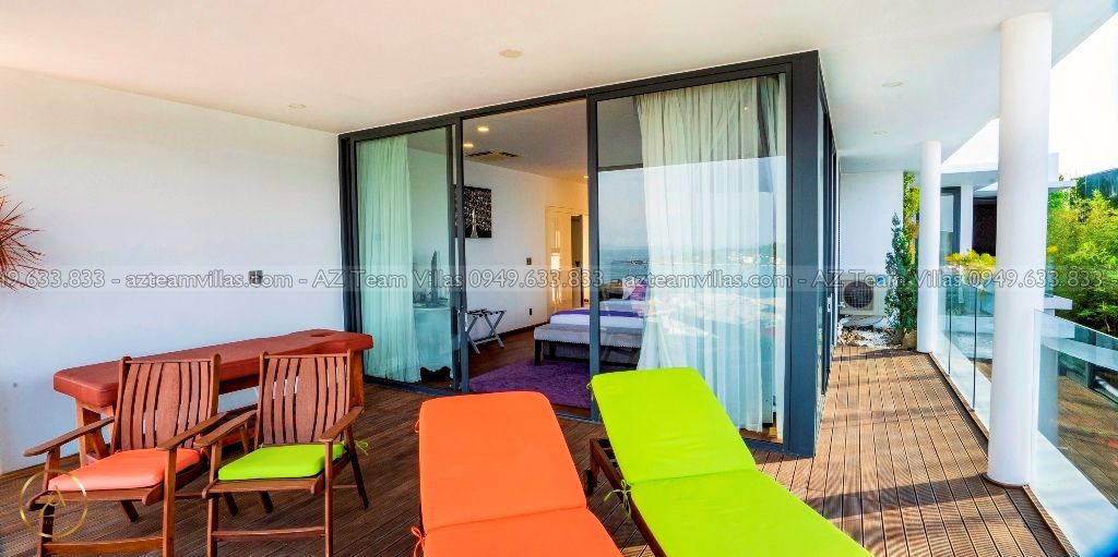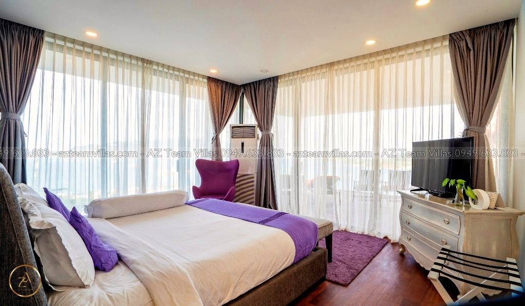 - 3 phòng ngủ (1 giường 1m8x2m) với view biển tuyệt đẹp. Mỗi phòng đều có toilet riêng.