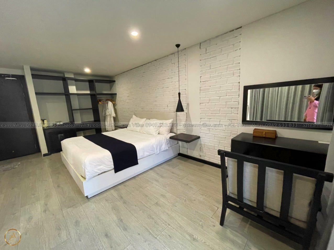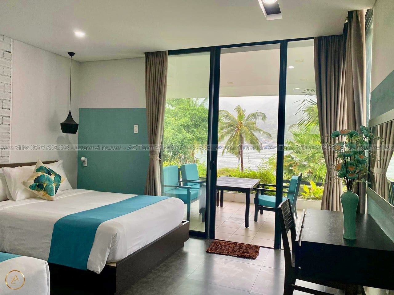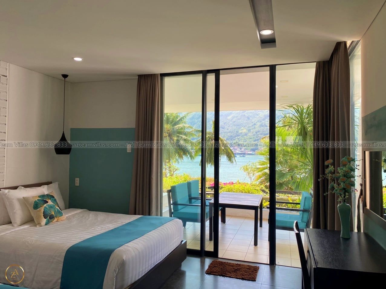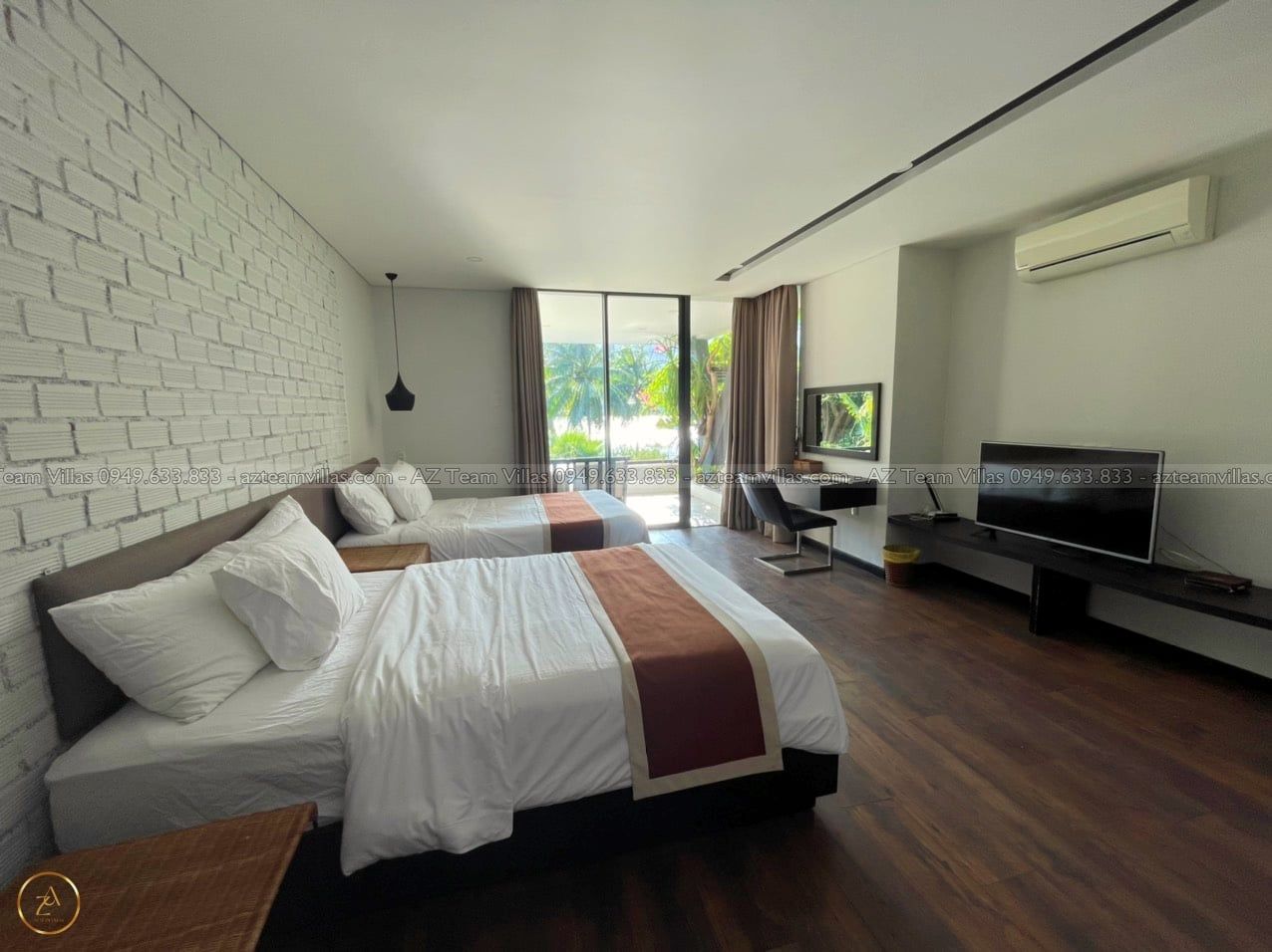- 1 phòng ngủ rộng 40m² (2 giường 1m8 x 2m), ban công view biển.