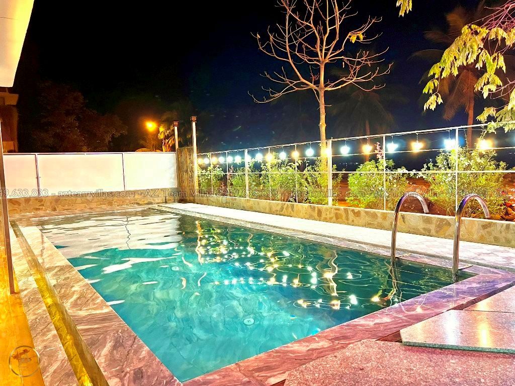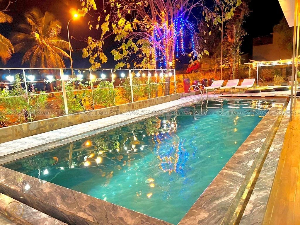 - Hồ bơi riêng: 31,5m² (3,5m x 9m), độ sâu 1,4m