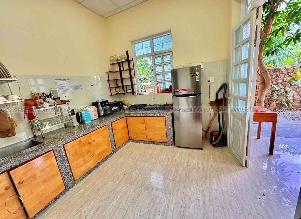 - Nhà bếp: Đầy đủ dụng cụ nấu ăn và tủ lạnh, thuận tiện cho các bữa ăn tại villa.