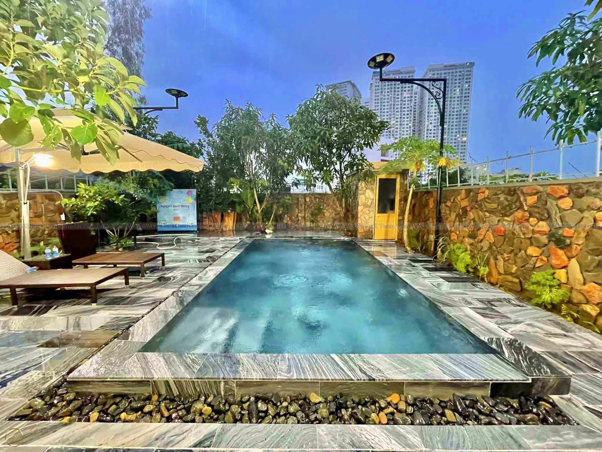 - Hồ bơi riêng: 18m² (3m x 6m), độ sâu 1,2m