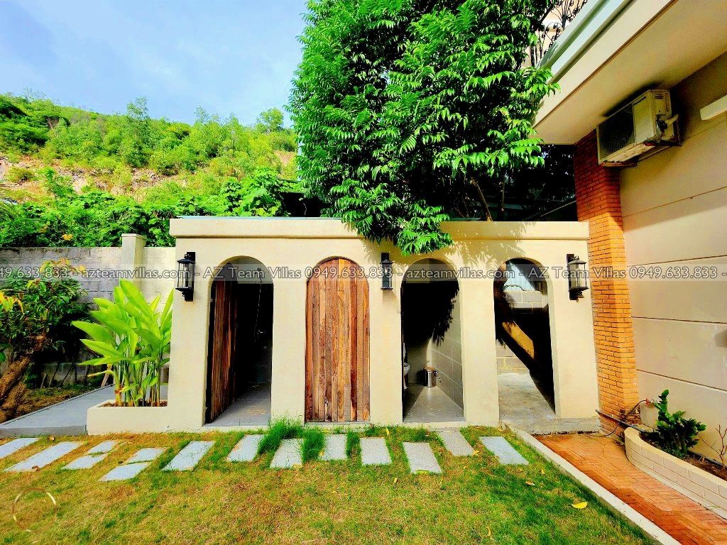- Sân vườn rộng rãi, hồ bơi, 2 toilet ngoài trời, và 1 phòng tắm.
