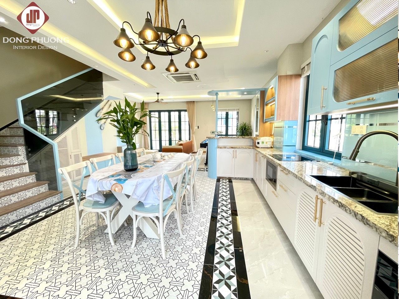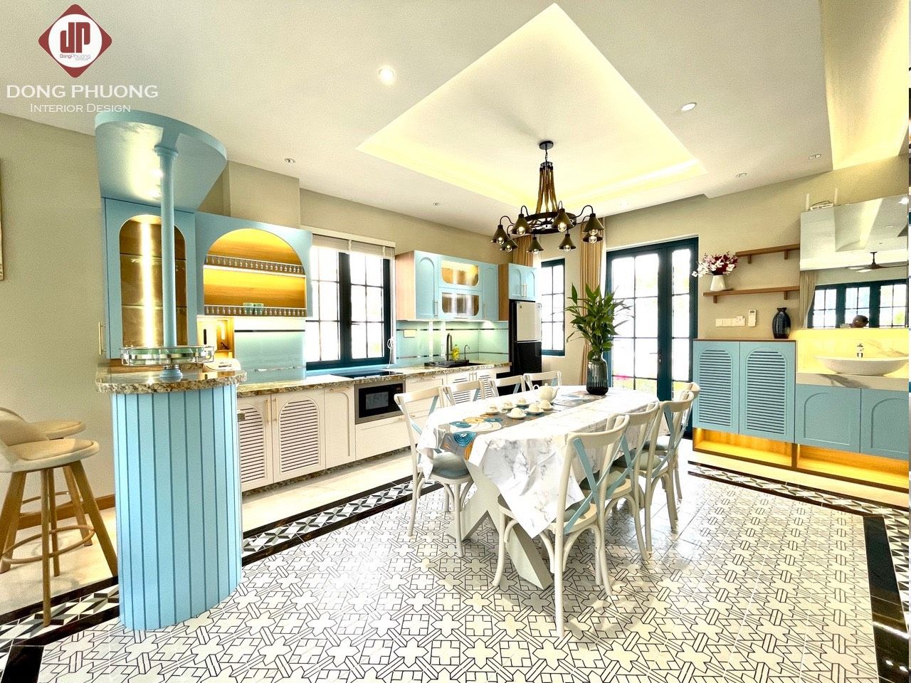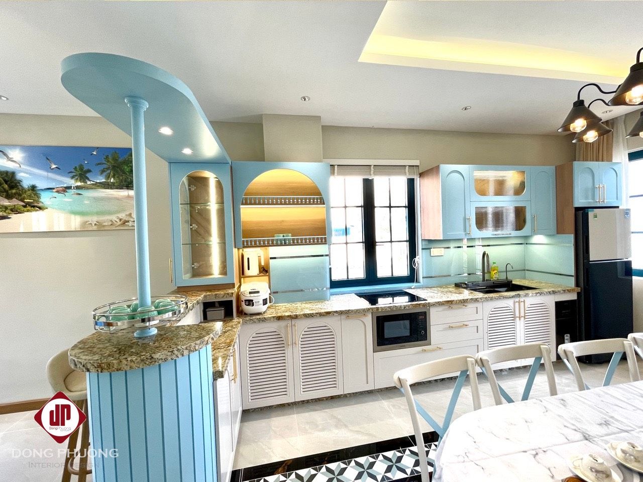 - Bếp đầy đủ thiết bị (tủ lạnh, lò vi sóng, lò nướng, nồi cơm điện)