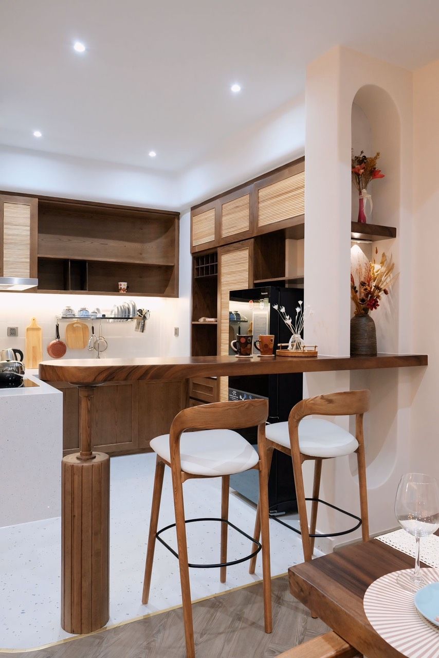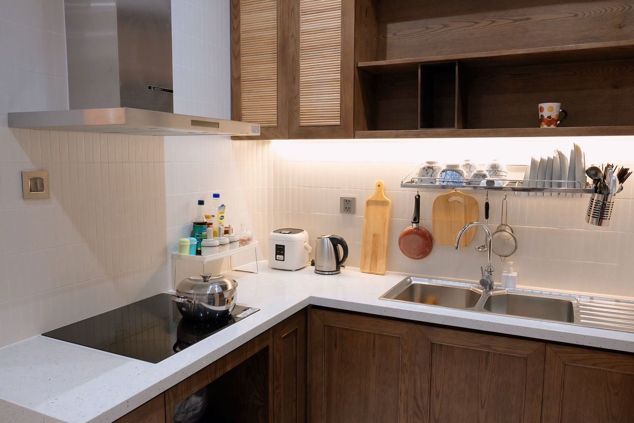 - Bếp đầy đủ thiết bị (tủ lạnh, lò vi sóng, lò nướng, nồi cơm điện)