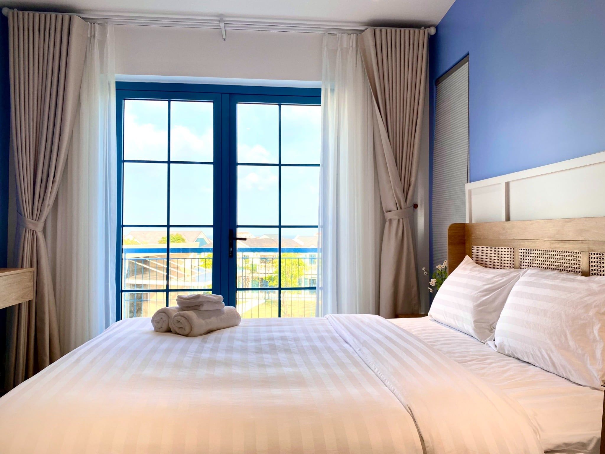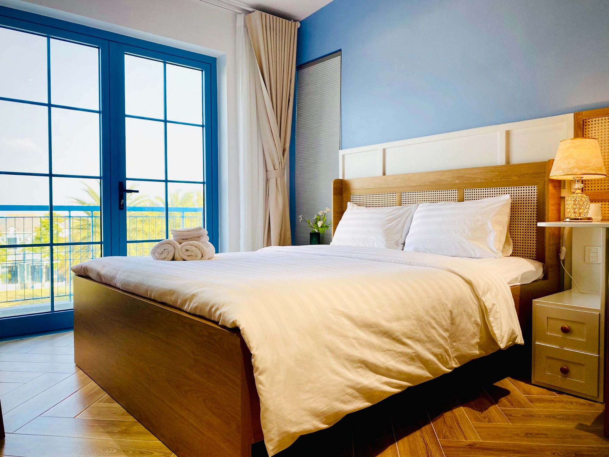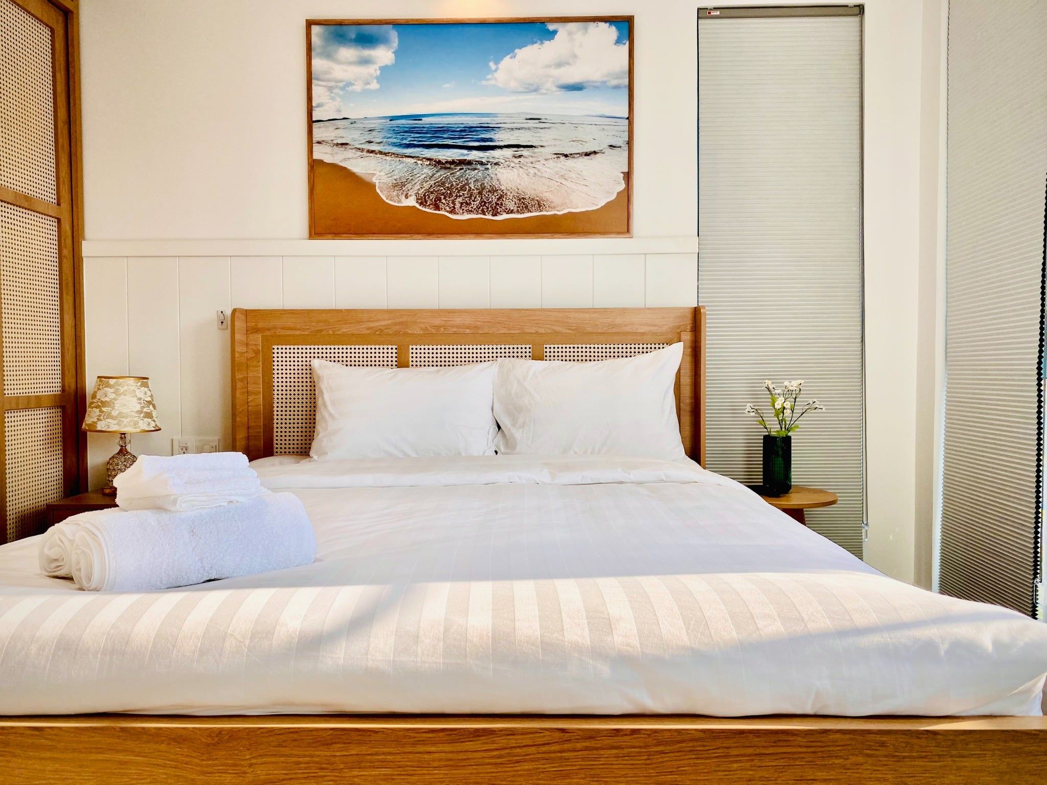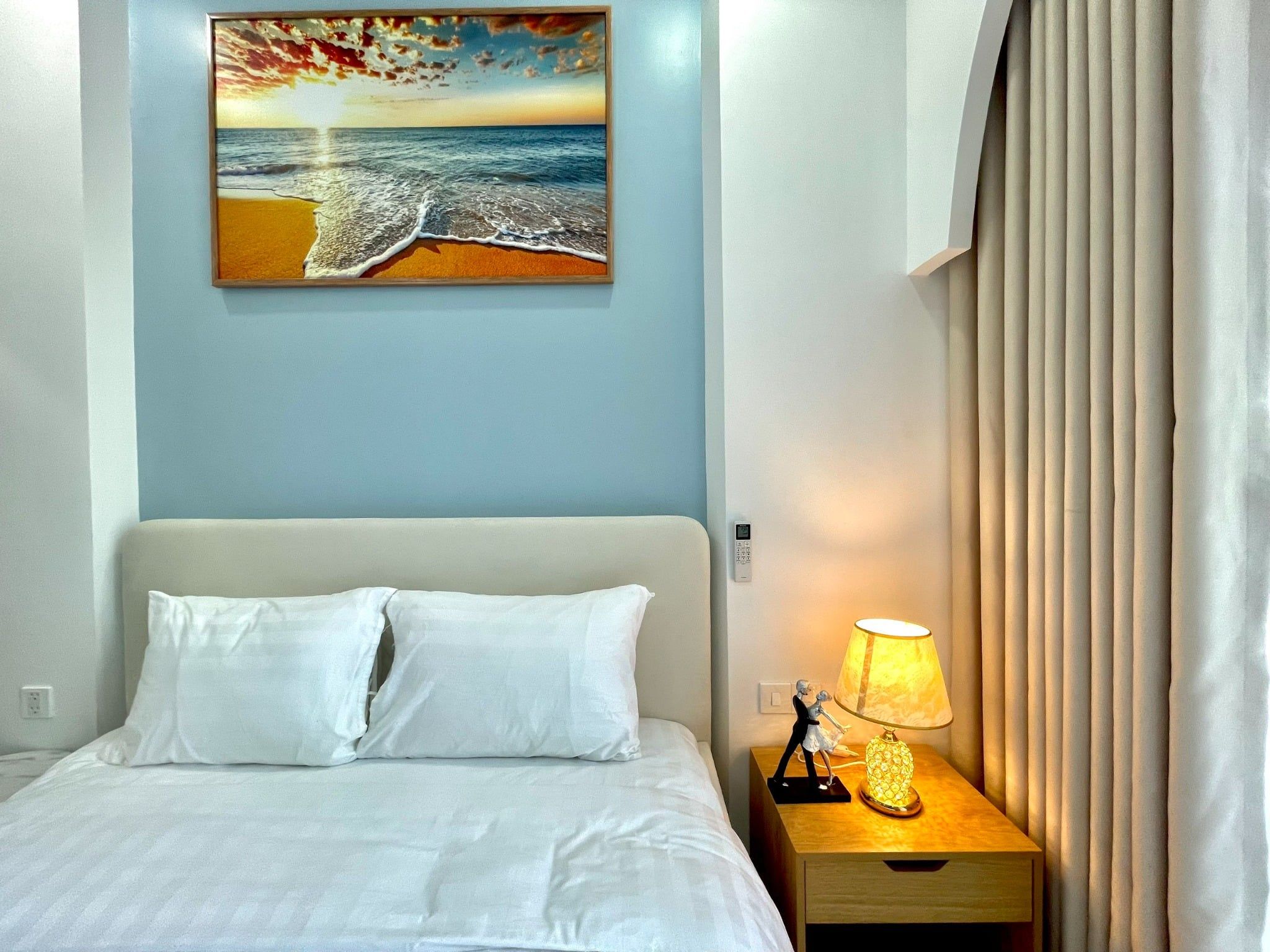 - Phòng ngủ 1 (Phòng Master có WC riêng): giường Queen 1.8m x 2m
