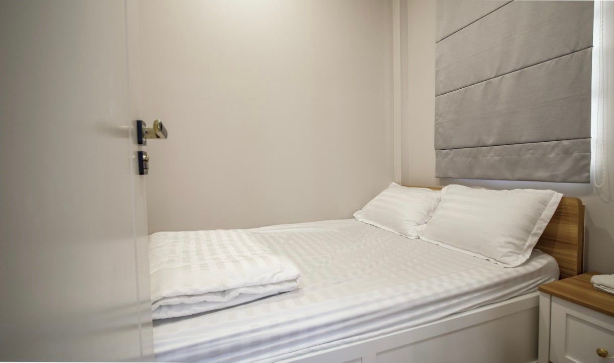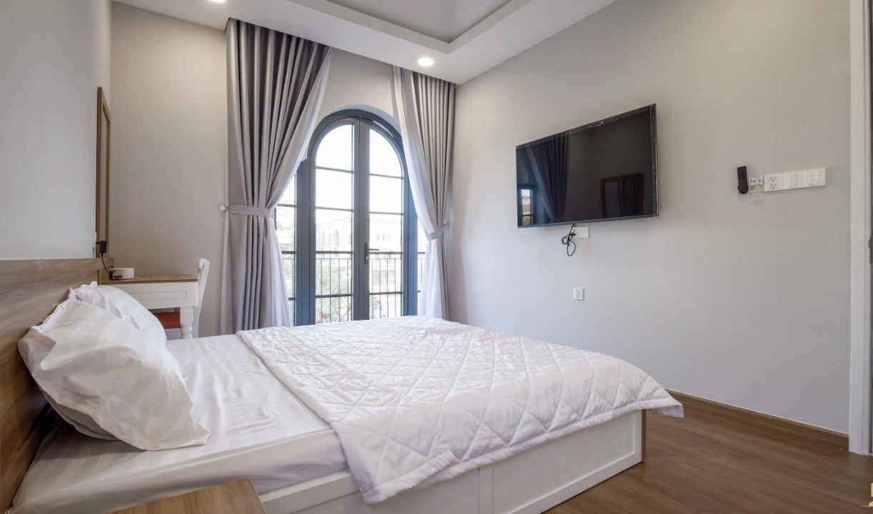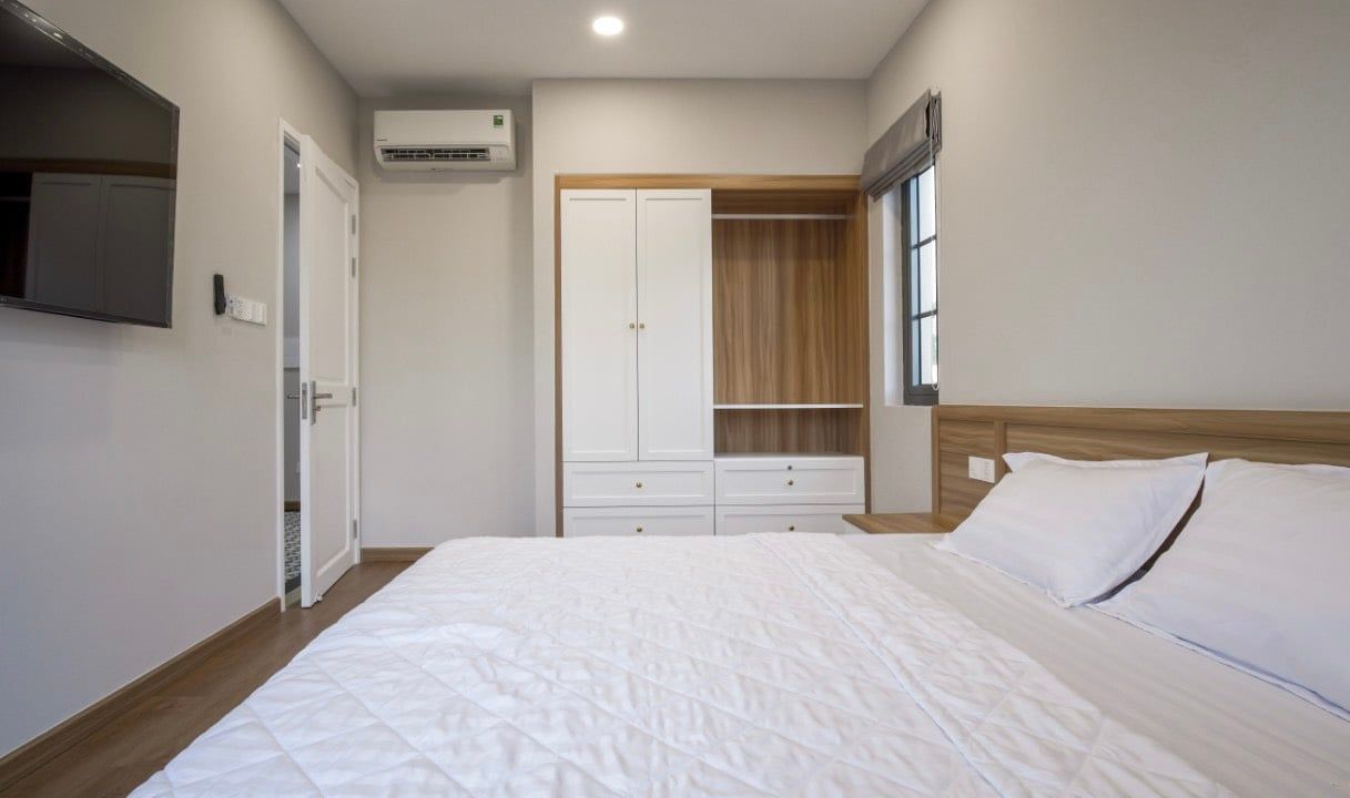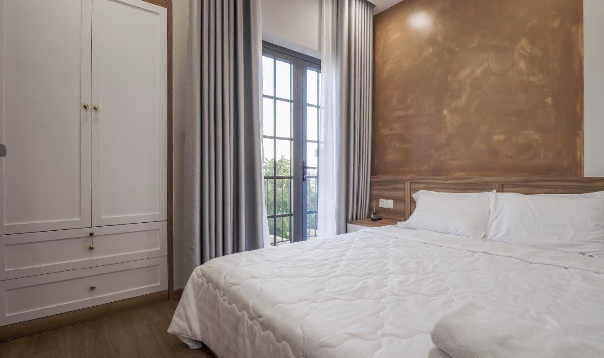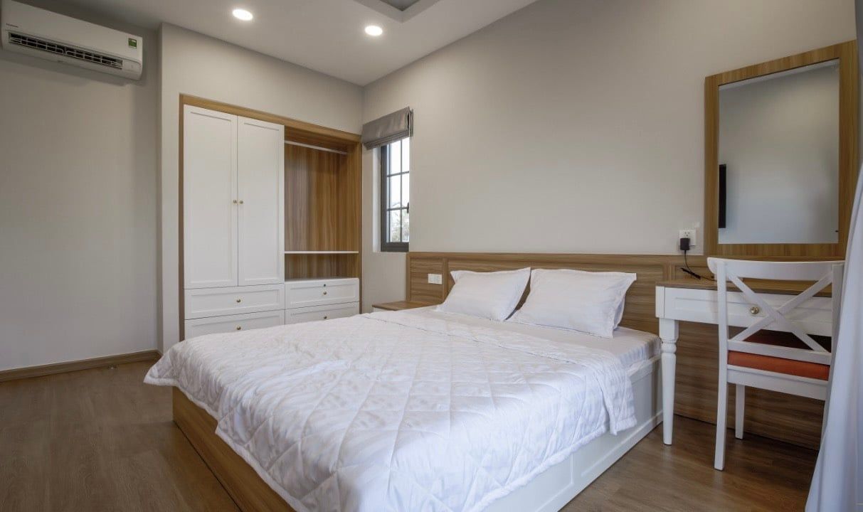 - Phòng ngủ 1 (Phòng Master có WC riêng): giường Queen 1.8m x 2m