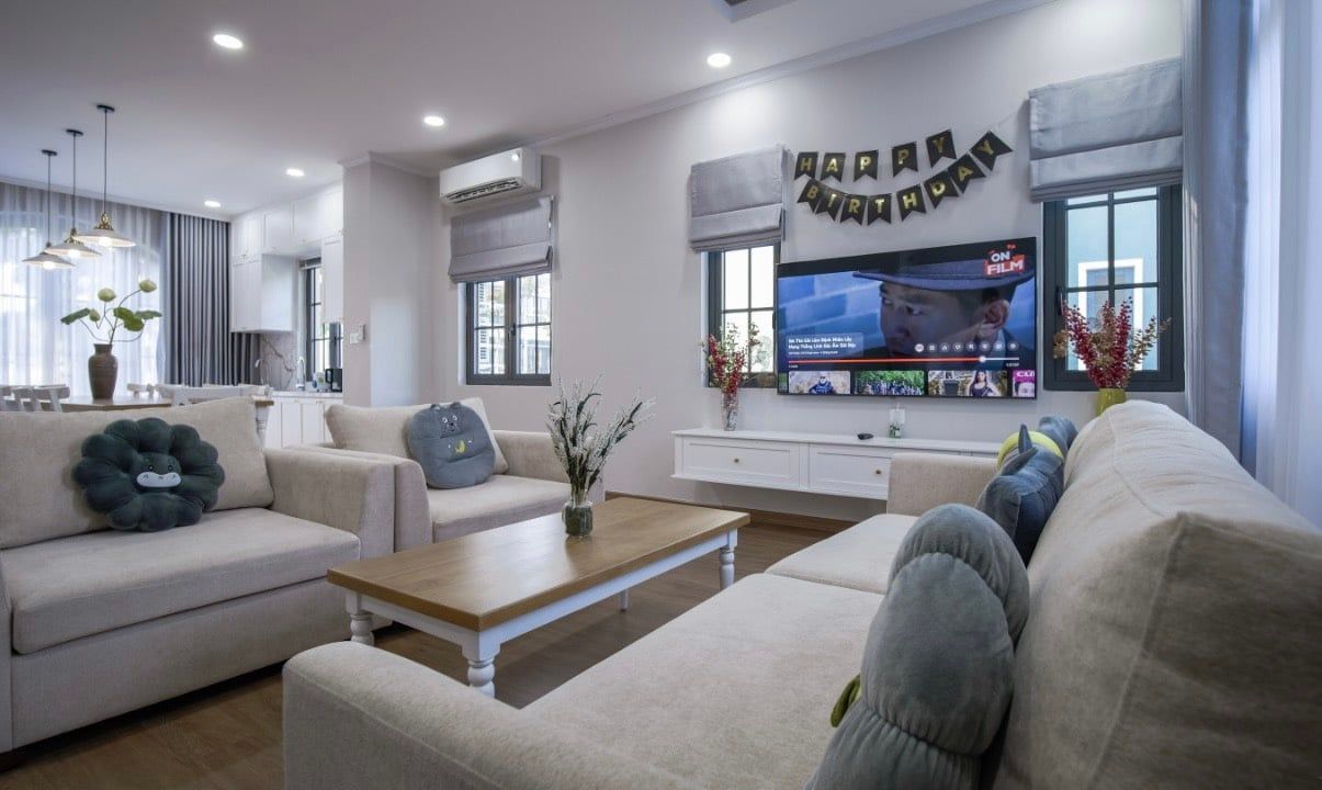 - Phòng khách trang bị ti vi - máy lạnh