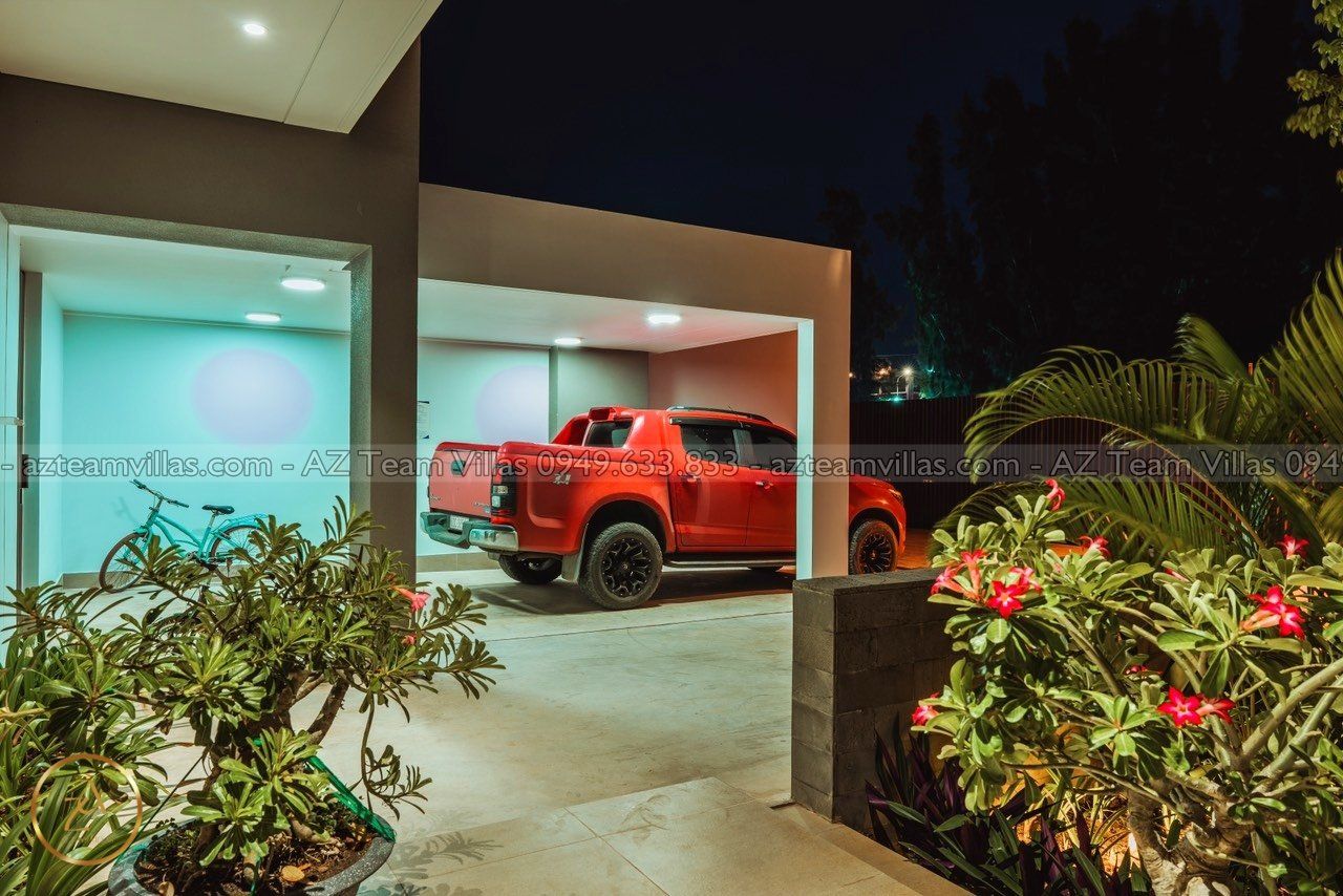 - Gara đậu xe tiện nghi, chứa được 4 xe hơi 7 chỗ, xe có thể vào tận villa.