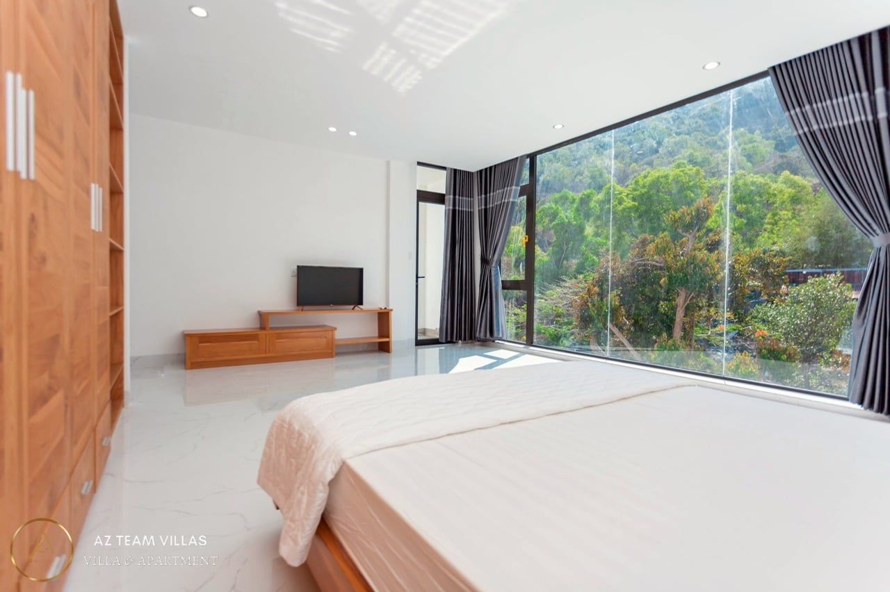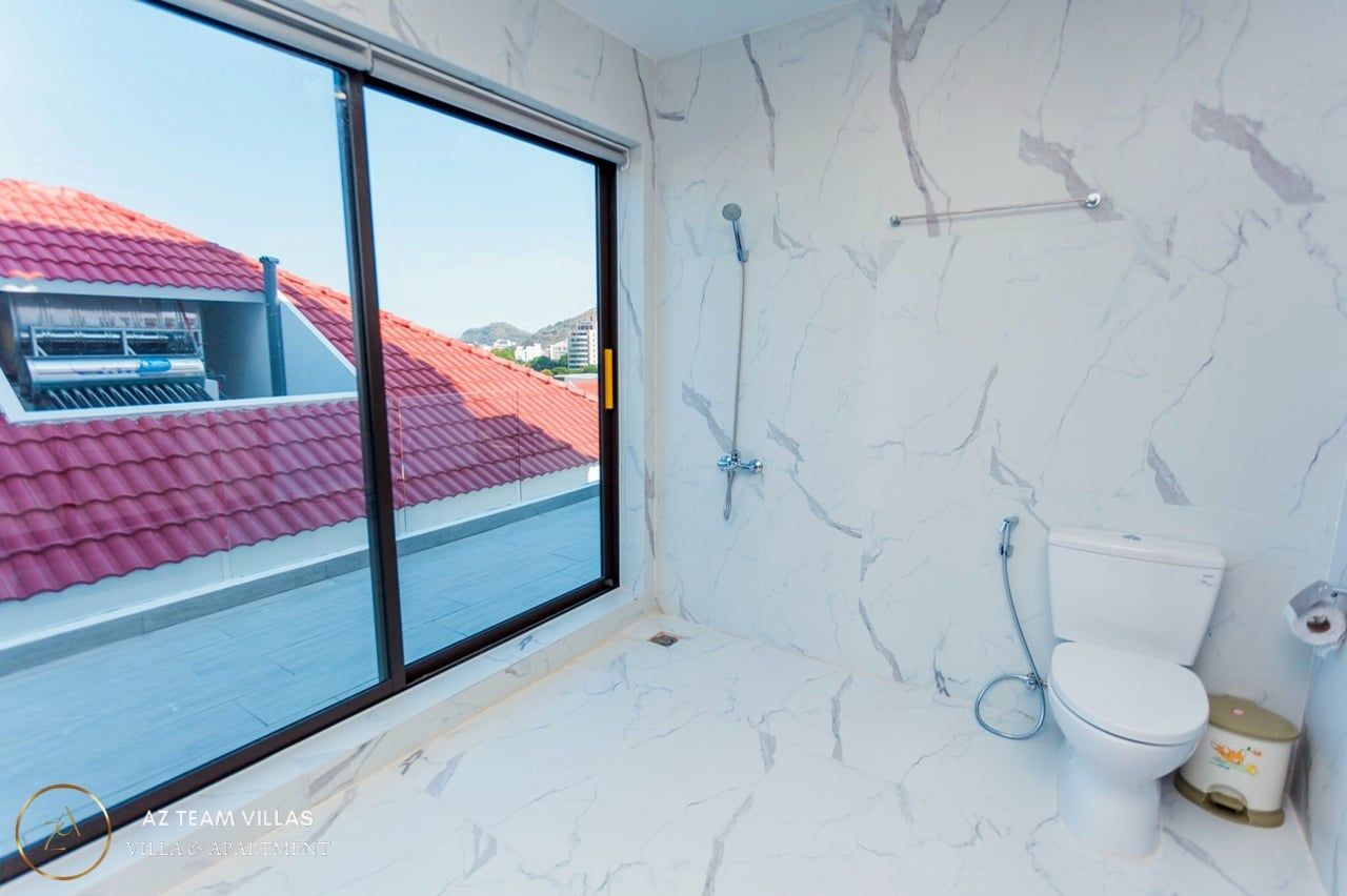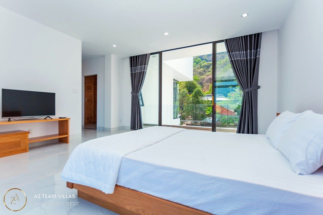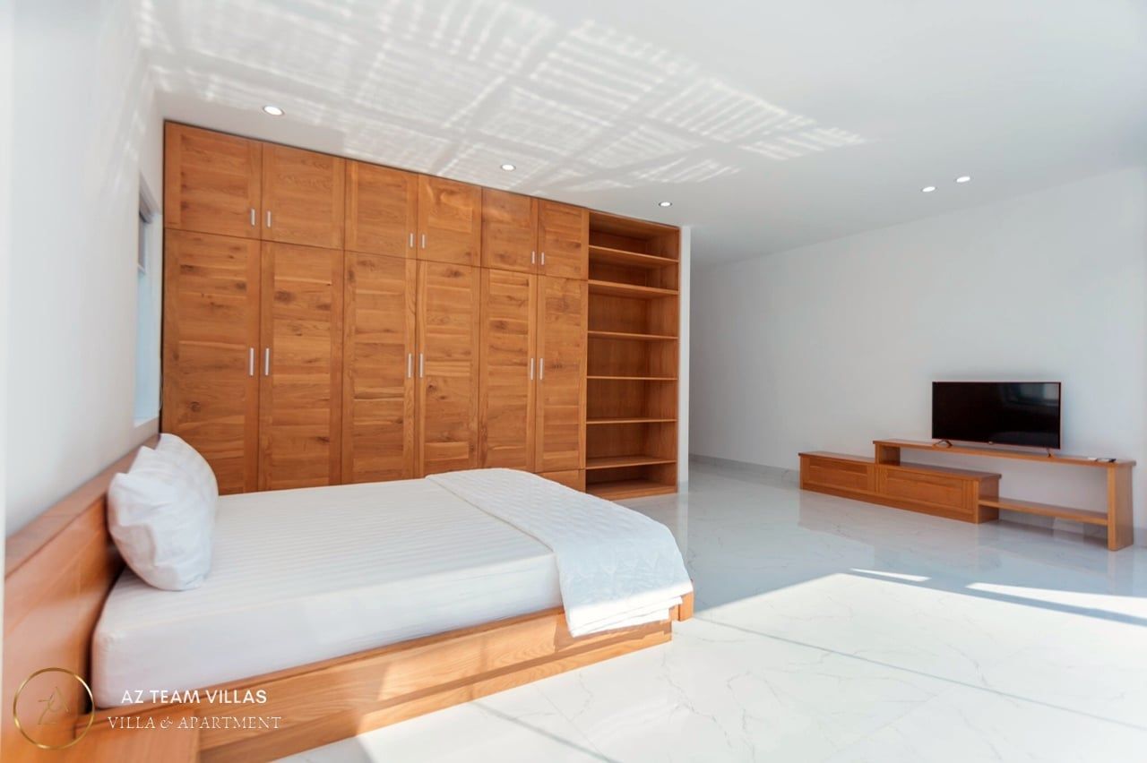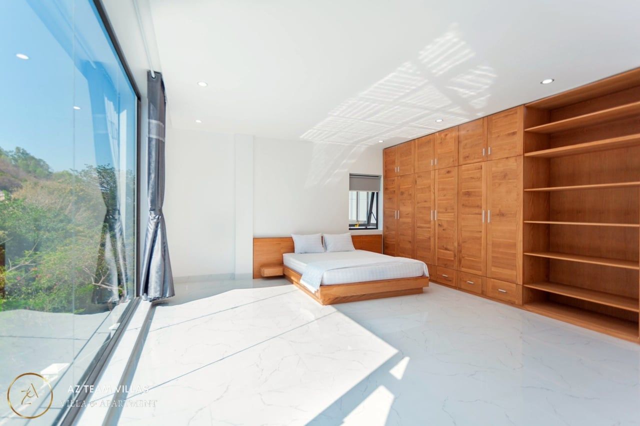 Villa gồm 5 phòng ngủ, 5 giường kích thước 1m8, 5 nệm thêm và 5 WC