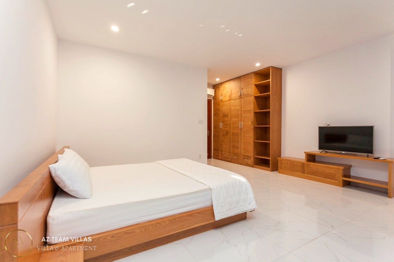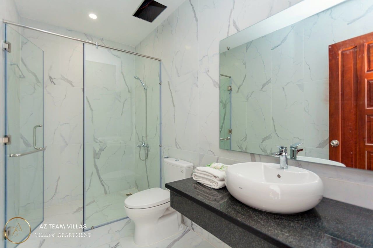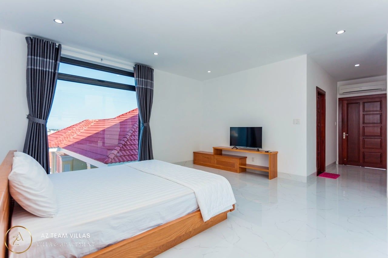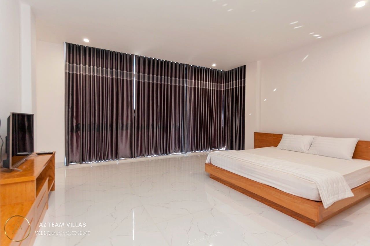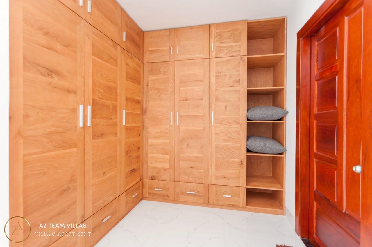 Villa gồm 5 phòng ngủ, 5 giường kích thước 1m8, 5 nệm thêm và 5 WC