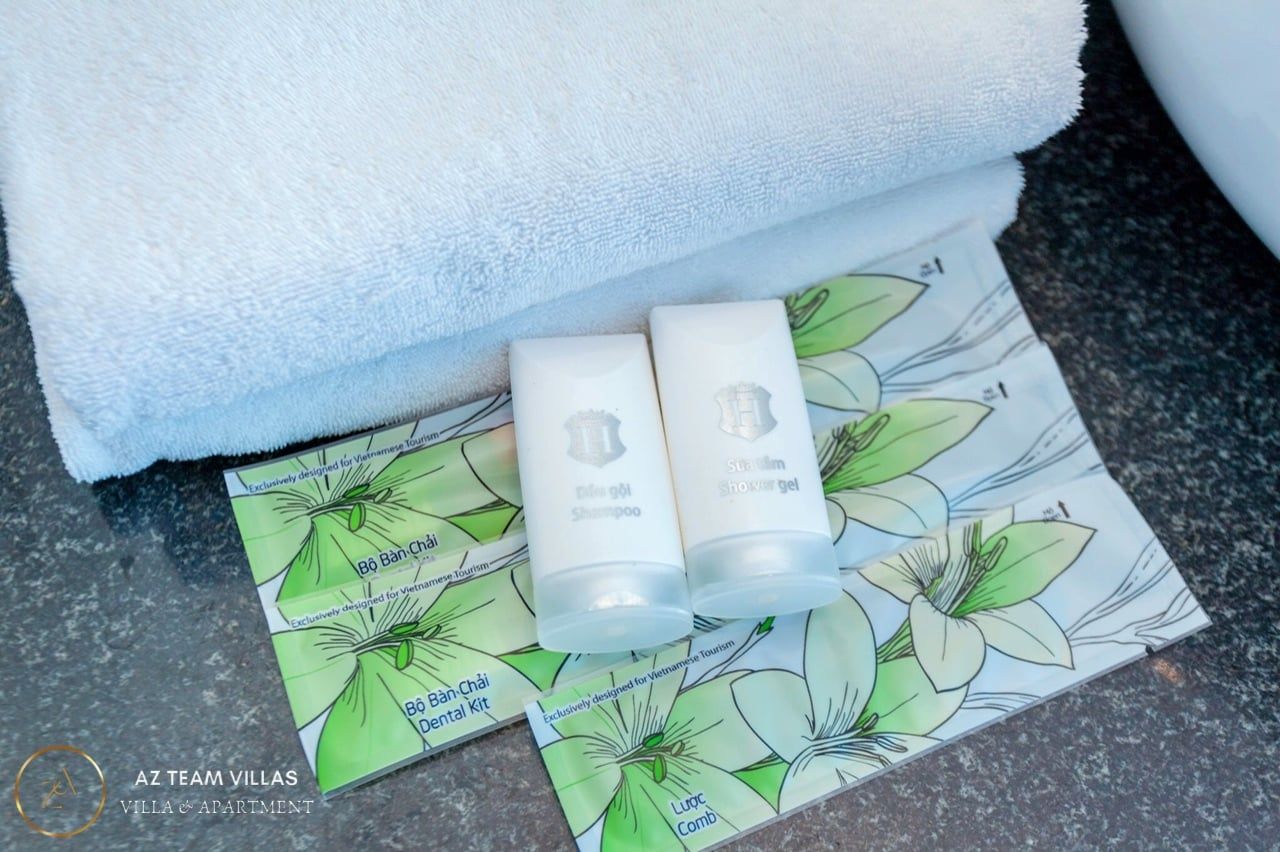 - Máy sấy tóc, khăn tắm, bài chải, lược, dầu tắm, dầu gội