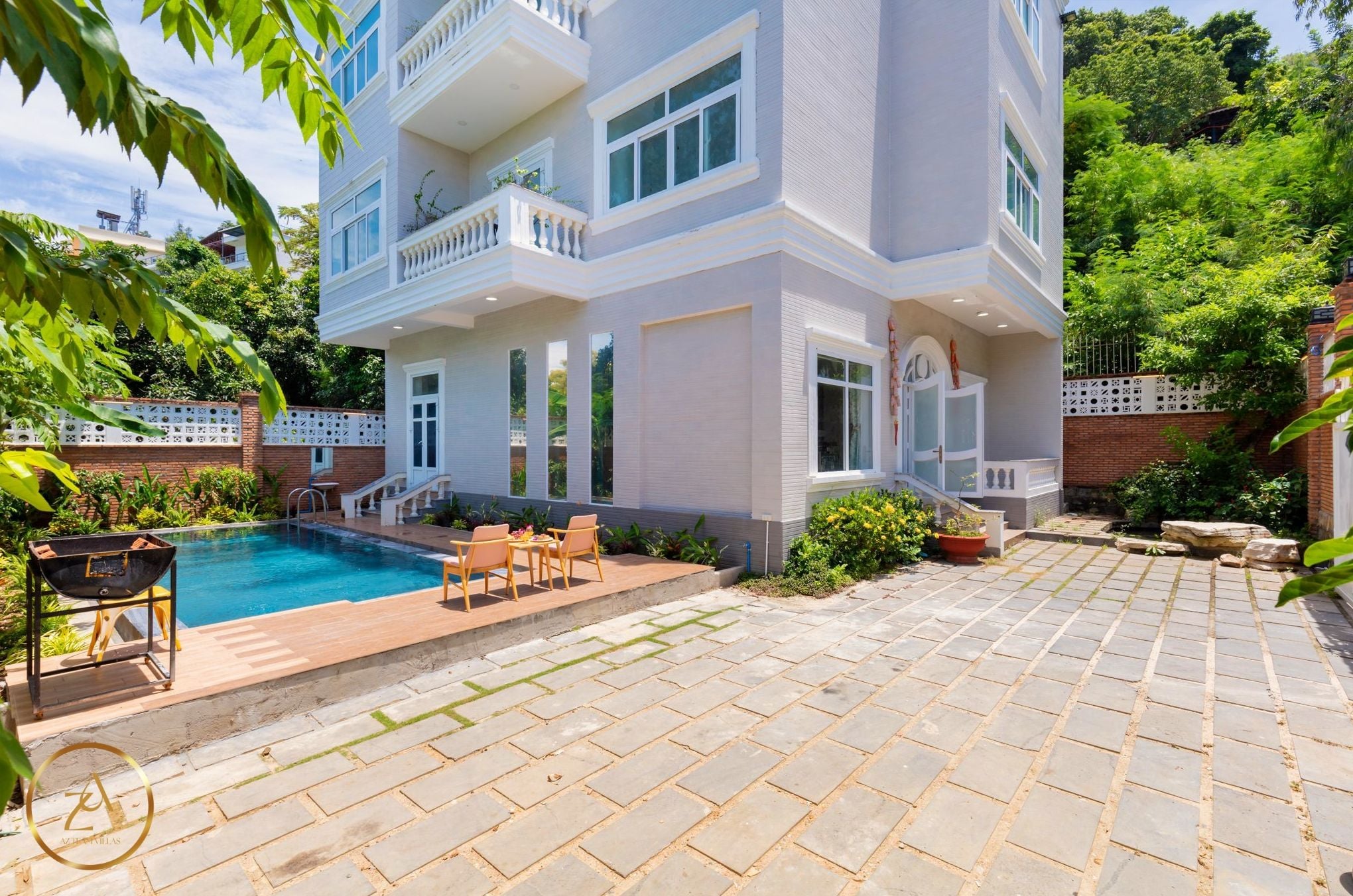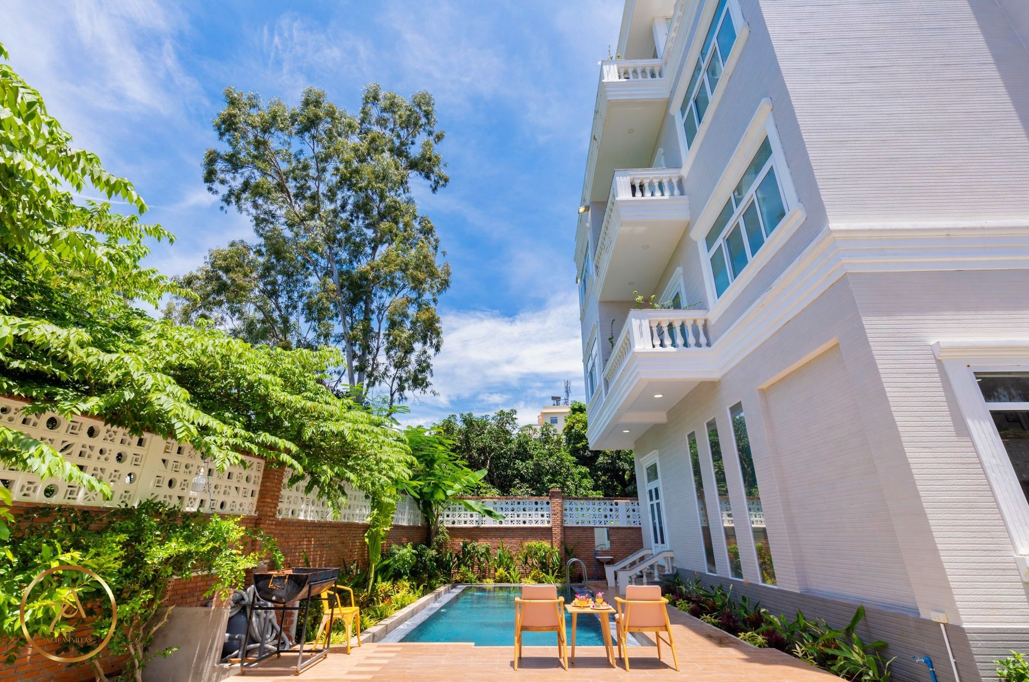 Là một biệt thự sang trọng và hiện đại, nằm ngay sát bãi biển Bãi Dâu, Vũng Tàu. Biệt thự có diện tích 450 m2, gồm 7 phòng ngủ, 8 nhà vệ sinh, phòng khách, nhà bếp và sân hiên. Mỗi phòng ngủ đều có giường đôi cực lớn, máy lạnh, tivi và phòng tắm riêng. Phòng khách rộng rãi và thoáng mát, có sofa, bàn ăn và cửa sổ lớn nhìn ra hồ bơi và biển. Nhà bếp được trang bị đầy đủ tiện nghi như tủ lạnh, bếp điện, lò vi sóng và máy pha cà phê. Sân hiên là nơi lý tưởng để thư giãn và thưởng thức không khí biển, có ghế đẩu, bàn ghế và máy nướng BBQ. Biệt thự còn có hồ bơi riêng rộng 60 m2, nằm trong khuôn viên xanh mát và yên tĩnh. Từ biệt thự, chỉ cần đi bộ vài bước là đến được bãi biển Bãi Dâu, nơi có cát trắng mịn và nước trong xanh. Đây là sự lựa chọn hoàn hảo cho những ai muốn tận hưởng kỳ nghỉ sang trọng và thoải mái tại Vũng Tàu.