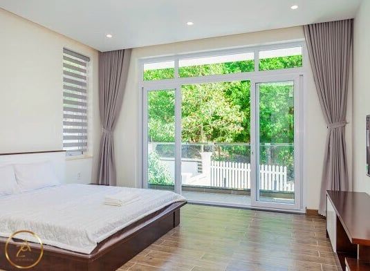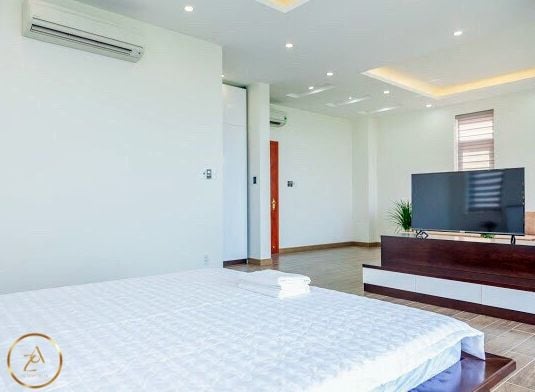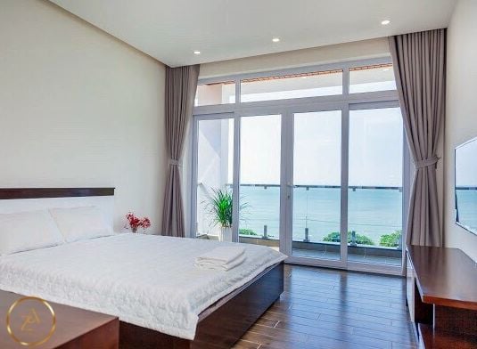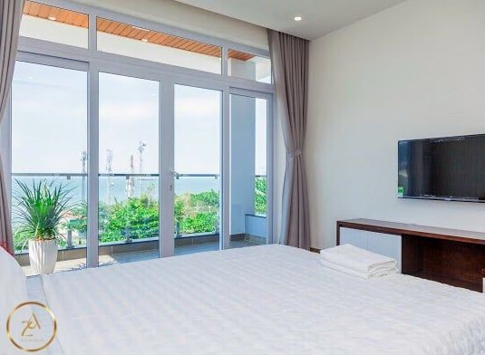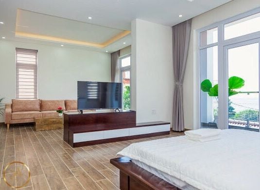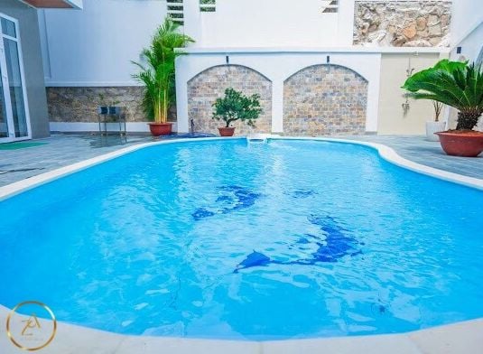 Là một biệt thự sang trọng và hiện đại, nằm ngay sát bãi biển Bãi Dâu, Vũng Tàu. Biệt thự có diện tích 350 m2, gồm 6 phòng ngủ, 8 nhà vệ sinh, phòng khách, nhà bếp và sân hiên. Mỗi phòng ngủ đều có giường đôi cực lớn, máy lạnh, tivi và phòng tắm riêng. Phòng khách rộng rãi và thoáng mát, có sofa, bàn ăn và cửa sổ lớn nhìn ra hồ bơi và biển. Nhà bếp được trang bị đầy đủ tiện nghi như tủ lạnh, bếp điện, lò vi sóng và máy pha cà phê. Sân hiên là nơi lý tưởng để thư giãn và thưởng thức không khí biển, có ghế đẩu, bàn ghế và máy nướng BBQ. Biệt thự còn có hồ bơi riêng rộng 50 m2, nằm trong khuôn viên xanh mát và yên tĩnh. Từ biệt thự, chỉ cần đi bộ vài bước là đến được bãi biển Bãi Dâu, nơi có cát trắng mịn và nước trong xanh. Đây là sự lựa chọn hoàn hảo cho những ai muốn tận hưởng kỳ nghỉ sang trọng và thoải mái tại Vũng Tàu.