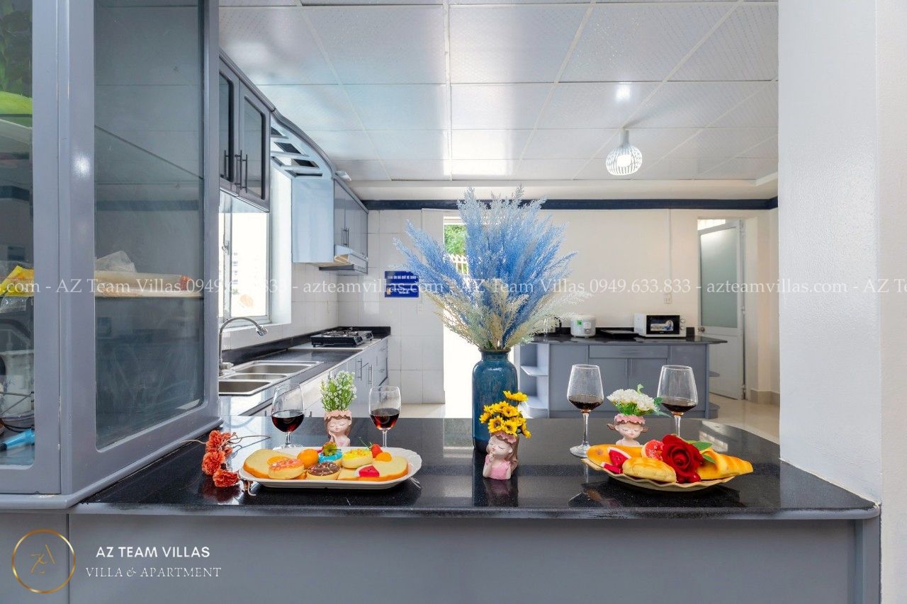 - Bếp cung cấp đầy đủ dụng cụ nấu ăn: lò vi sóng, lò nướng, nồi cơm điện, ấm đun nước điện, tủ lạnh, bát đĩa
