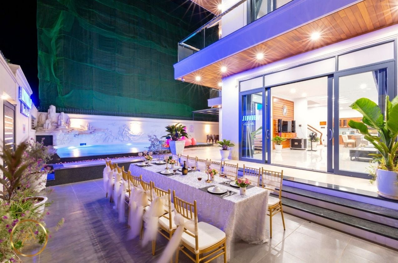 Biệt thự của chúng tôi có vị trí đắc địa, gần bãi biển lONG CUNG. Biệt thự có diện tích 500m2, thiết kế sang trọng, nội thất cao cấp. Biệt thự có 9 phòng ngủ đẹp và hiện đại, mỗi phòng có phòng tắm riêng. Bếp rộng lớn, đầy đủ dụng cụ nấu ăn. Hồ bơi sạch sẽ và không gian vui chơi thoáng mát. Sân rộng, thích hợp tổ chức tiệc BBQ.