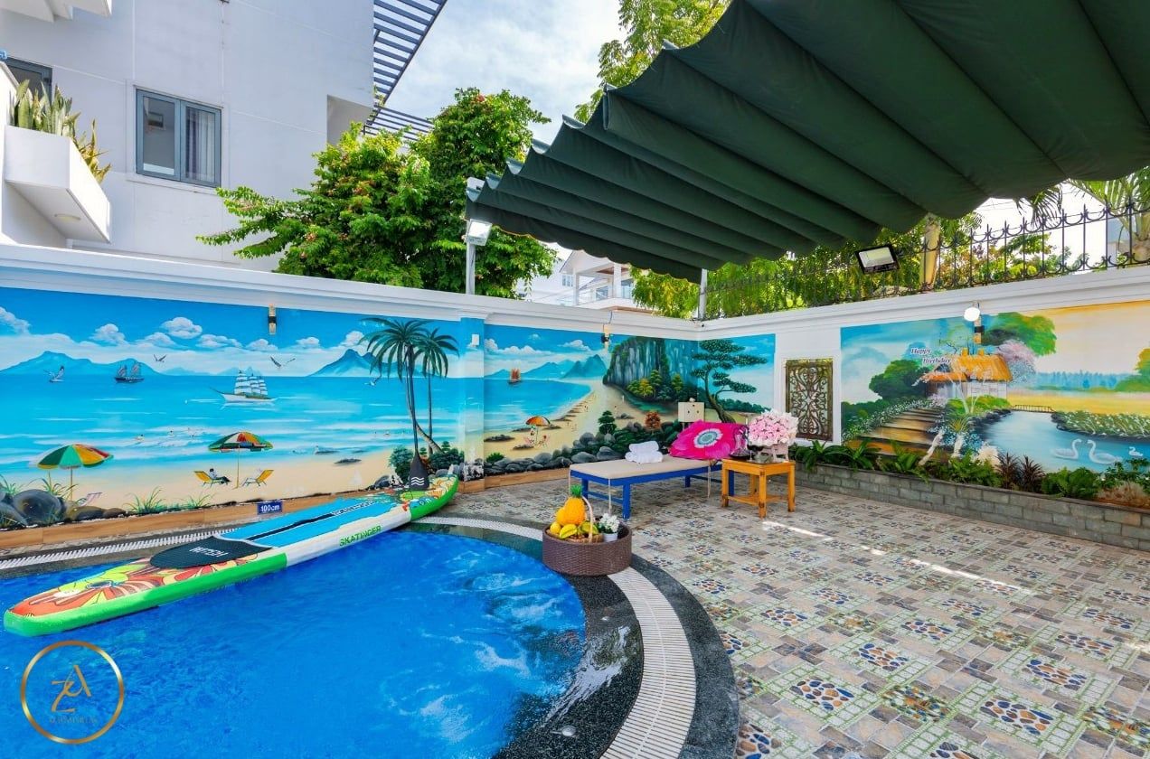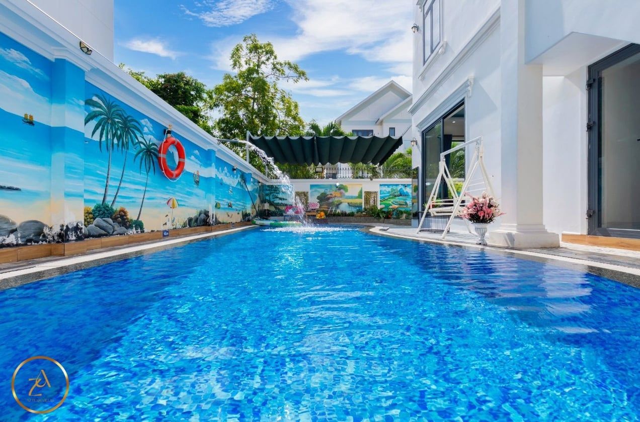 - Hồ bơi rộng 35m2 và không gian vui chơi thoáng mát