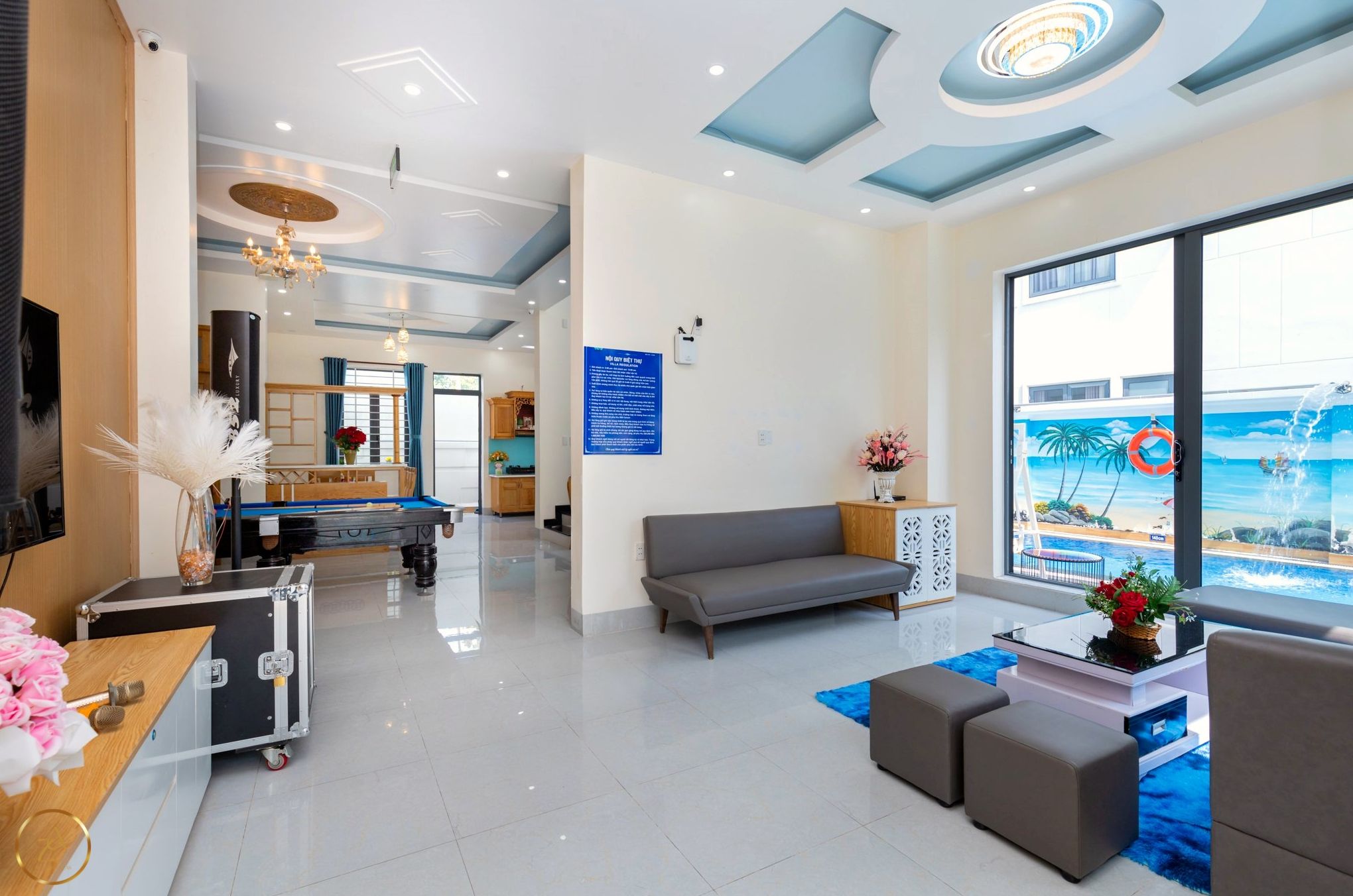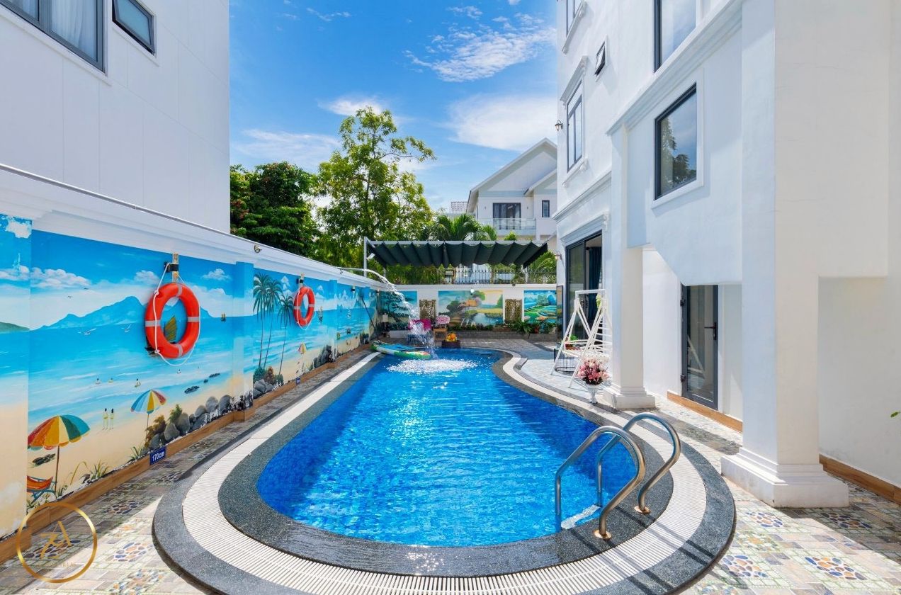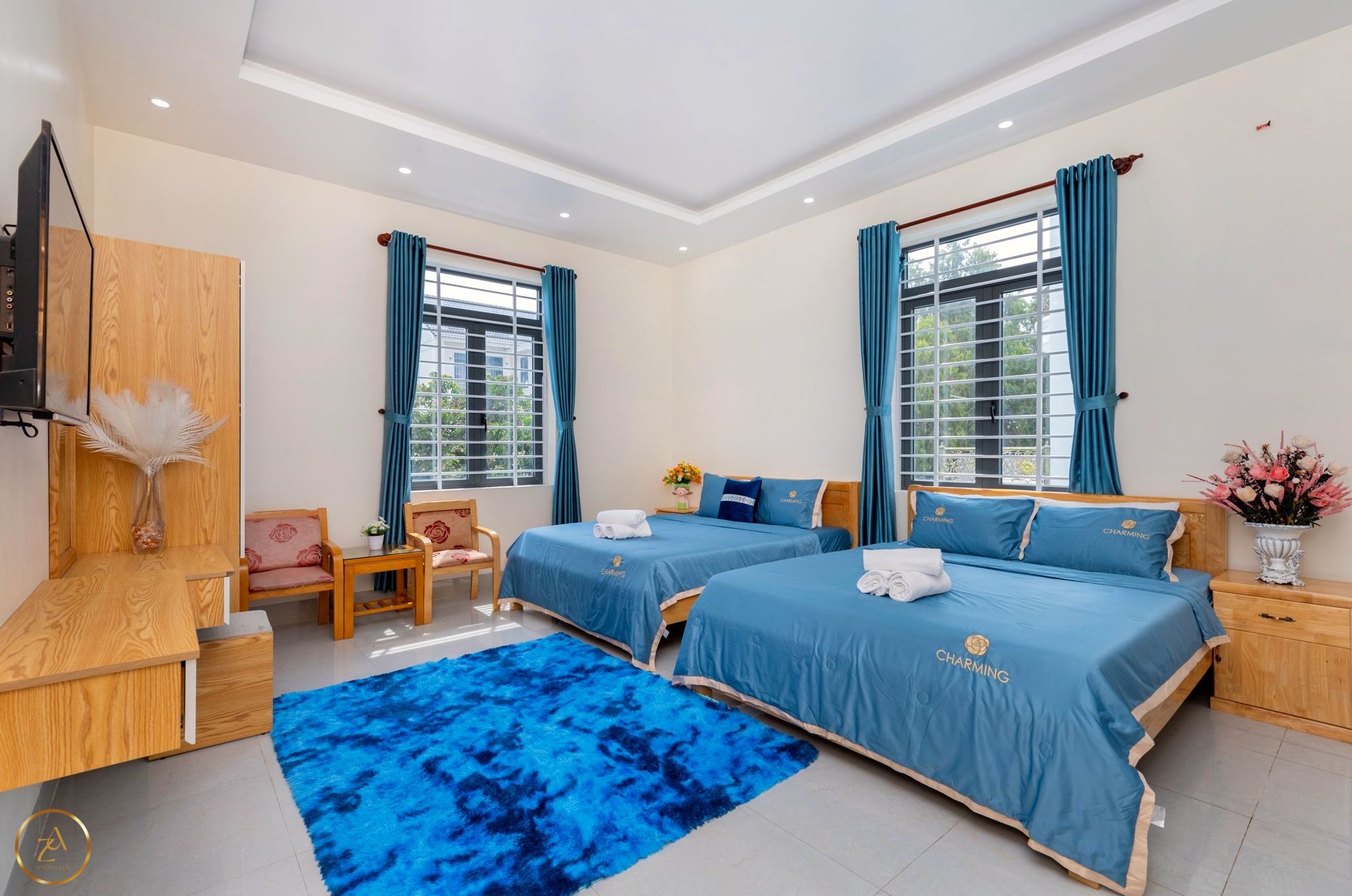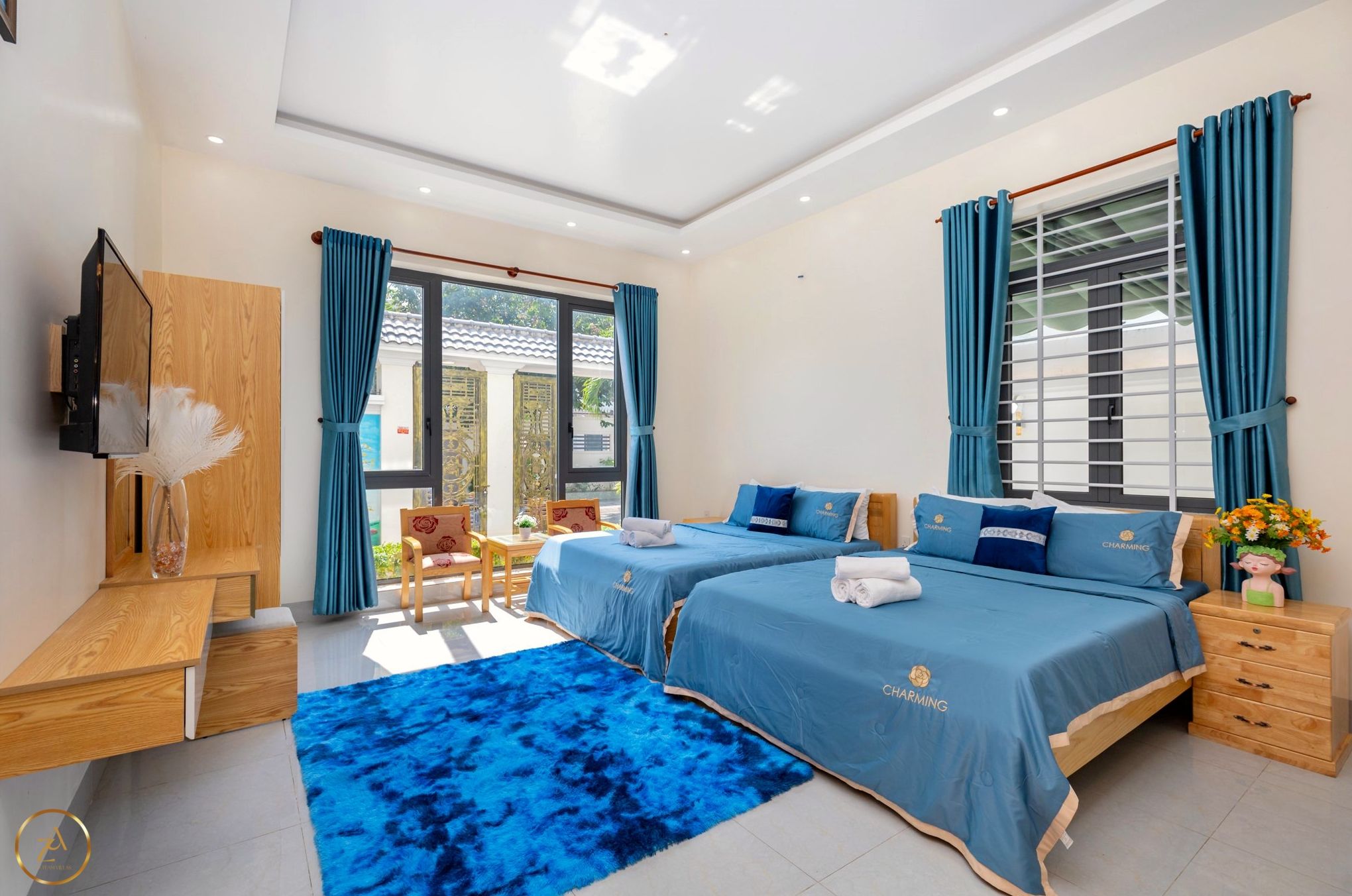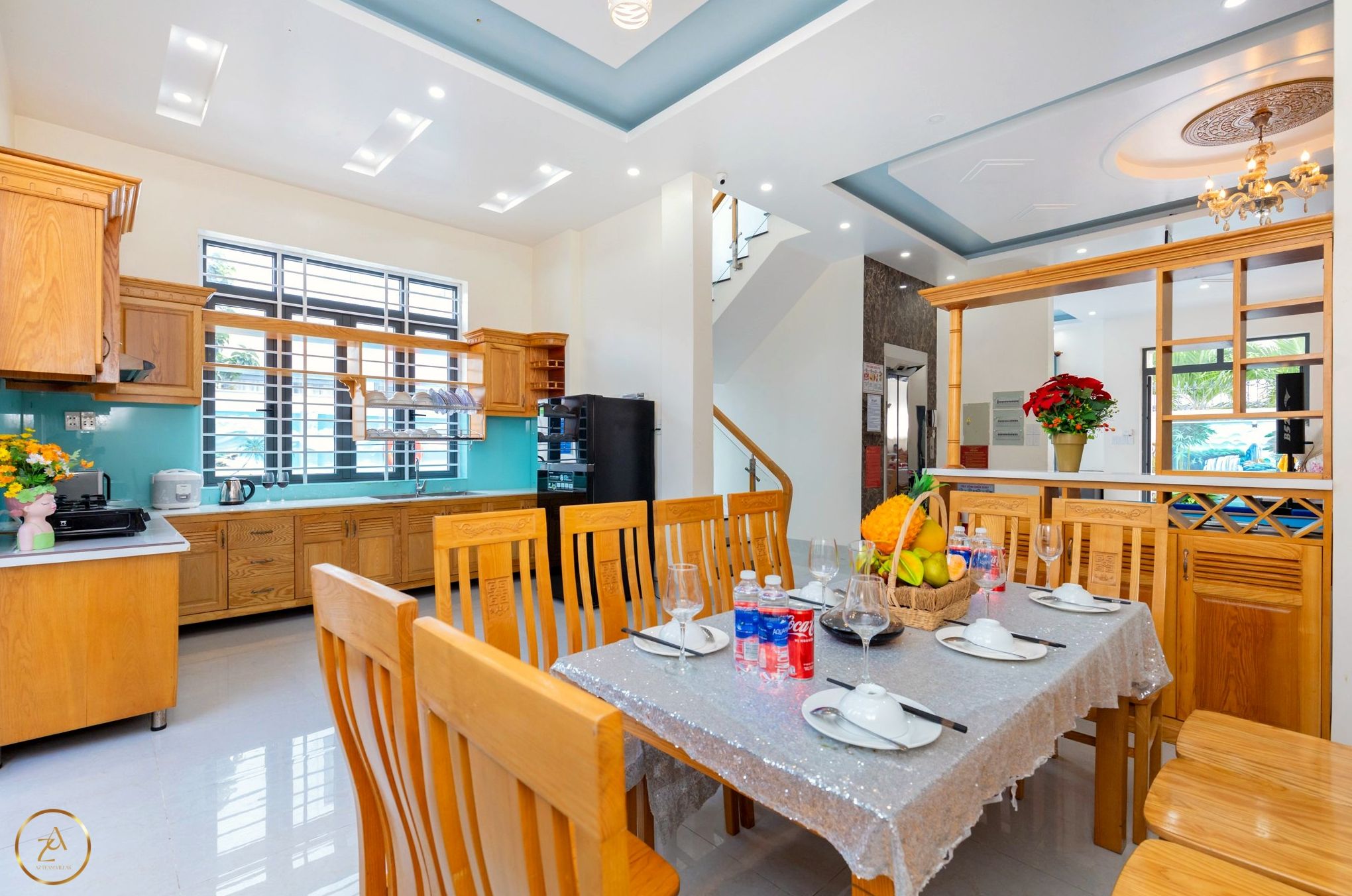 Biệt thự của chúng tôi có vị trí đắc địa, gần bãi biển LONG CUNG - THỦY TIÊN. Biệt thự có diện tích 500m2, thiết kế sang trọng, nội thất cao cấp. Biệt thự có 11 phòng ngủ đẹp và hiện đại, mỗi phòng có phòng tắm riêng. Bếp rộng lớn, đầy đủ dụng cụ nấu ăn. Hồ bơi sạch sẽ và không gian vui chơi thoáng mát. Sân rộng, thích hợp tổ chức tiệc BBQ.