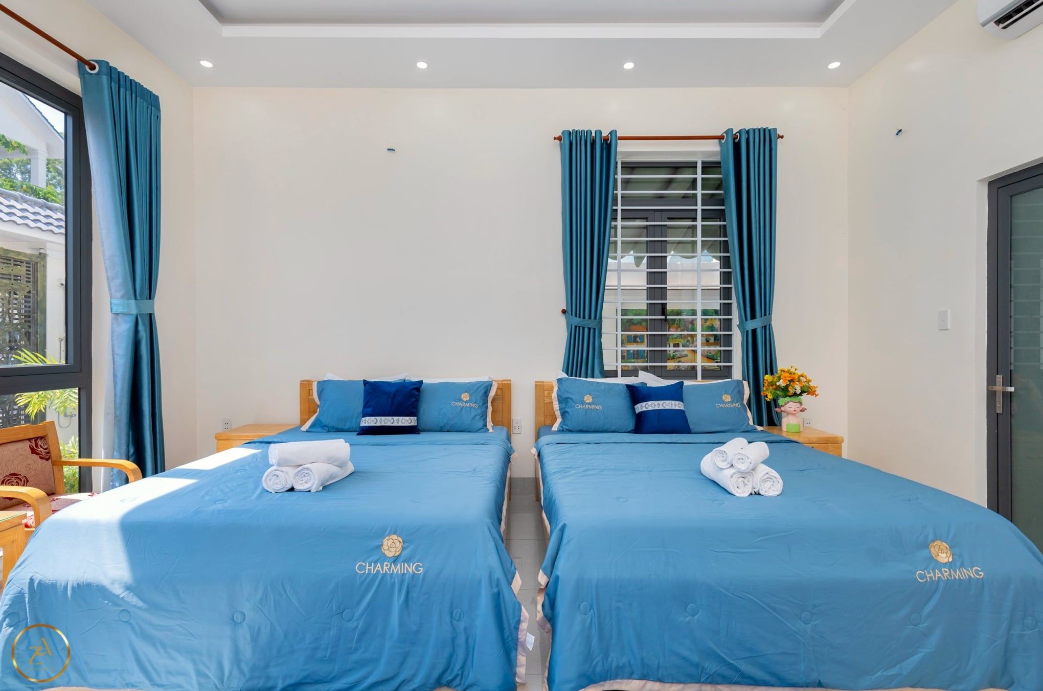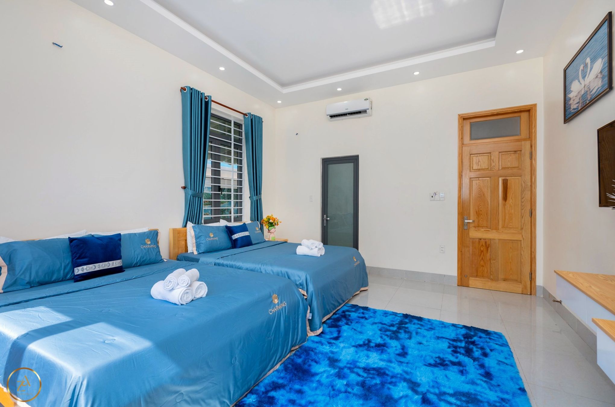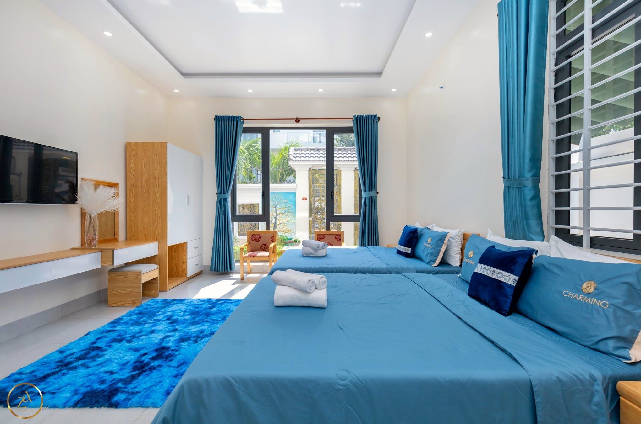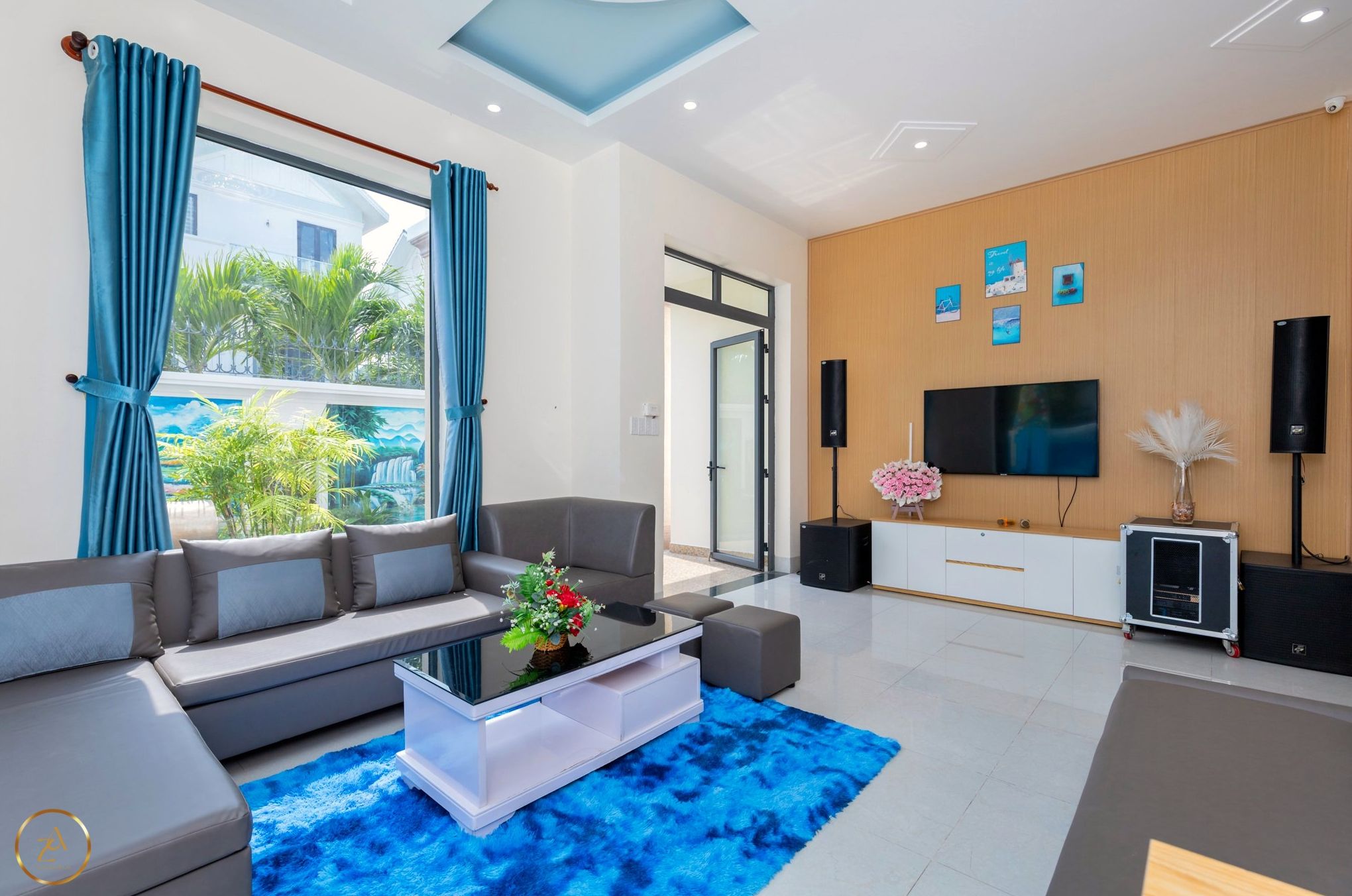 Biệt thự của chúng tôi có vị trí đắc địa, gần bãi biển LONG CUNG - THỦY TIÊN. Biệt thự có diện tích 500m2, thiết kế sang trọng, nội thất cao cấp. Biệt thự có 11 phòng ngủ đẹp và hiện đại, mỗi phòng có phòng tắm riêng. Bếp rộng lớn, đầy đủ dụng cụ nấu ăn. Hồ bơi sạch sẽ và không gian vui chơi thoáng mát. Sân rộng, thích hợp tổ chức tiệc BBQ.