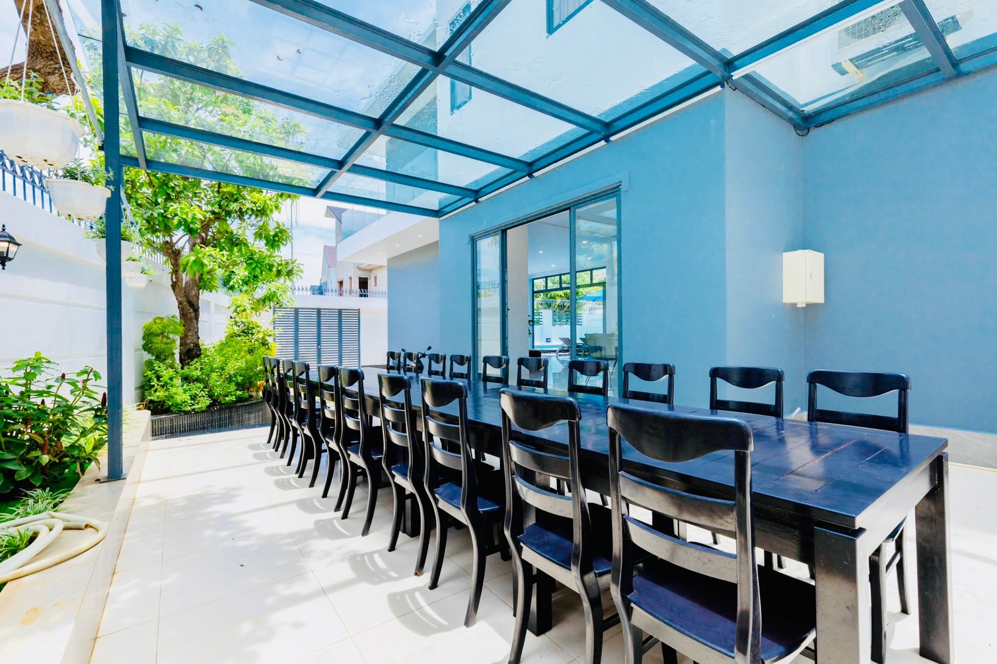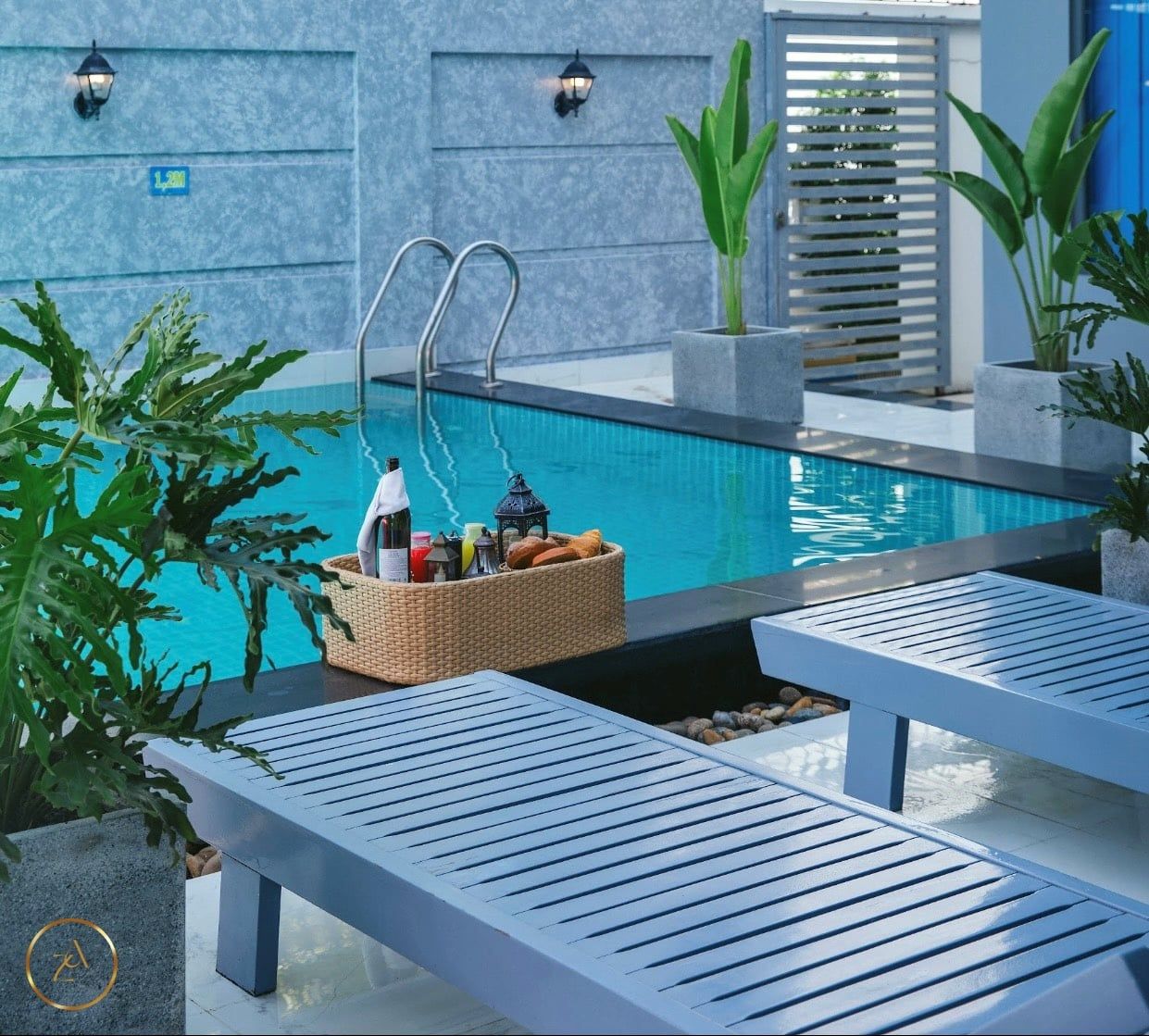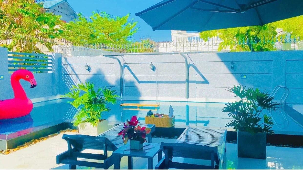 - Hồ bơi và sân vườn ngoài trời rộng rãi, thoáng mát đáp ứng nhu cầu tổ chức tiệc BBQ và các hoạt động sinh hoạt ngoài trời.