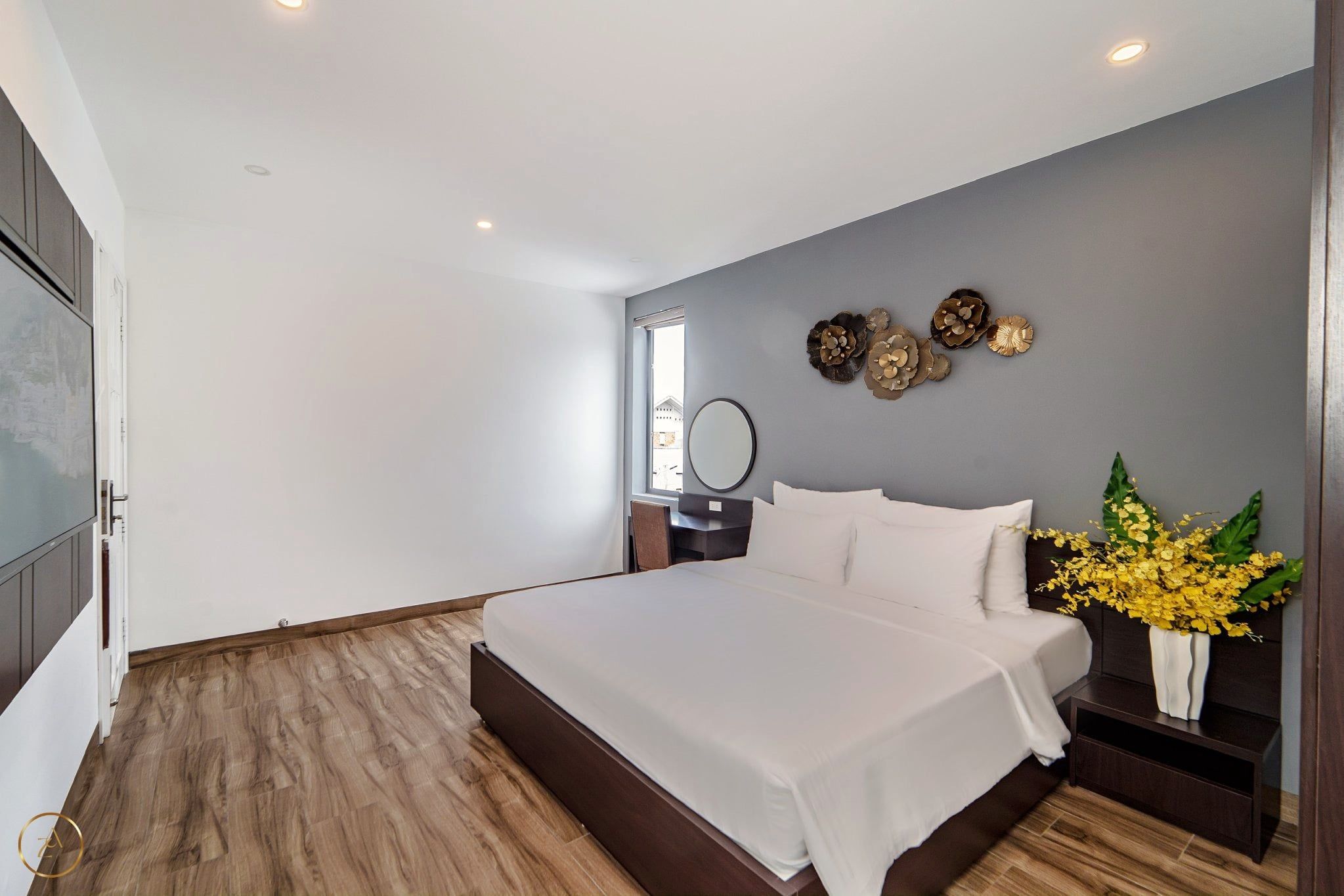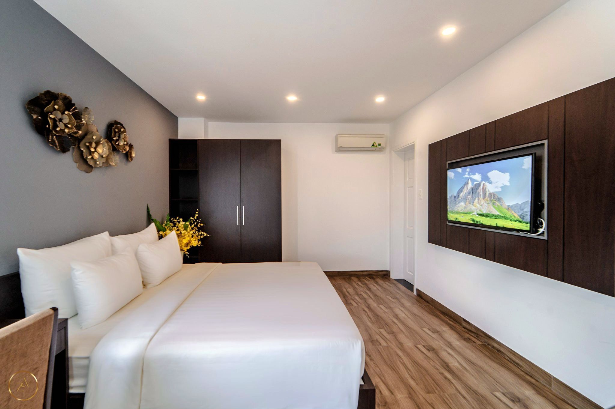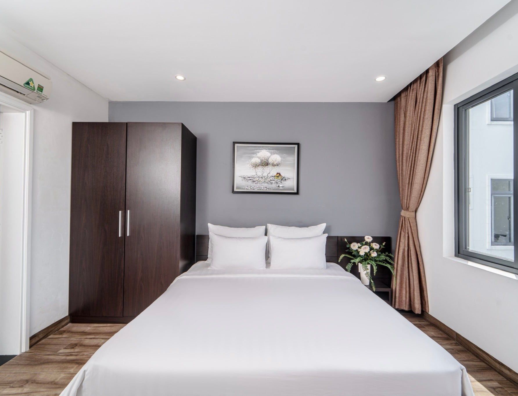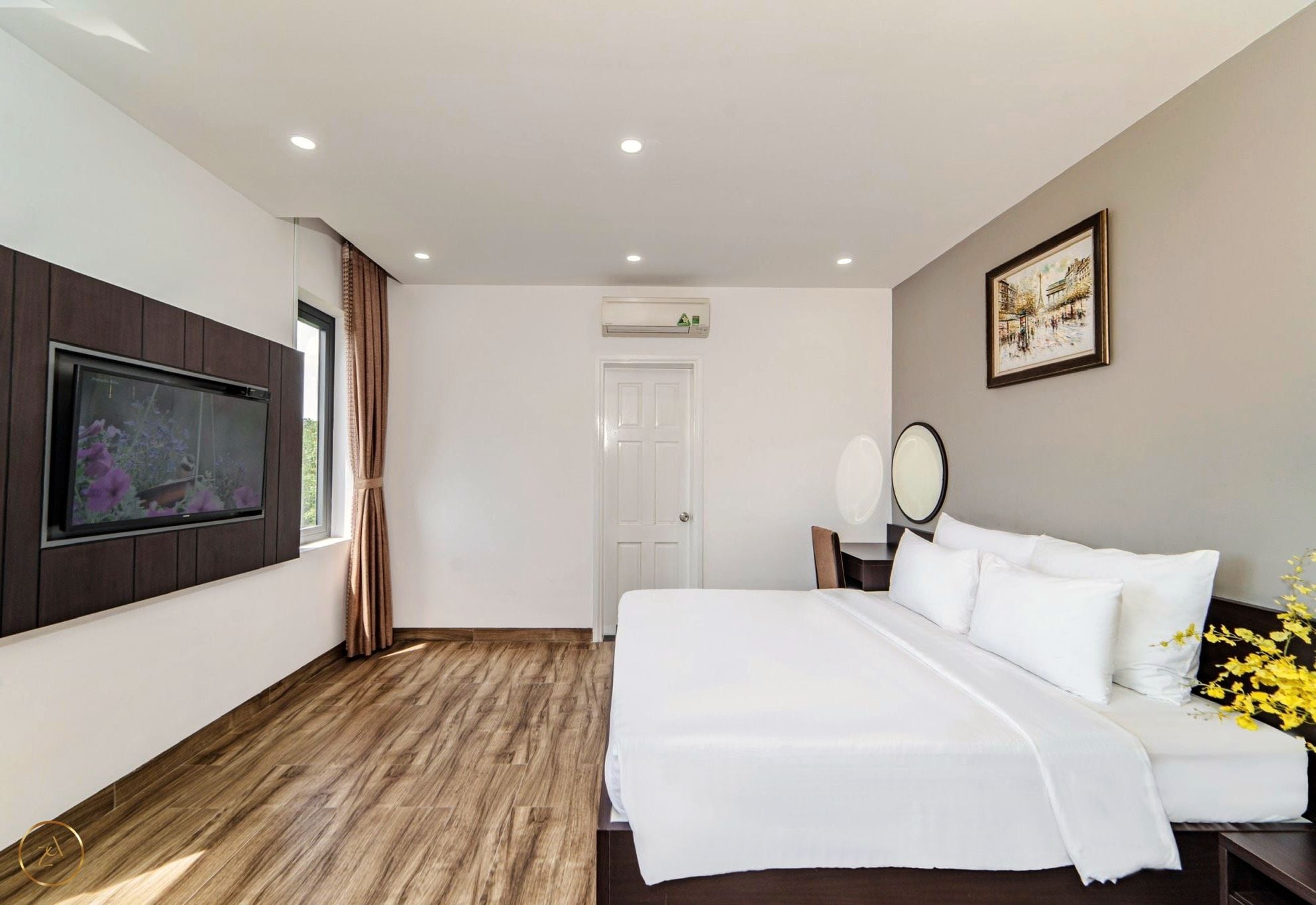 - Chăn ga gối mền lông vũ tiêu chuẩn 5 sao, thay mới mỗi lần khách trả phòng.