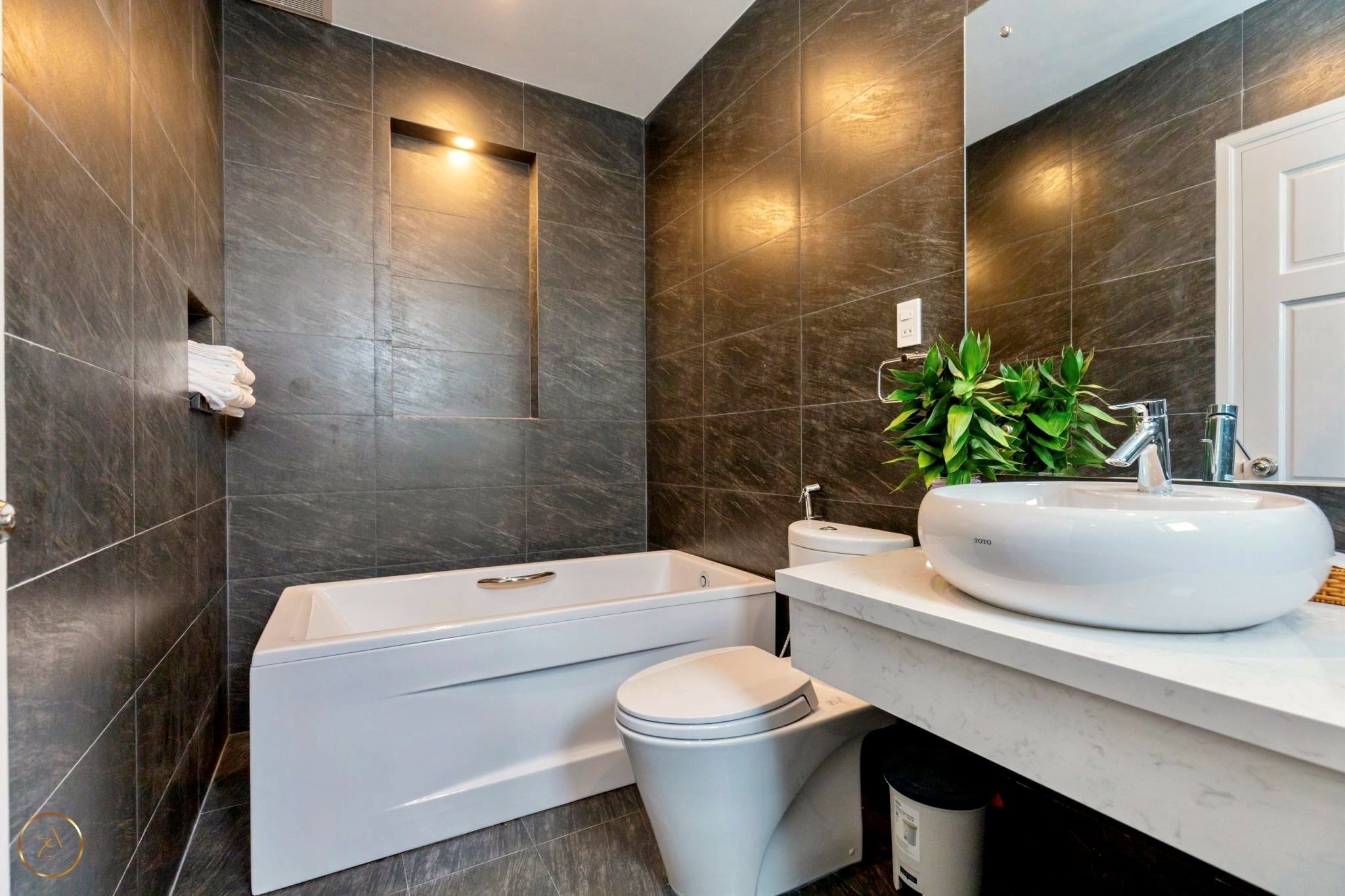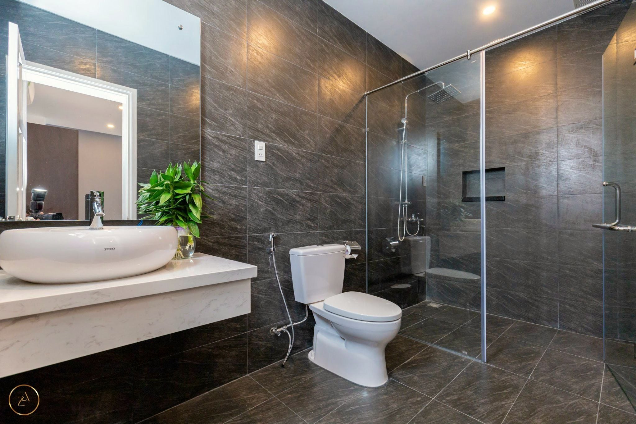 - Dầu gội, sữa tắm, khăn tắm, bàn chải đánh răng, bàn ủi, máy sấy tóc, dép đi trong nhà đều có.