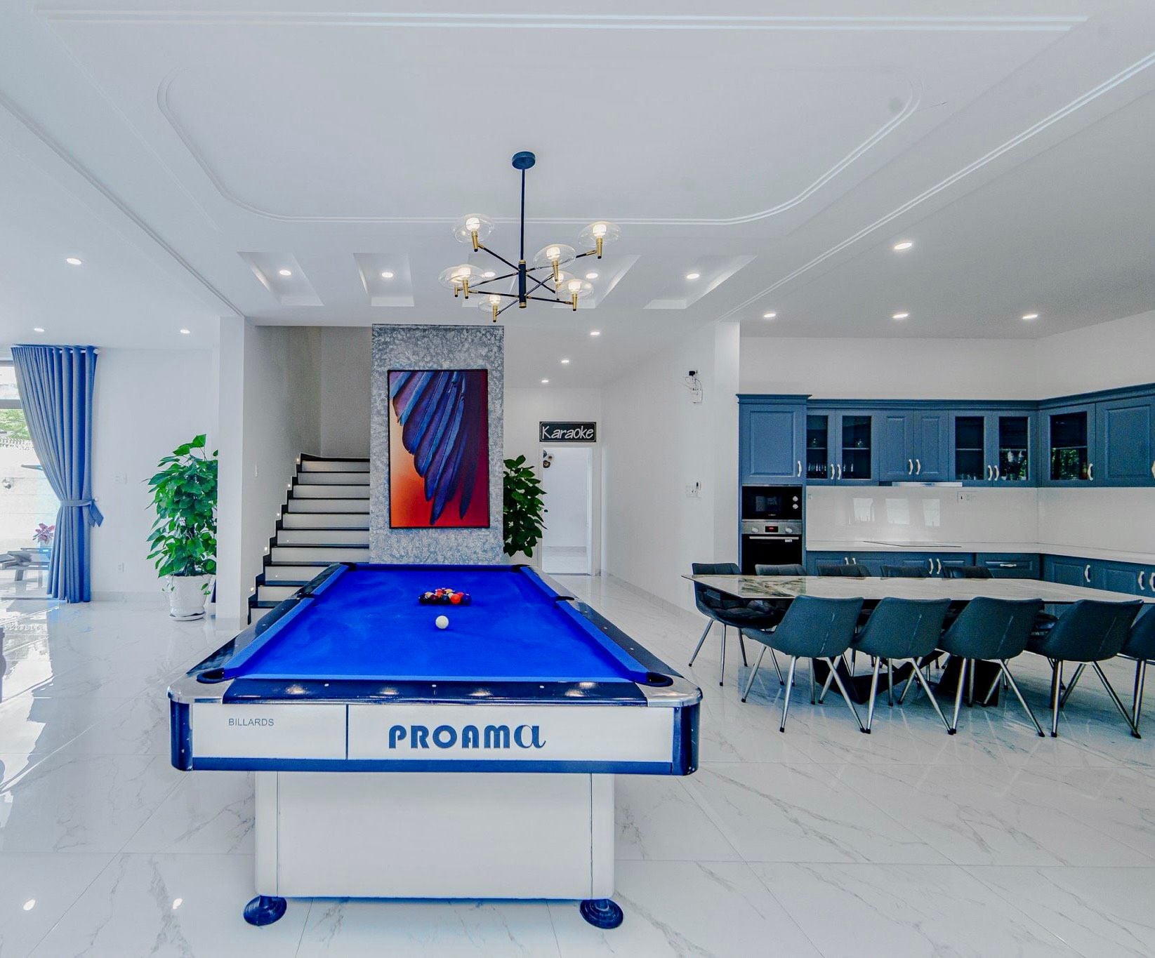 Villa với thiết kế tinh tế, hiện đại với 8 phòng ngủ phù hợp cho đoàn 15 - 30 khách. Villa nằm ở vị trí khu vực tổ hợp Villa Long Cung, gần bãi biển nên phù hợp để tổ chức team building, tiệc gia đình. Villa trang bị đầy đủ dụng cụ bếp, hồ bơi, hồ Jacuzzi, lò nướng BBQ để phục vụ quý khách