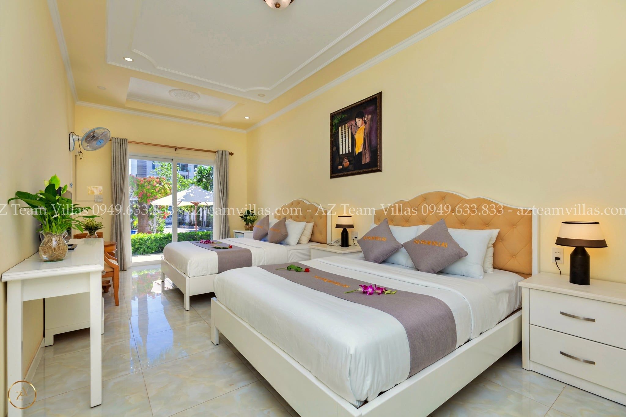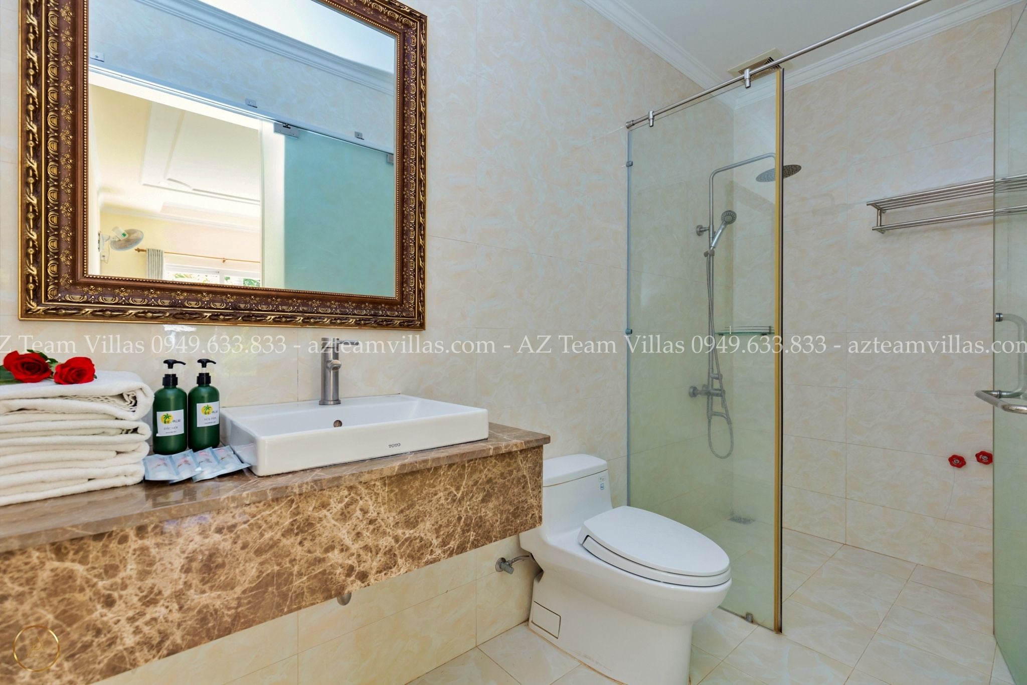 Villa gồm 10 phòng ngủ, 13 giường kích thước 1m8 và 11 WC (10 wc trong phòng ngủ, 1 wc tại phòng Khách)"