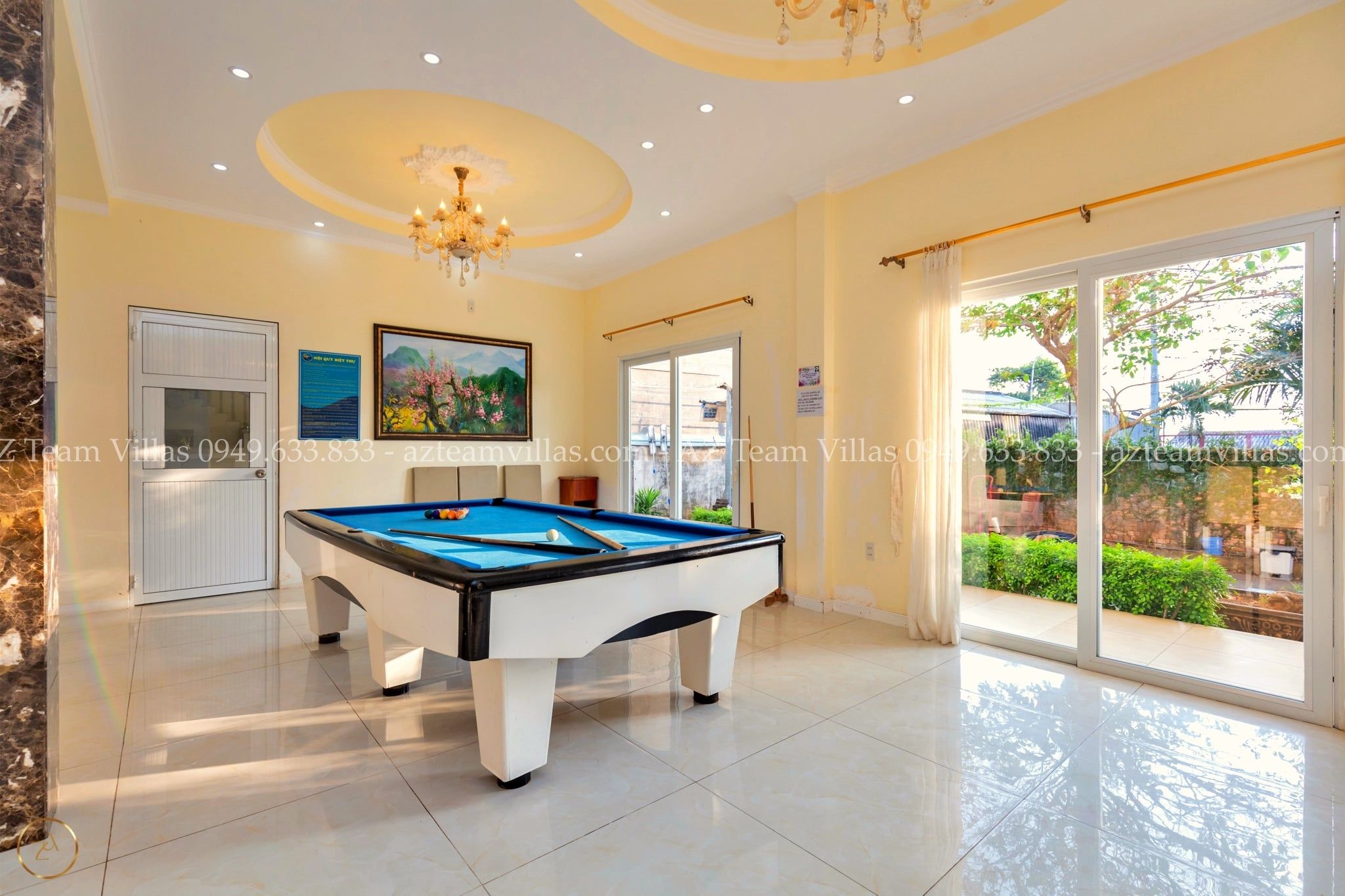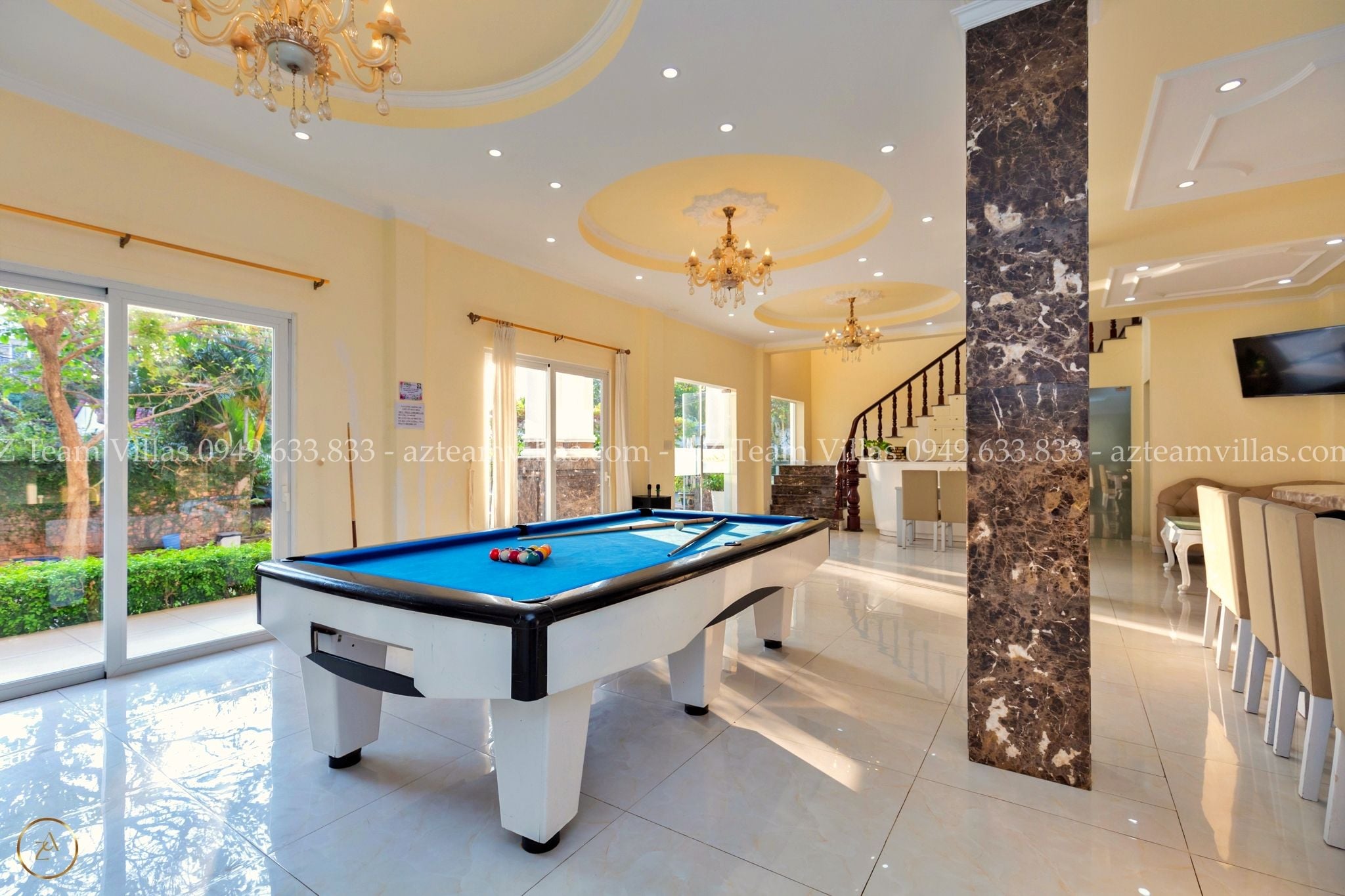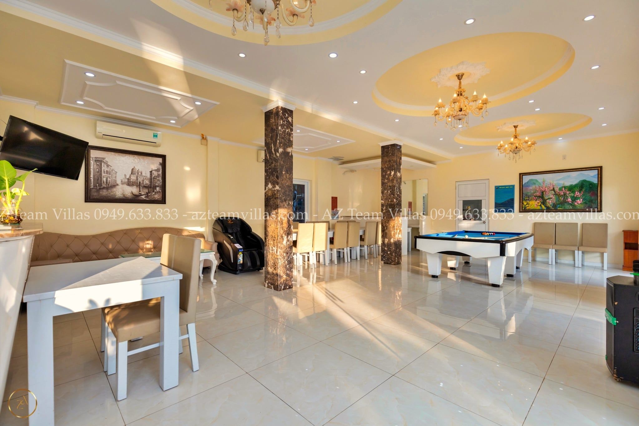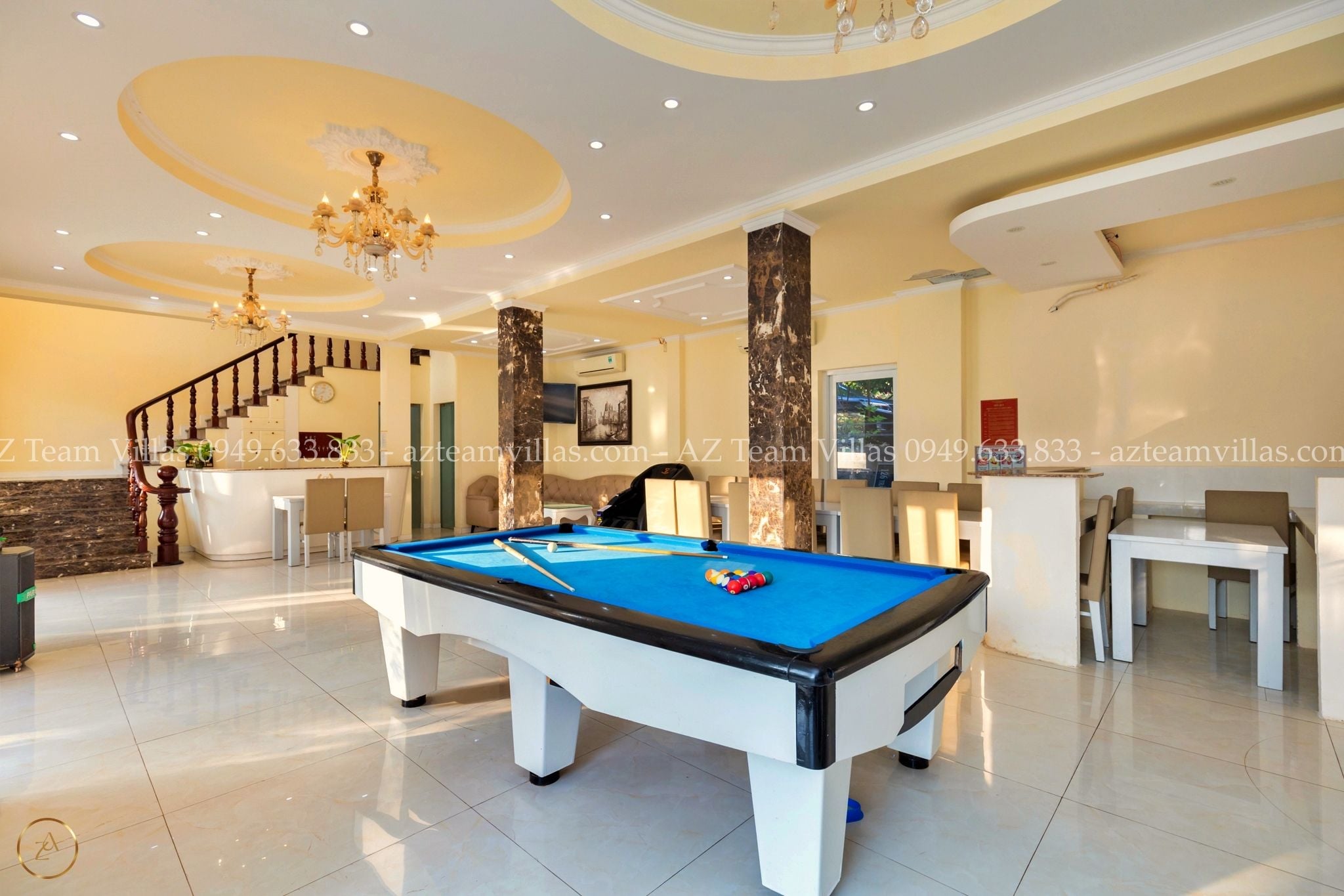 Là một ‘lâu đài’ với 10 phòng ngủ và 13 giường, Villa có sức chứa lên đến 50 khách, thích hợp cho đoàn khách đông. Ngoài hồ bơi ngoài trời, biệt thự còn được trang bị bàn bi-da để đáp ứng nhu cầu giải trí của quý khách. Đặc biệt, biệt thự có quán cà phê cạnh hồ bơi (có tính phí), và khuôn viên cực rộng để tổ chức tiệc ngoài trời.