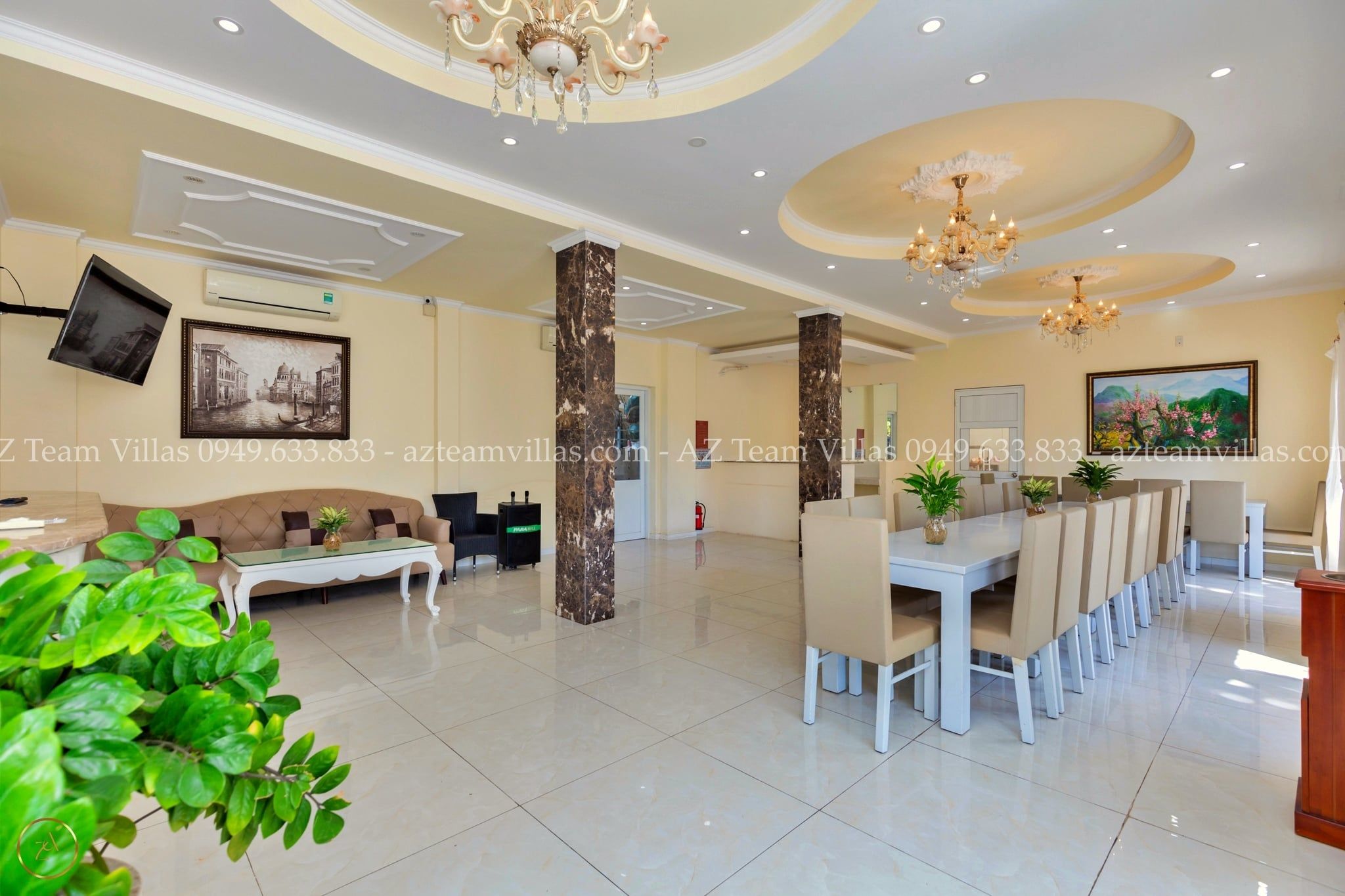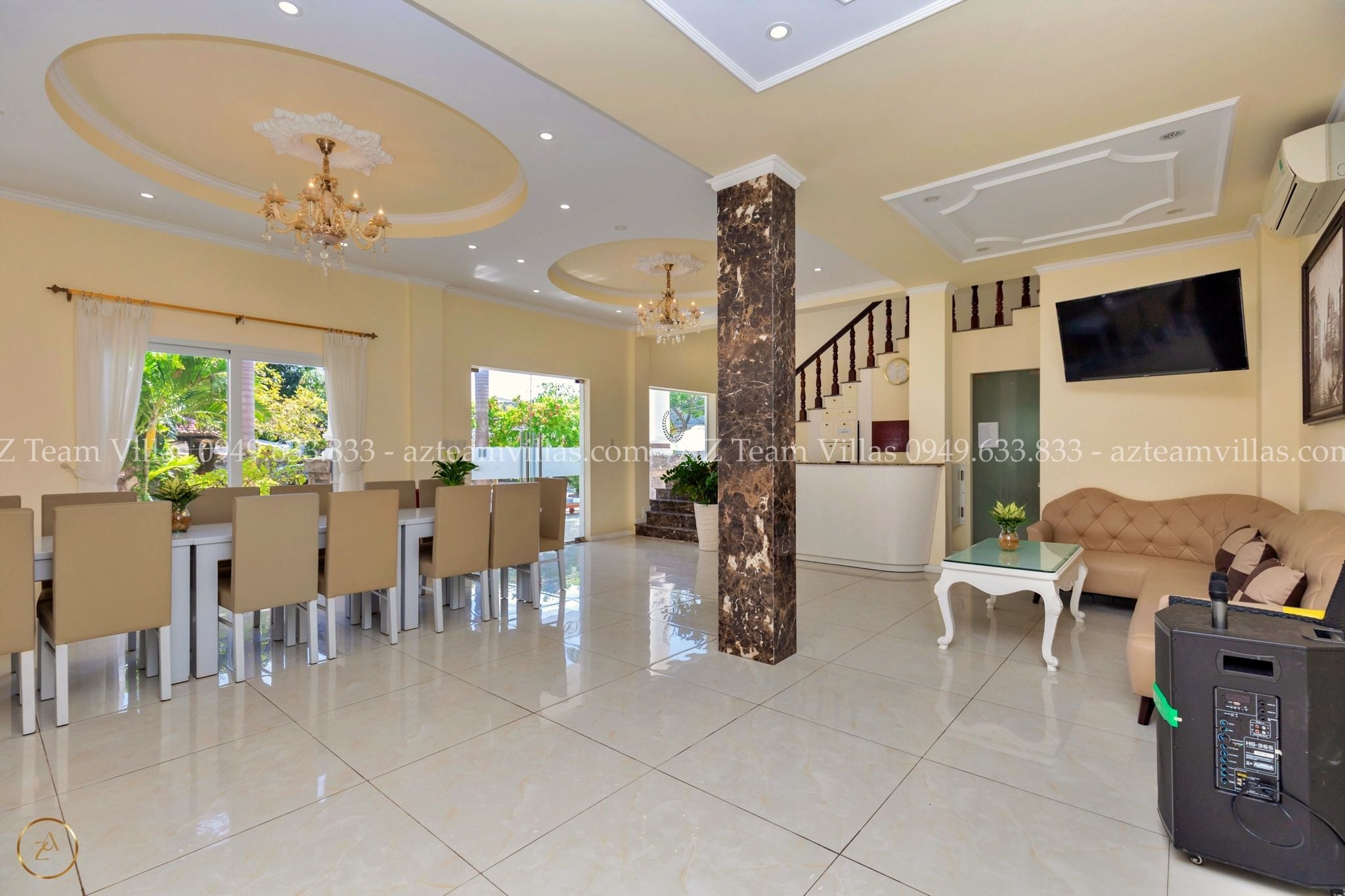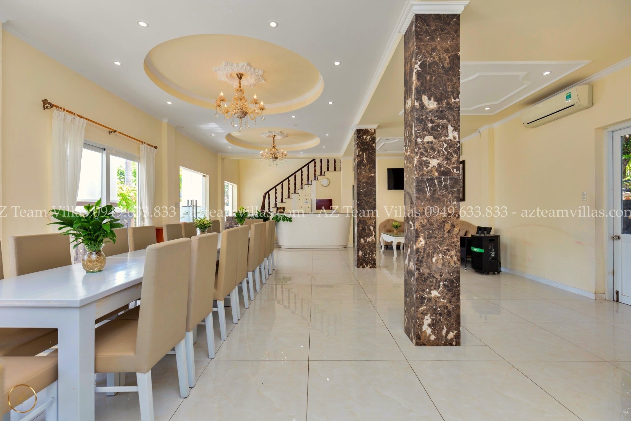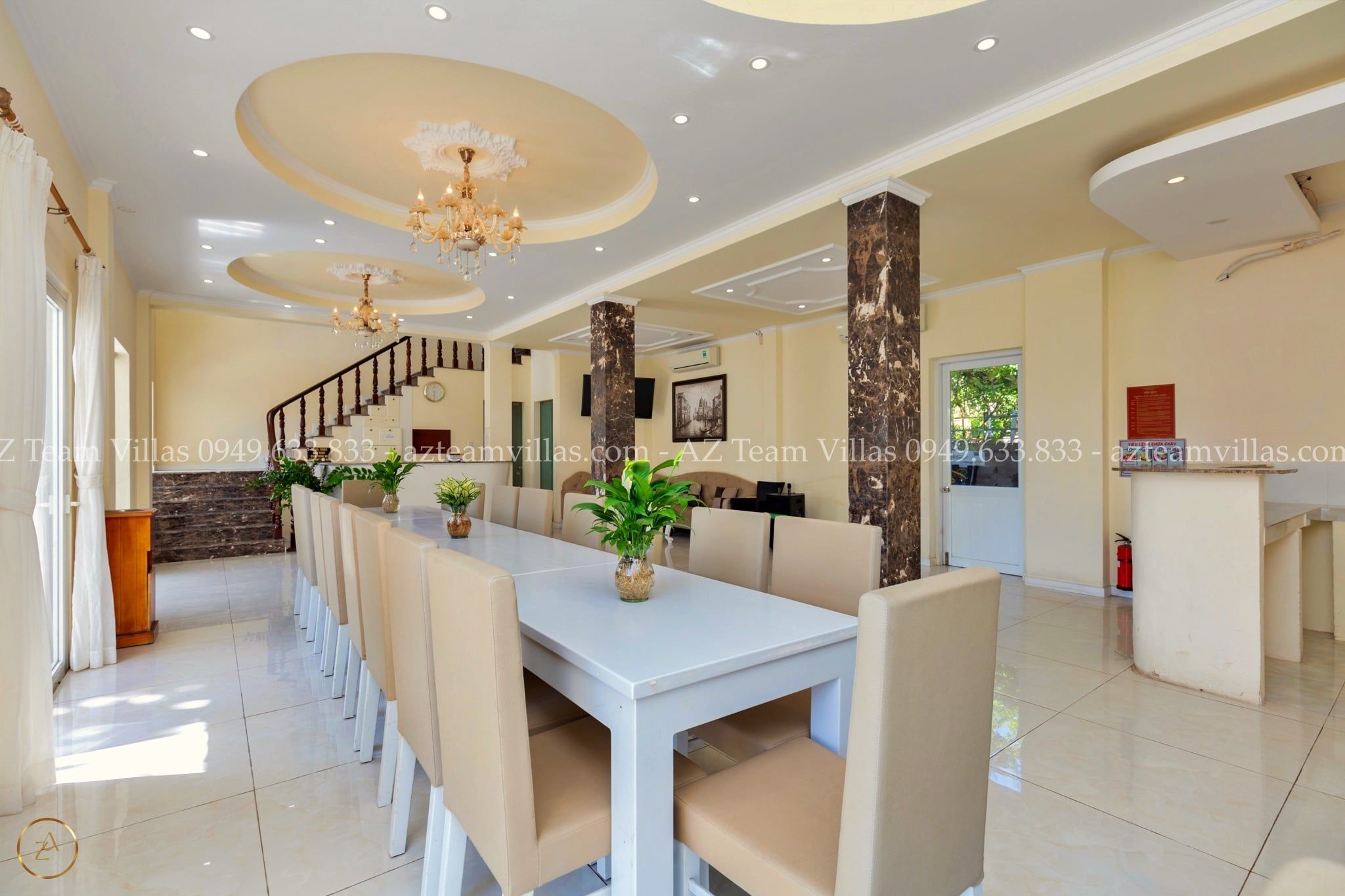 Là một ‘lâu đài’ với 10 phòng ngủ và 13 giường, Villa có sức chứa lên đến 50 khách, thích hợp cho đoàn khách đông. Ngoài hồ bơi ngoài trời, biệt thự còn được trang bị bàn bi-da để đáp ứng nhu cầu giải trí của quý khách. Đặc biệt, biệt thự có quán cà phê cạnh hồ bơi (có tính phí), và khuôn viên cực rộng để tổ chức tiệc ngoài trời.