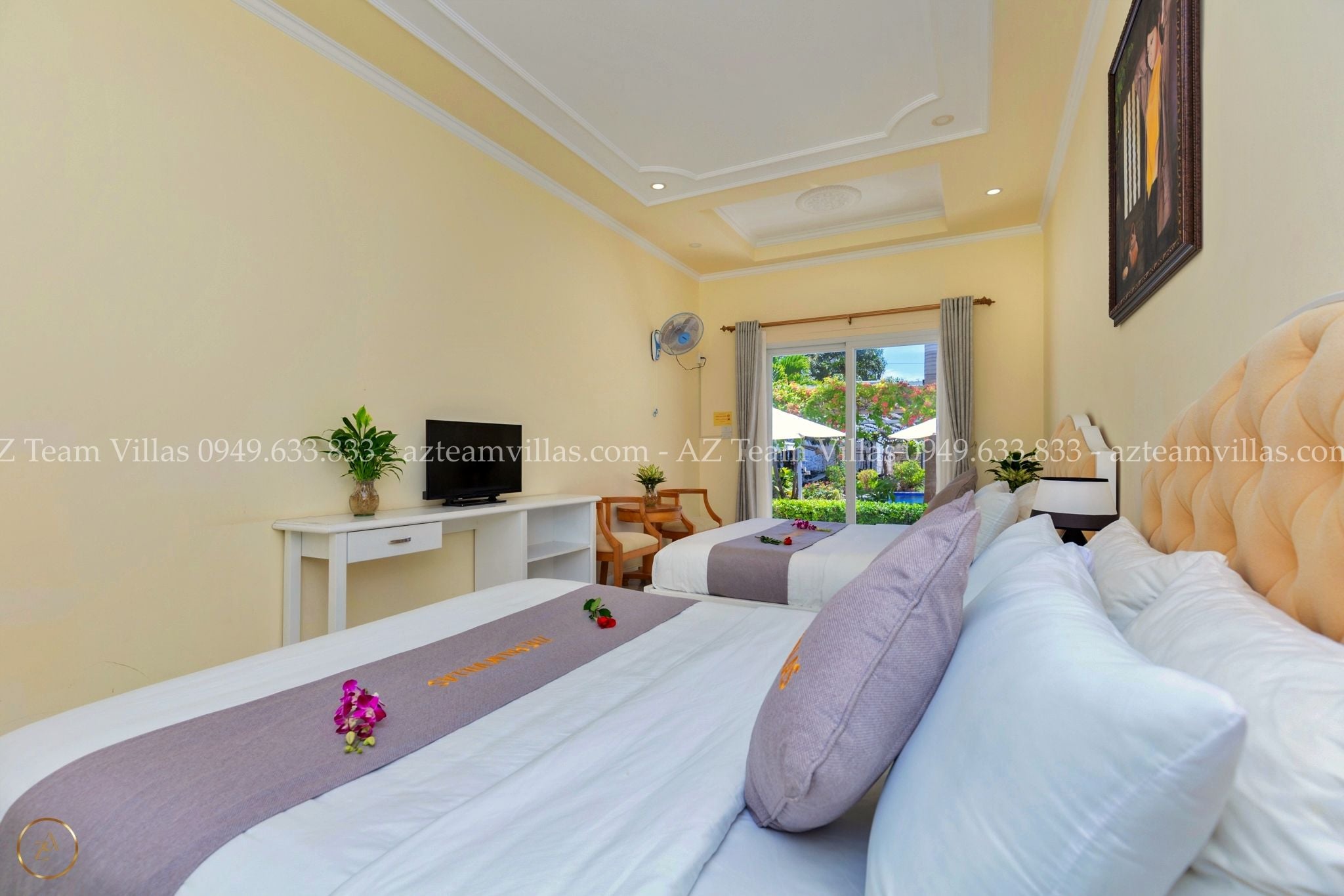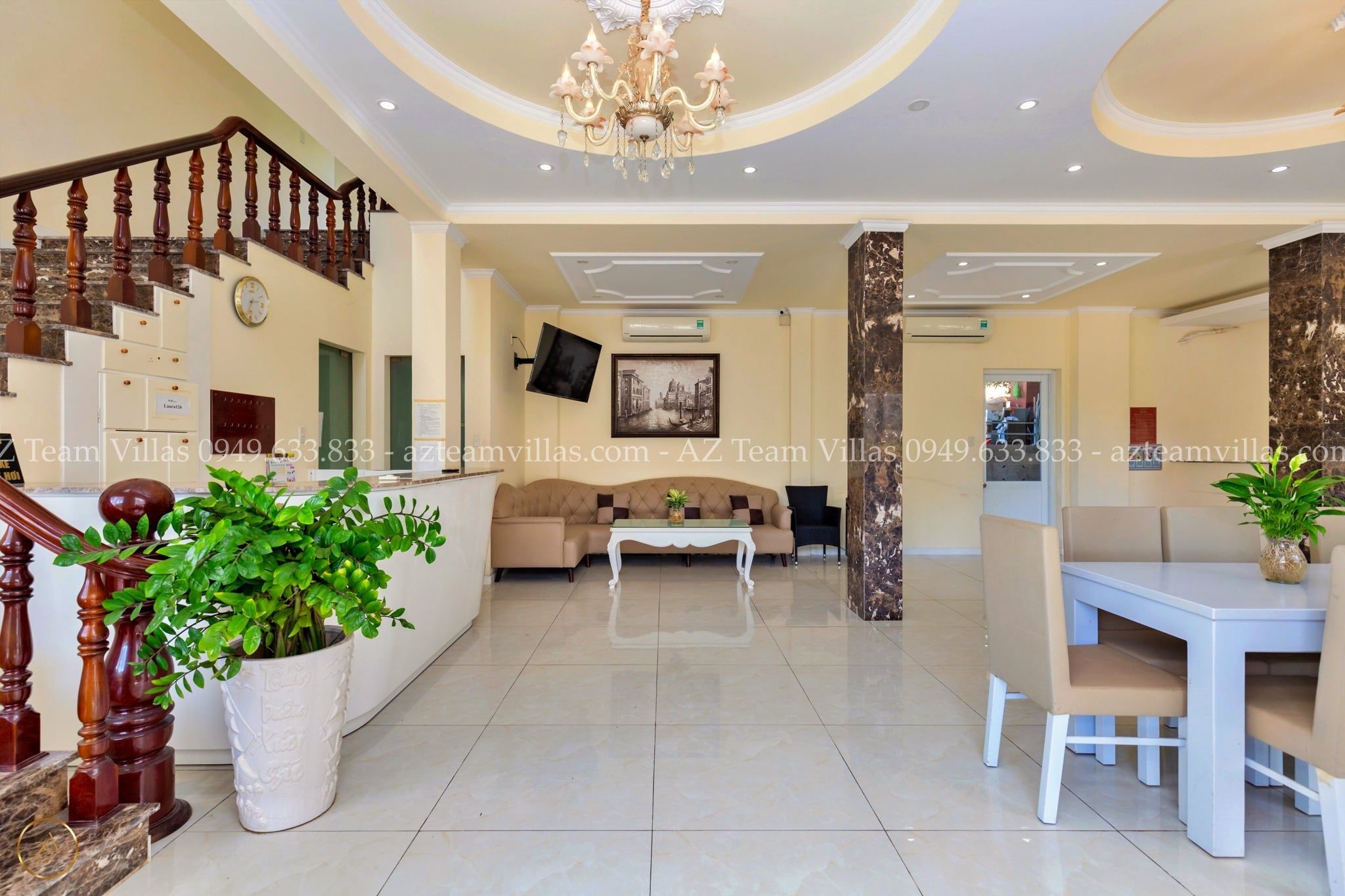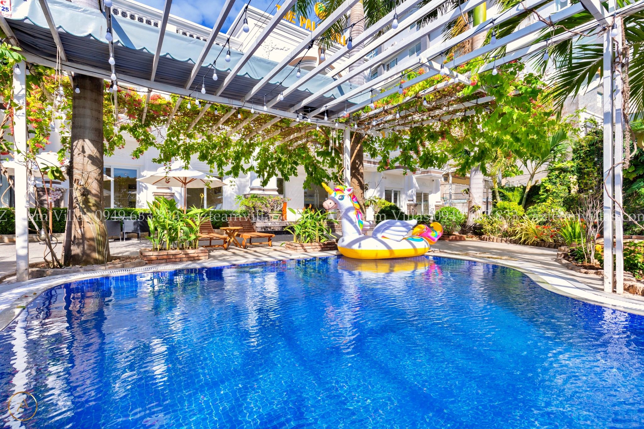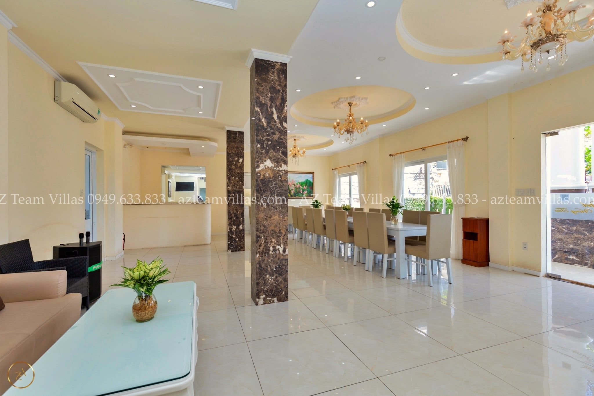 Là một ‘lâu đài’ với 10 phòng ngủ và 13 giường, Villa có sức chứa lên đến 50 khách, thích hợp cho đoàn khách đông. Ngoài hồ bơi ngoài trời, biệt thự còn được trang bị bàn bi-da để đáp ứng nhu cầu giải trí của quý khách. Đặc biệt, biệt thự có quán cà phê cạnh hồ bơi (có tính phí), và khuôn viên cực rộng để tổ chức tiệc ngoài trời.