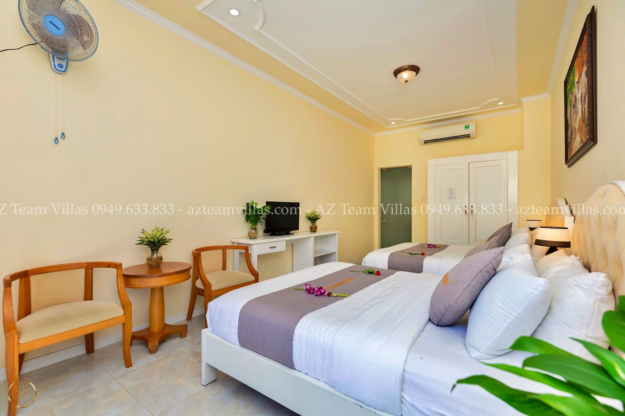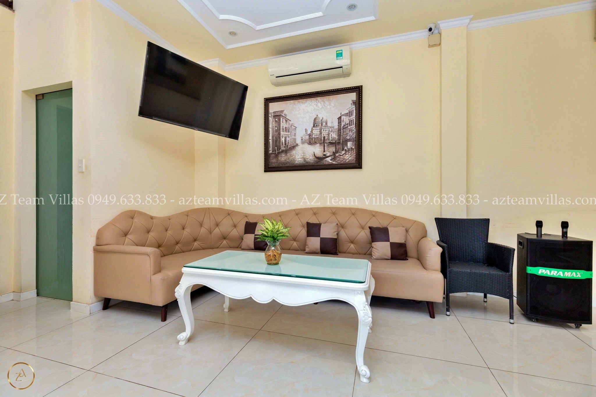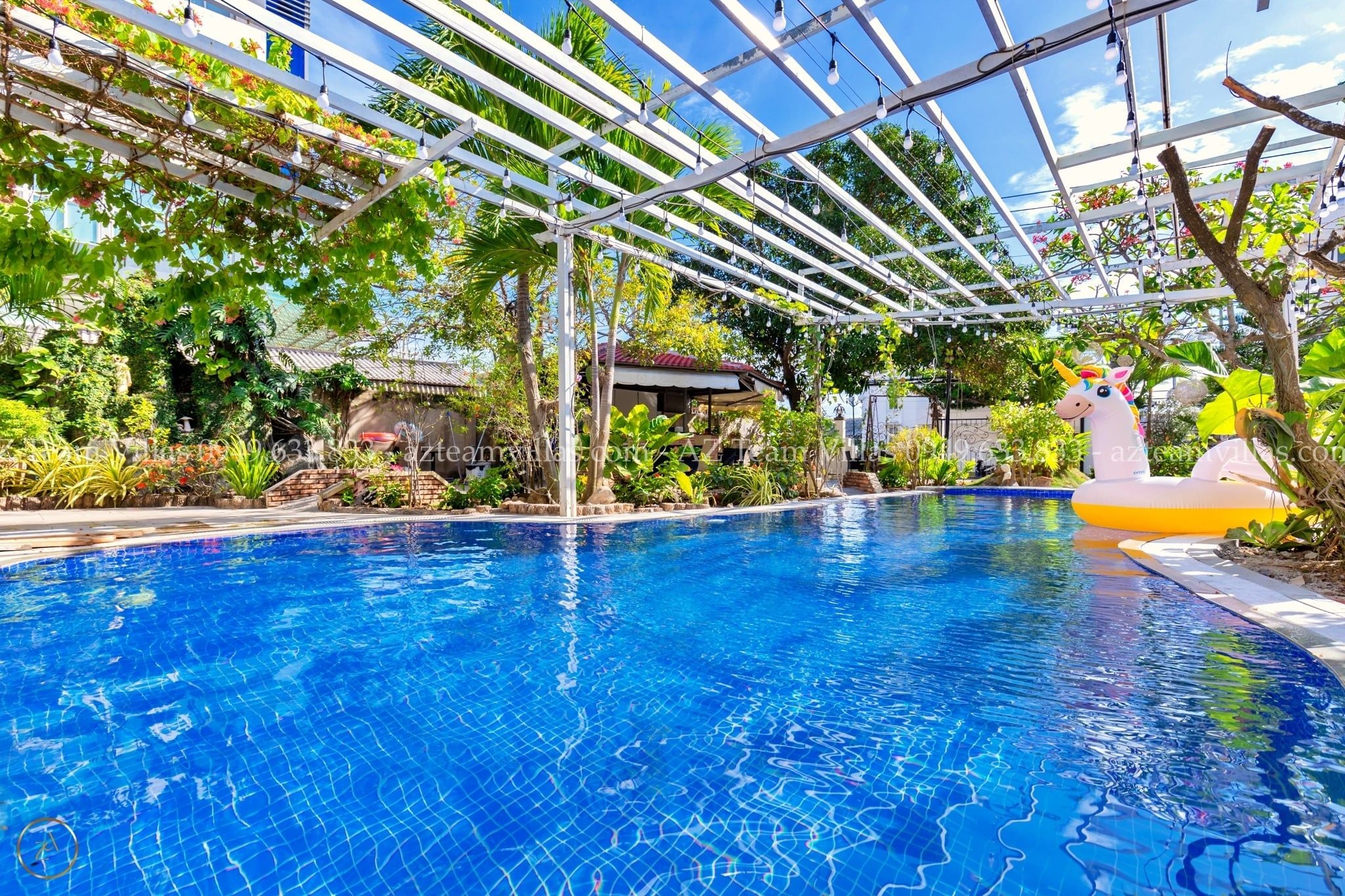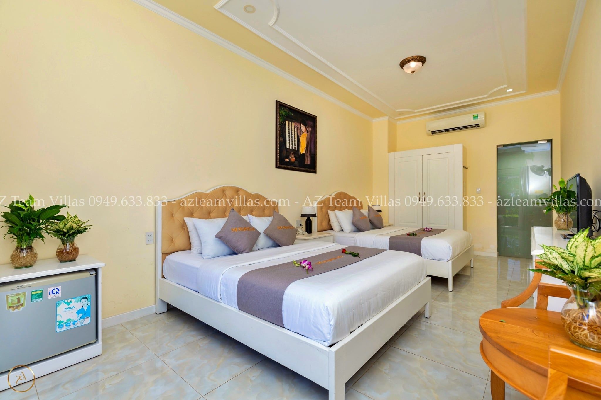 Là một ‘lâu đài’ với 10 phòng ngủ và 13 giường, Villa có sức chứa lên đến 50 khách, thích hợp cho đoàn khách đông. Ngoài hồ bơi ngoài trời, biệt thự còn được trang bị bàn bi-da để đáp ứng nhu cầu giải trí của quý khách. Đặc biệt, biệt thự có quán cà phê cạnh hồ bơi (có tính phí), và khuôn viên cực rộng để tổ chức tiệc ngoài trời.