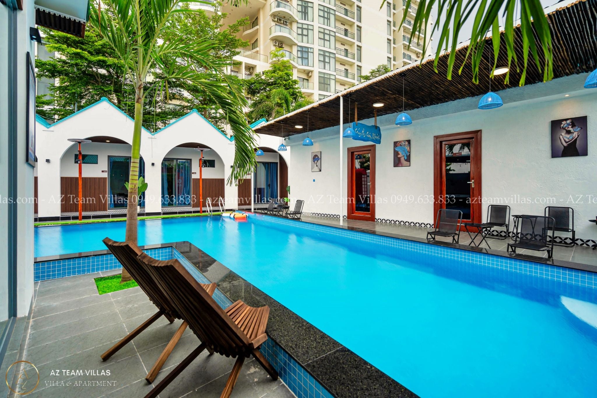 Villa 7 phòng ngủ, 7 toilets, 01 phòng xông hơi, hồ bơi 70m2 nước mặn hồ nhỏ, có thêm 1 hồ nhỏ xục matxa (hồ bơi nước mặn sử dụng Clo điện phân hoàn toàn từ muối biển, an toàn cho da & sức khỏe)