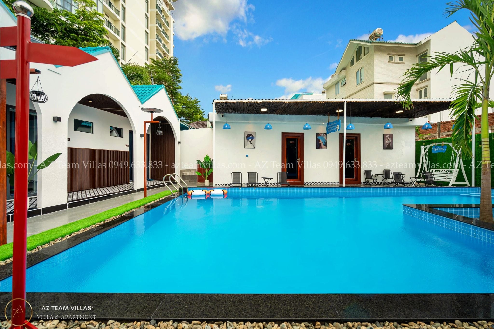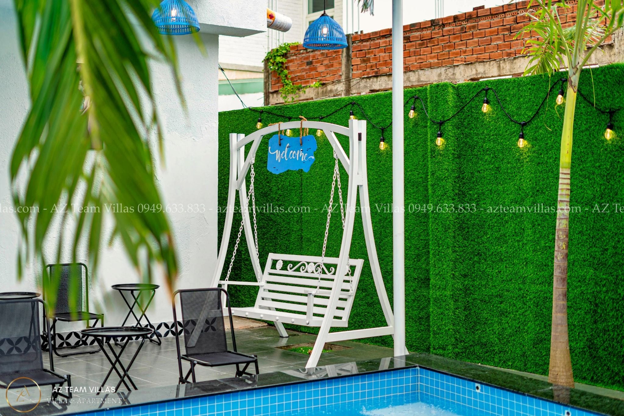 - Hồ bơi và sân vườn ngoài trời rộng rãi, thoáng mát đáp ứng nhu cầu tổ chức tiệc BBQ và các hoạt động sinh hoạt ngoài trời.