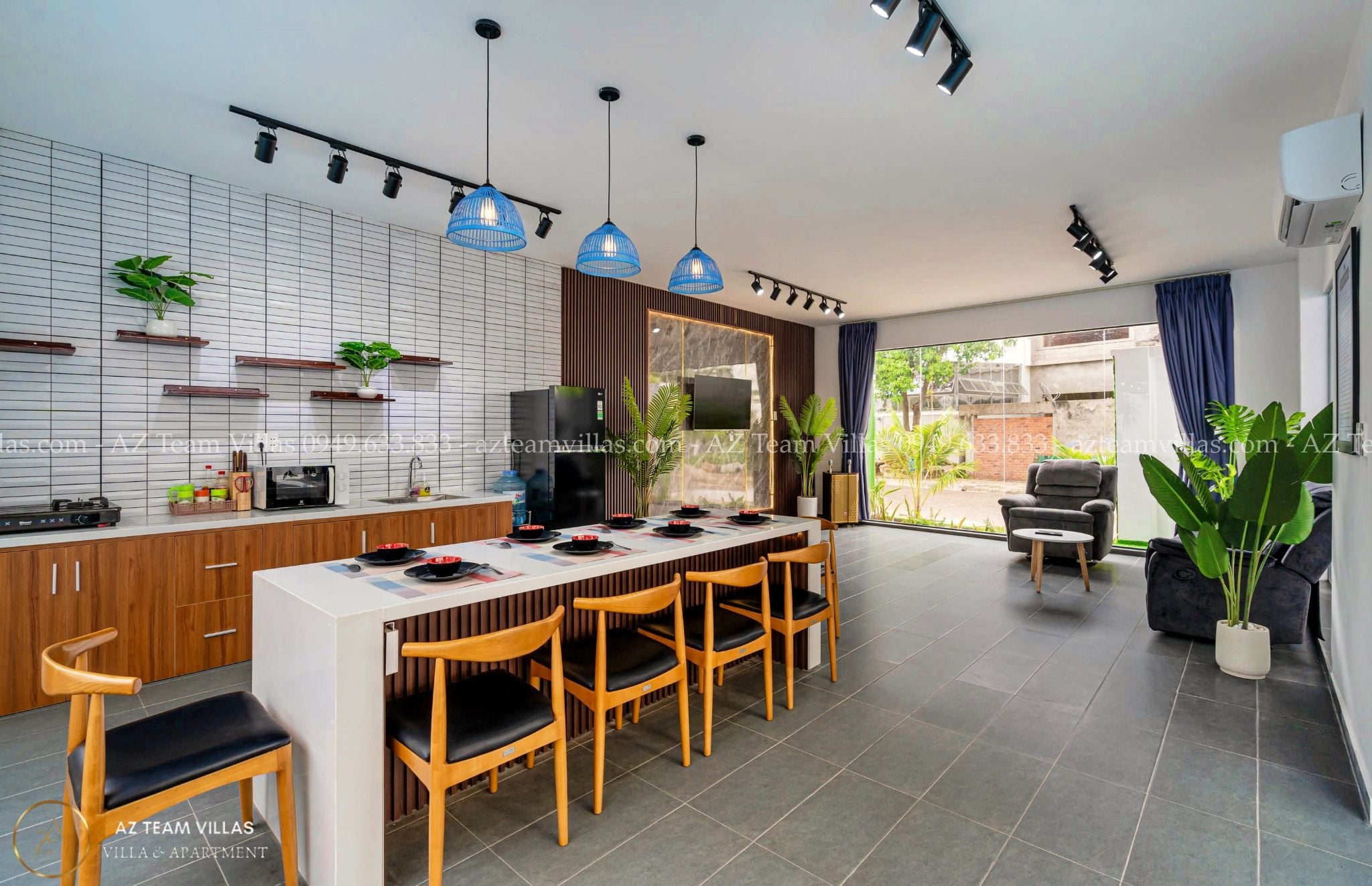 - Nhà bếp trang bị đầy đủ đồ dùng nấu bếp: lò vi sóng, tủ lạnh, bếp từ, nồi cơm điện, bếp nồi lẩu, đồ dùng nấu bếp, gia vị nấu ăn đầy đủ…