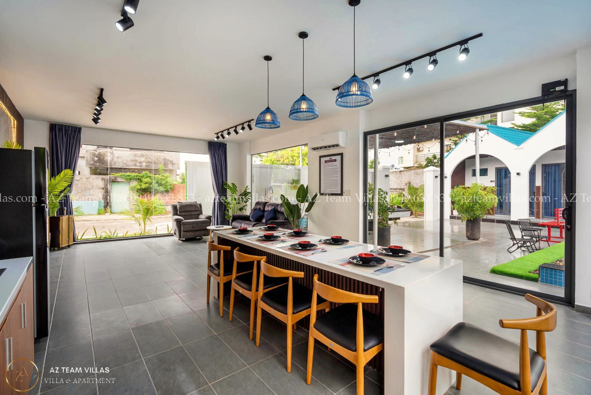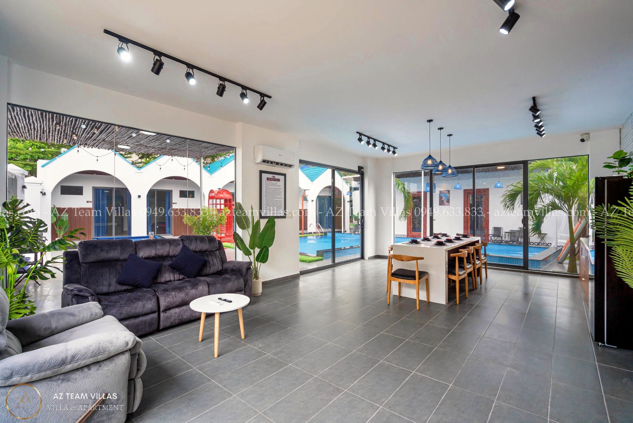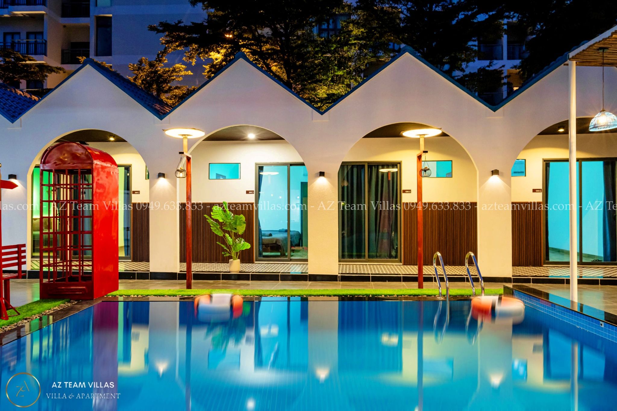 Villa với thiết kế tinh tế, hiện đại với 7 phòng ngủ phù hợp cho đoàn 15 - 30 khách. Villa nằm ở vị trí khu vực tổ hợp Villa Long Cung, gần bãi biển nên phù hợp để tổ chức team building, tiệc gia đình. Villa trang bị đầy đủ dụng cụ bếp, hồ bơi, hồ Jacuzzi, lò nướng BBQ để phục vụ quý khách