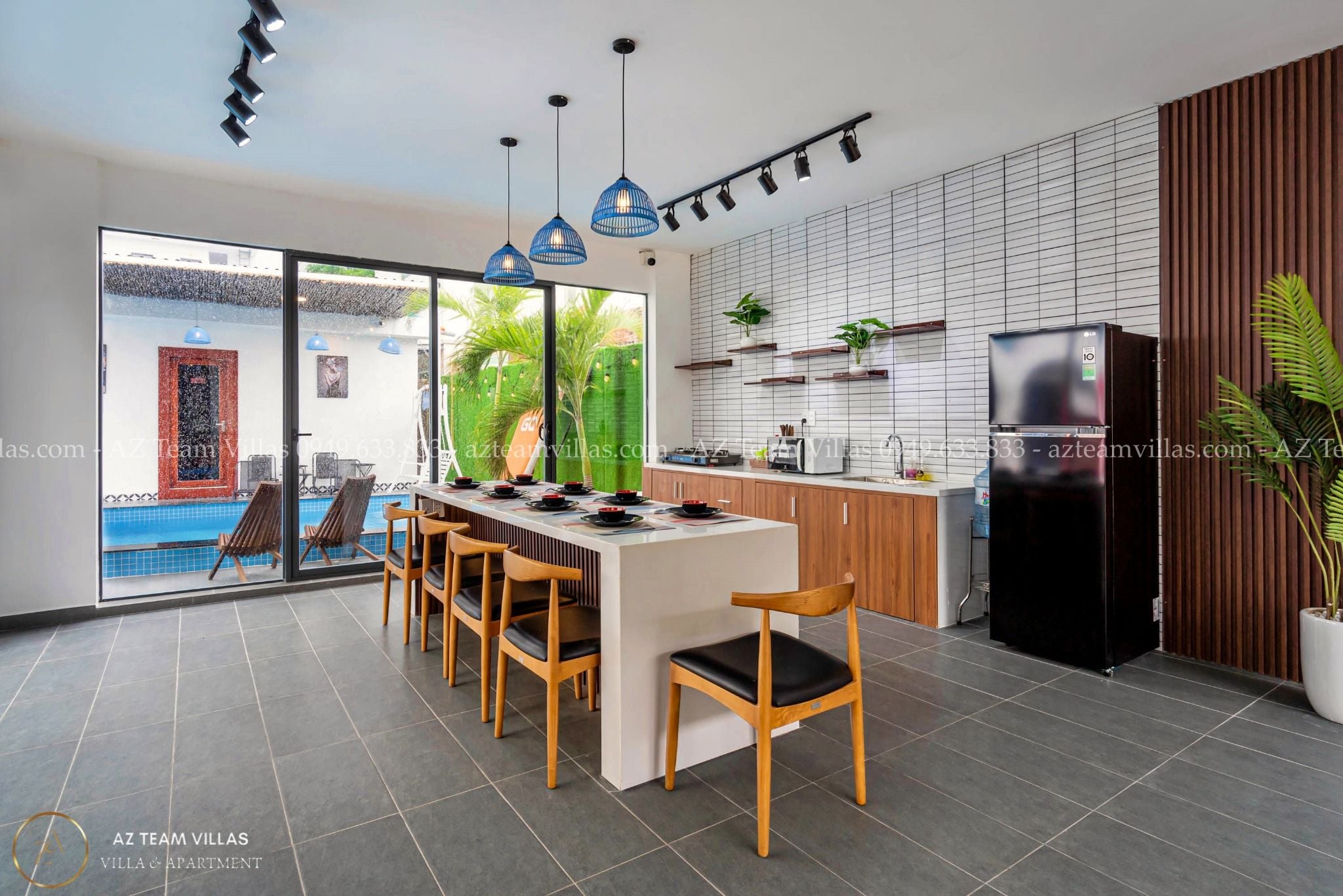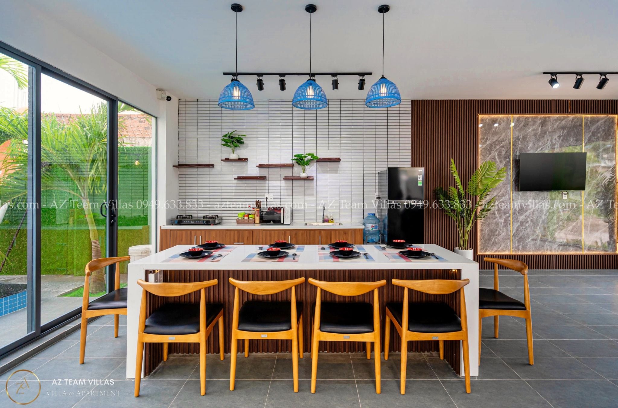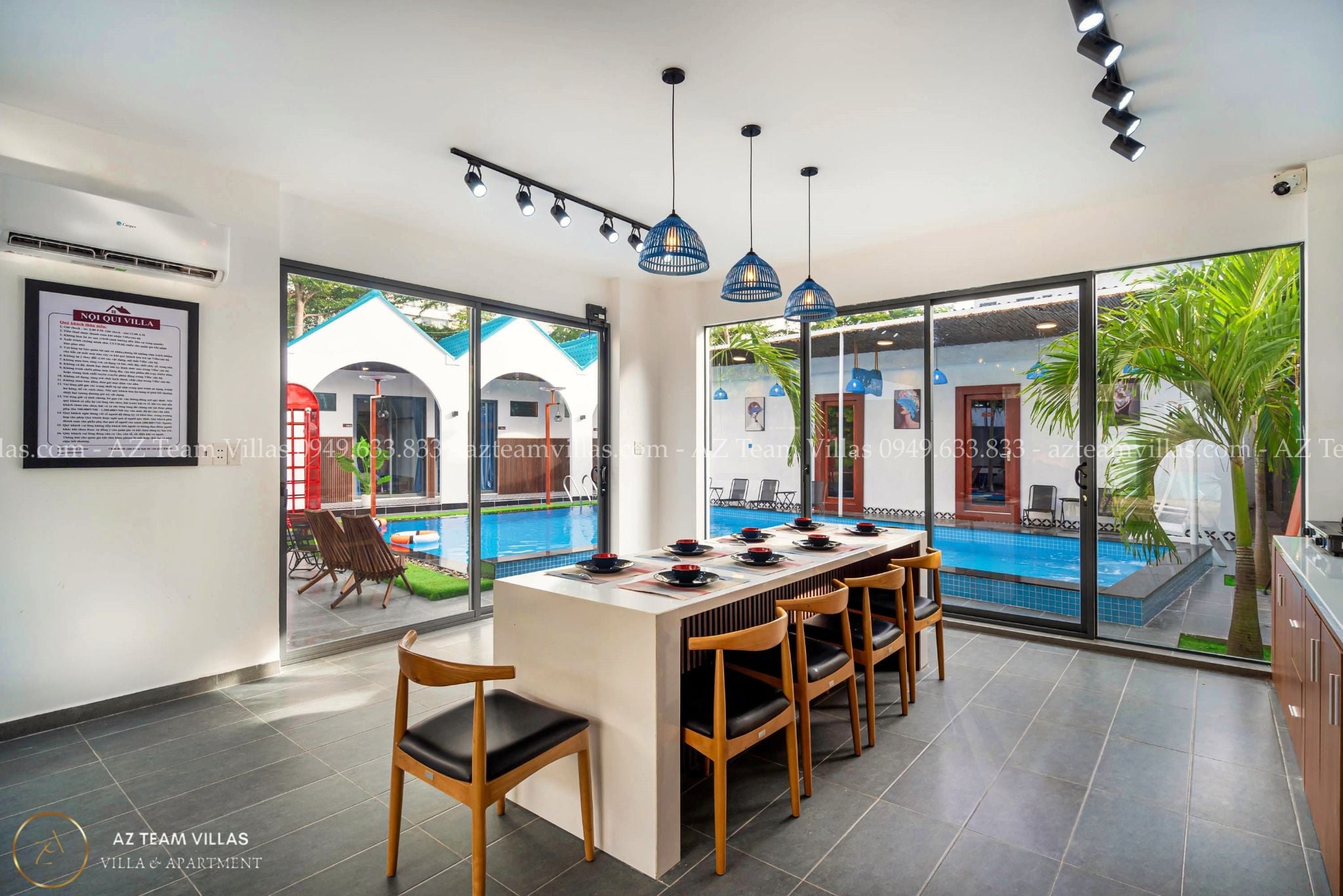 Villa với thiết kế tinh tế, hiện đại với 7 phòng ngủ phù hợp cho đoàn 15 - 30 khách. Villa nằm ở vị trí khu vực tổ hợp Villa Long Cung, gần bãi biển nên phù hợp để tổ chức team building, tiệc gia đình. Villa trang bị đầy đủ dụng cụ bếp, hồ bơi, hồ Jacuzzi, lò nướng BBQ để phục vụ quý khách